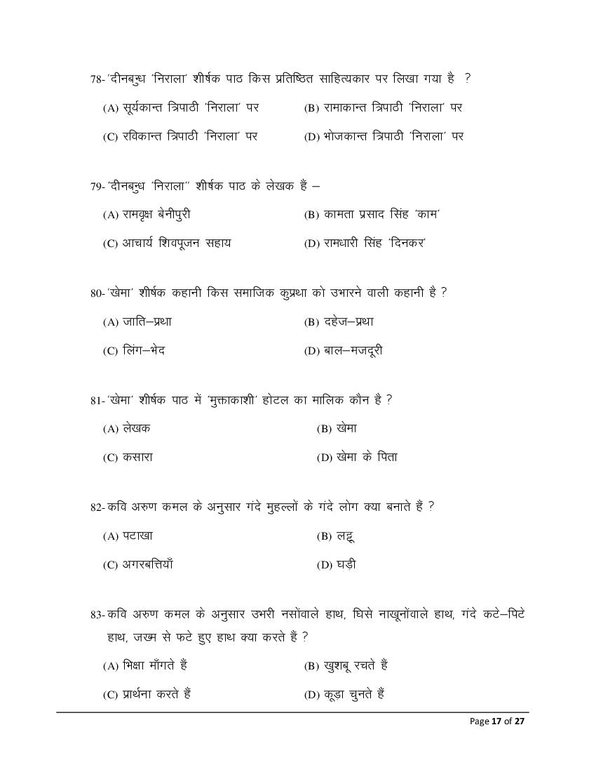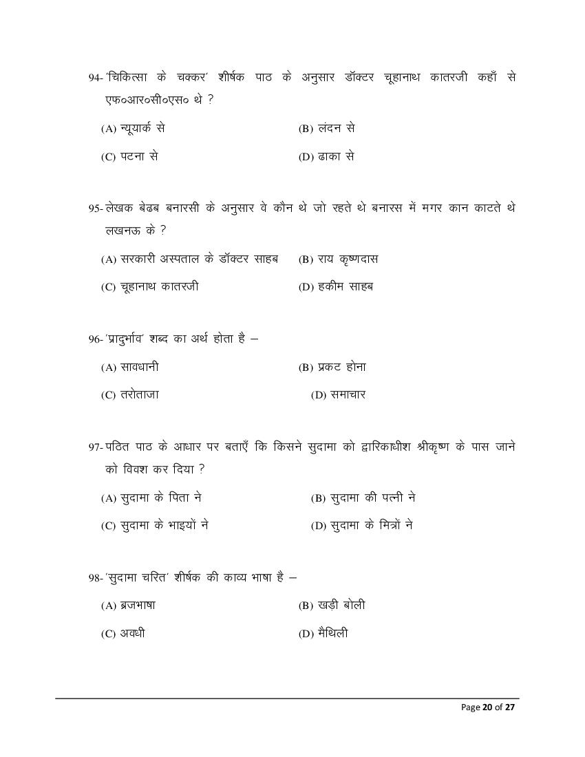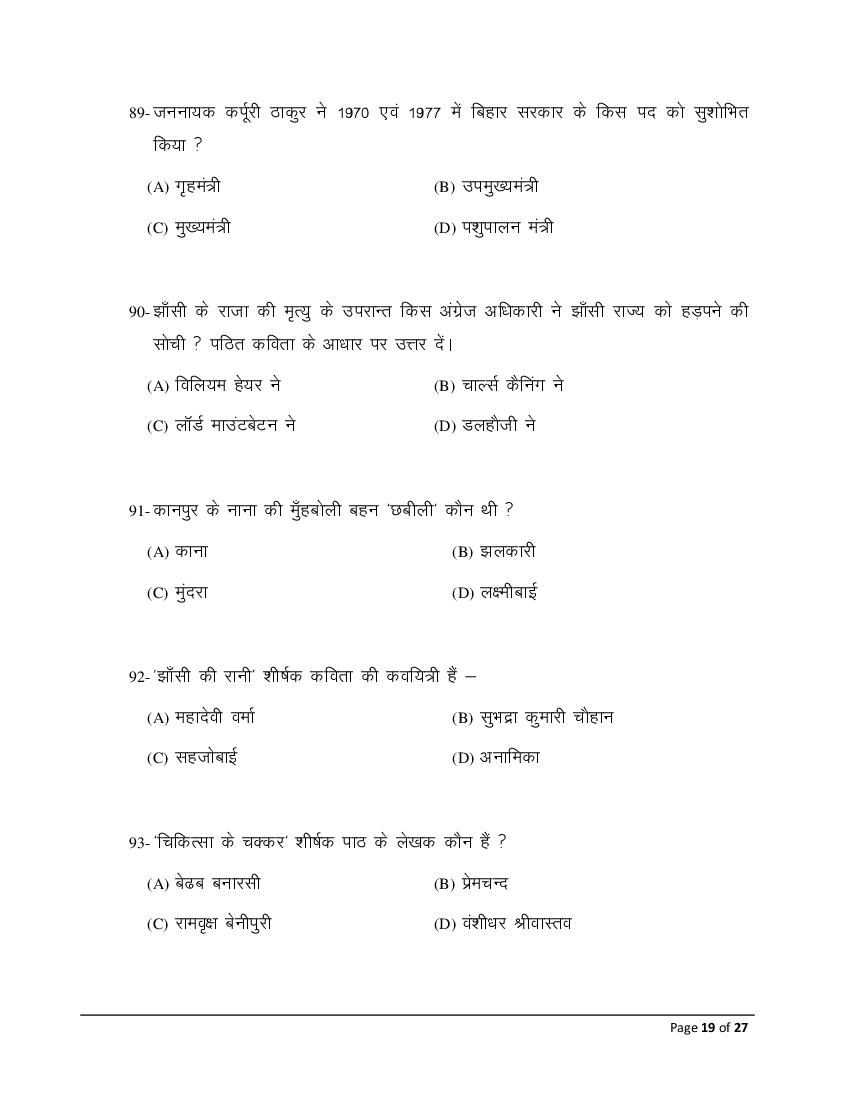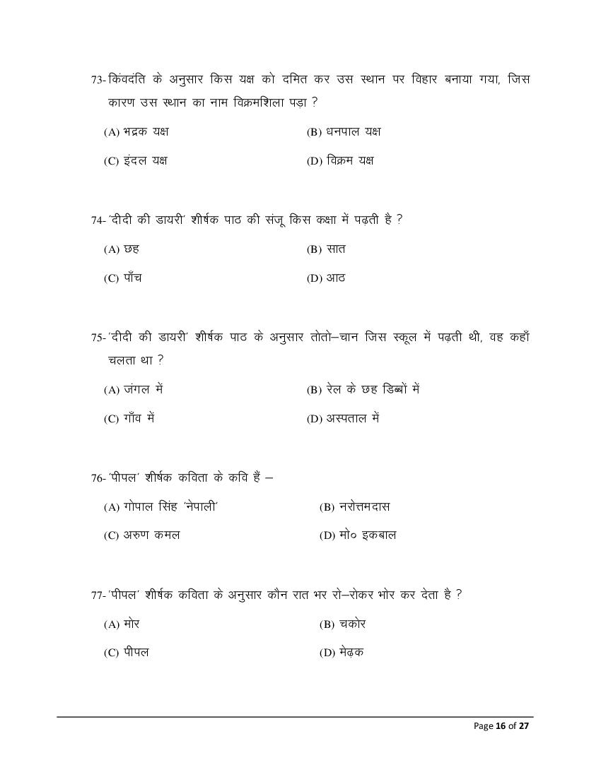 The Bihar Board model paper for class 10 Hindi SIL is as follows.