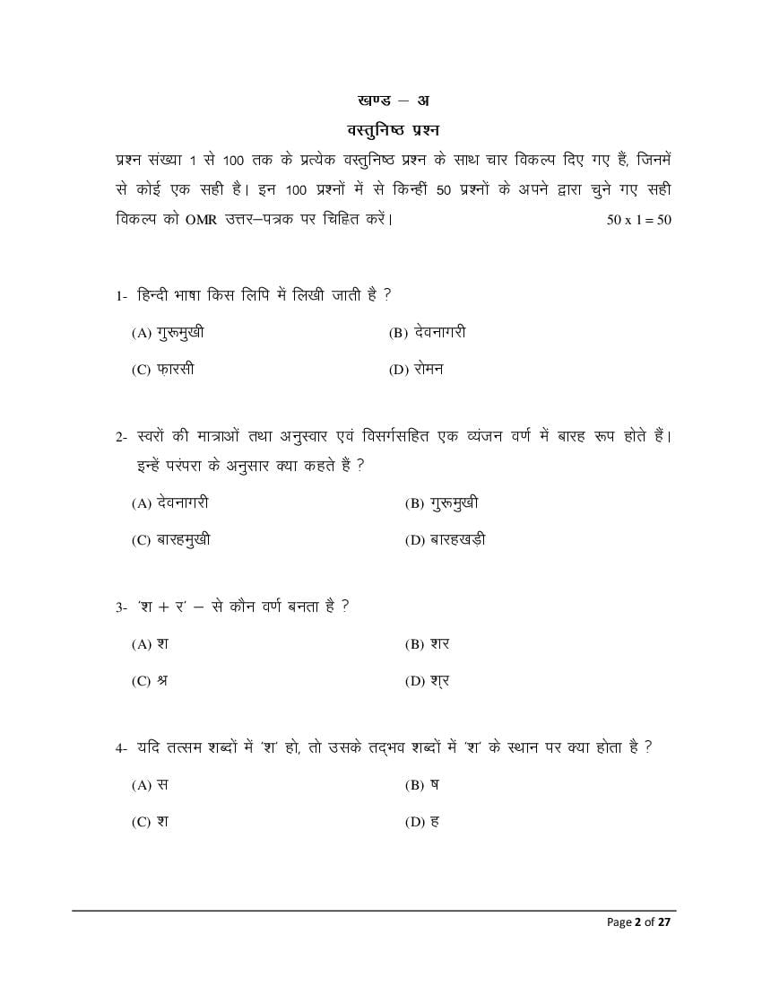 - Hindi Second Language