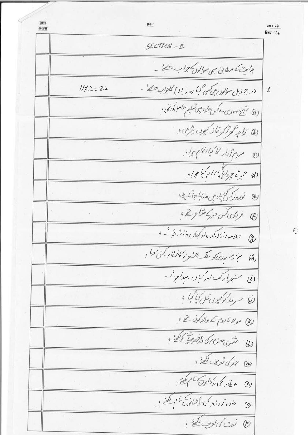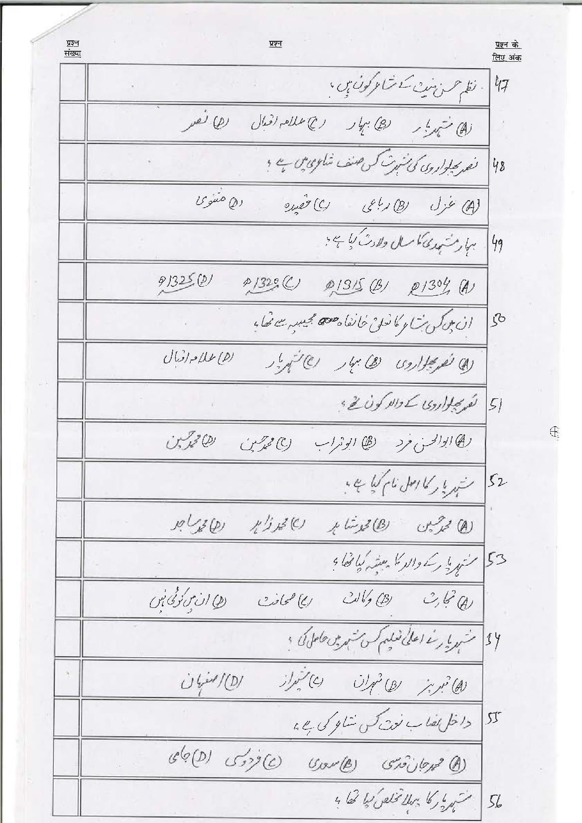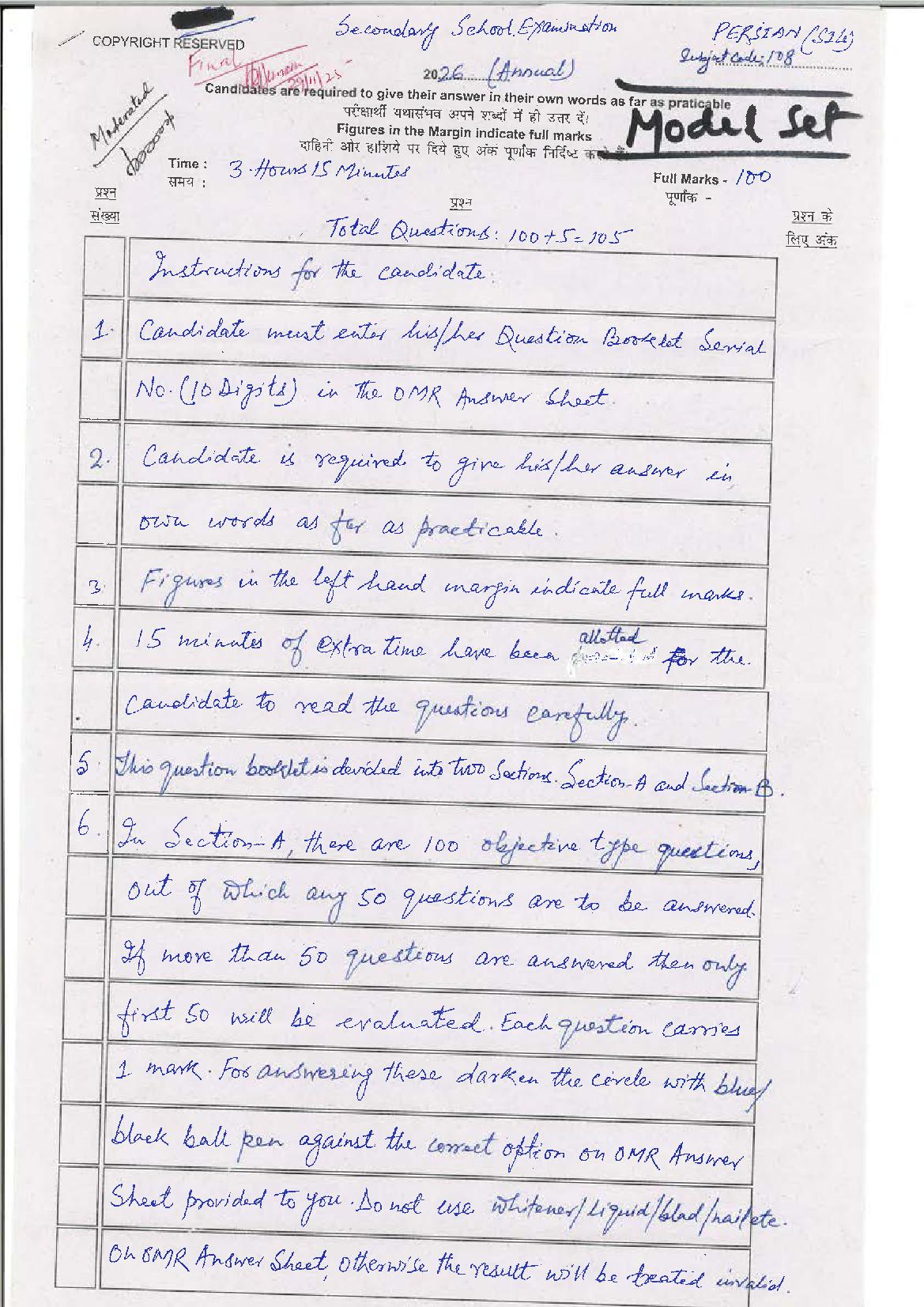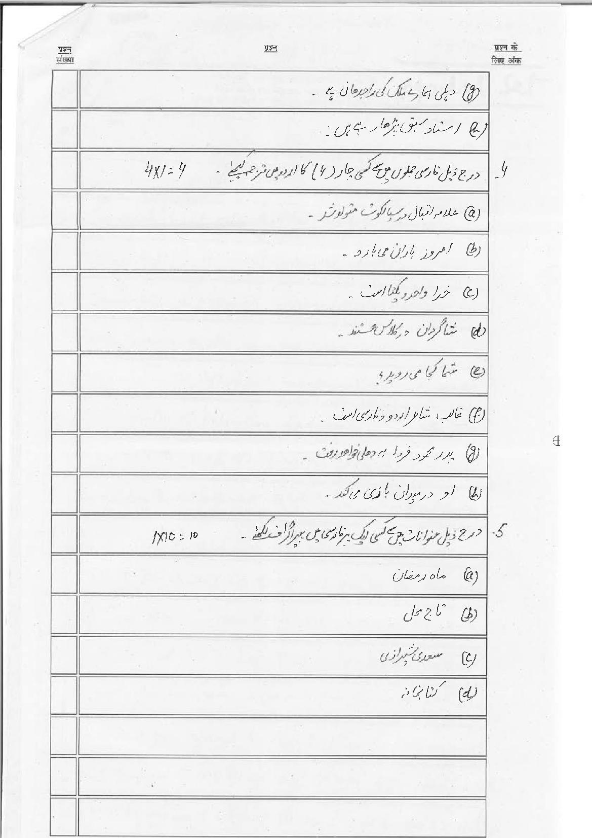 The Bihar Board model paper for class 10 Persian is as follows.