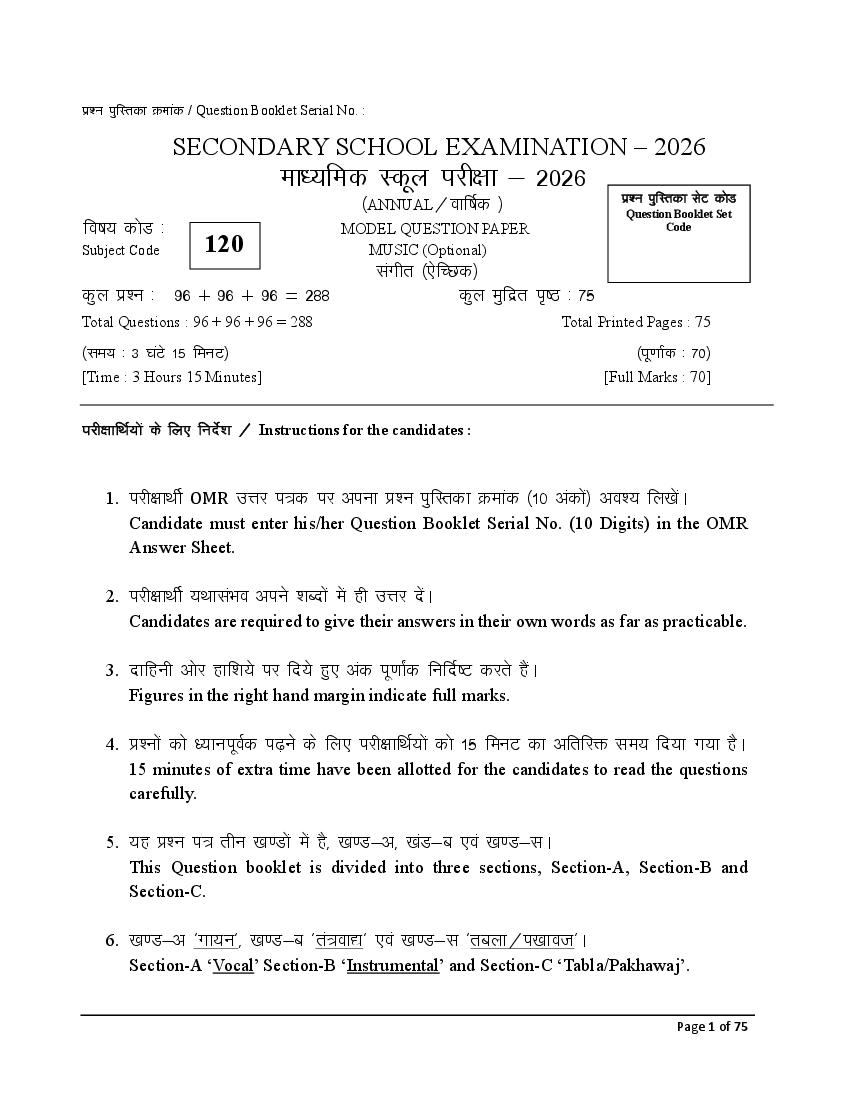 Bihar Board Class 10th Model Paper 2026 Music View Download