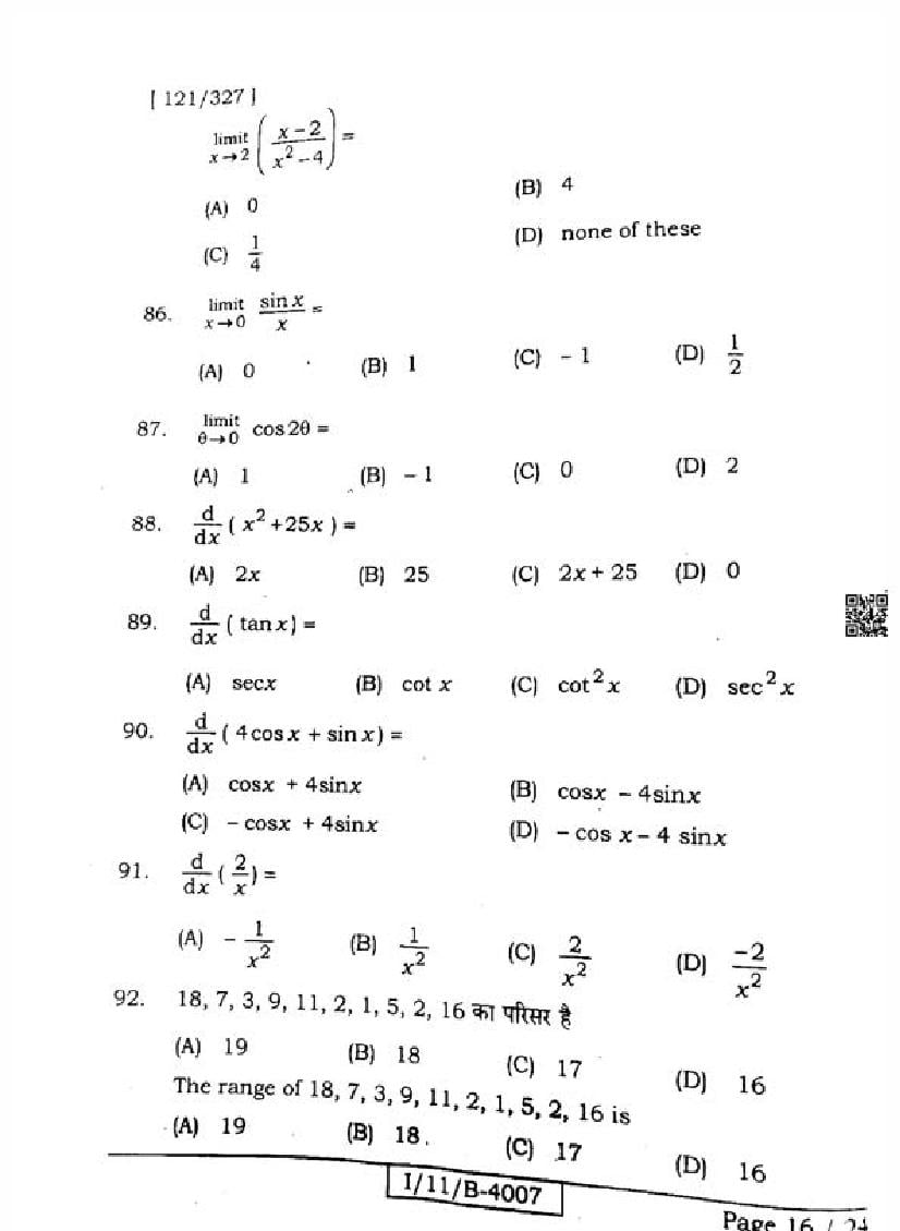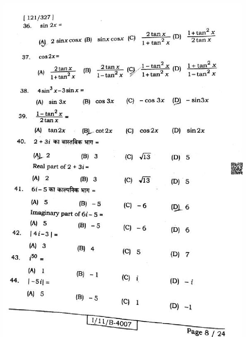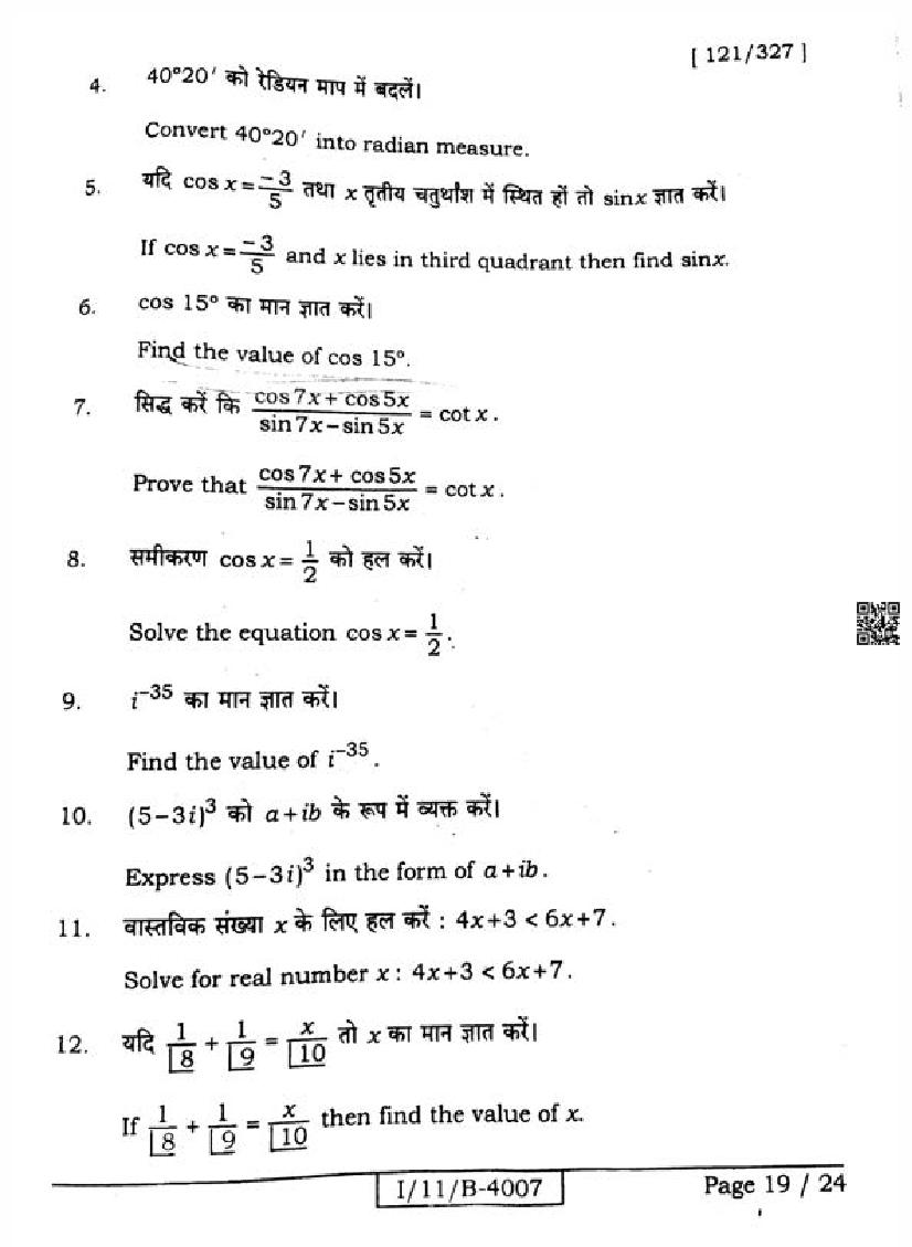| Study Material Here | Bihar Board Question Paper of Class 11 Maths |
