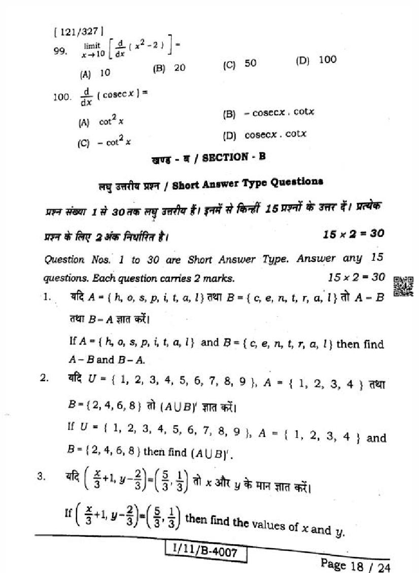 | More Question Papers of This Class | Bihar Board Question Paper of Class 11 |