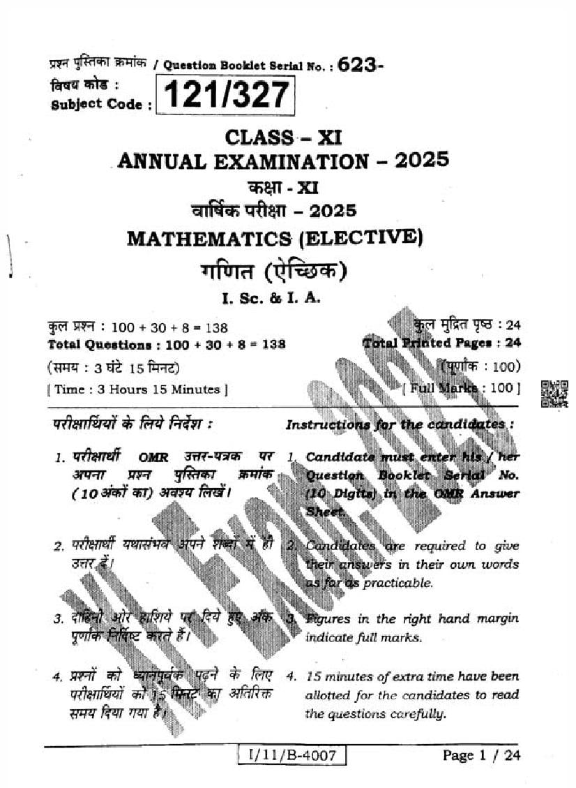 Bihar Board 11th Question Paper 2025 Maths View Download