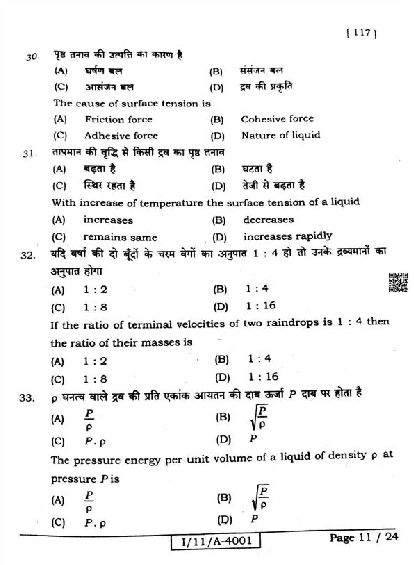 The Bihar Board Question Paper for Class 11 (Class XI) Physics is as follows.