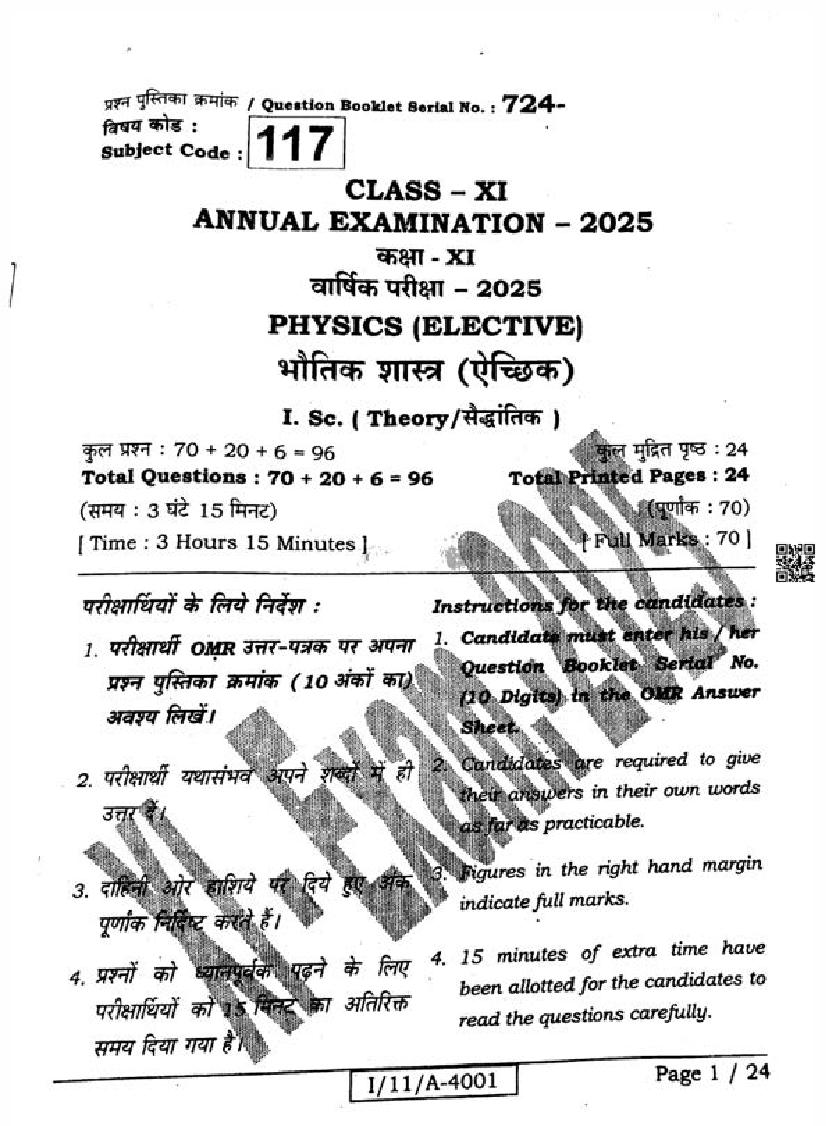 Bihar Board 11th Question Paper 2025 Physics View Download