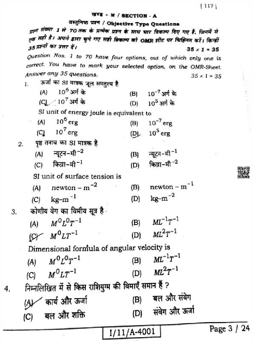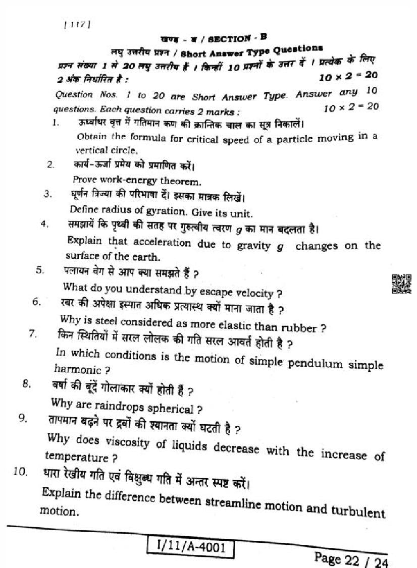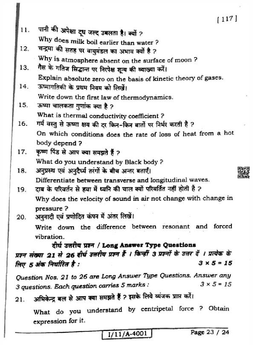 | Study Material Here | Bihar Board Question Paper of Class 11 Physics |