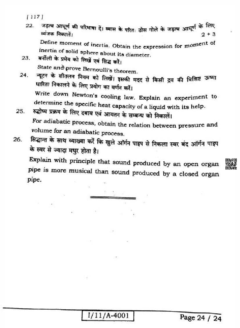 Bihar Board Class 11 Physics Question Paper 2024 PDF Download Link – Click Here to Download Question Paper PDF