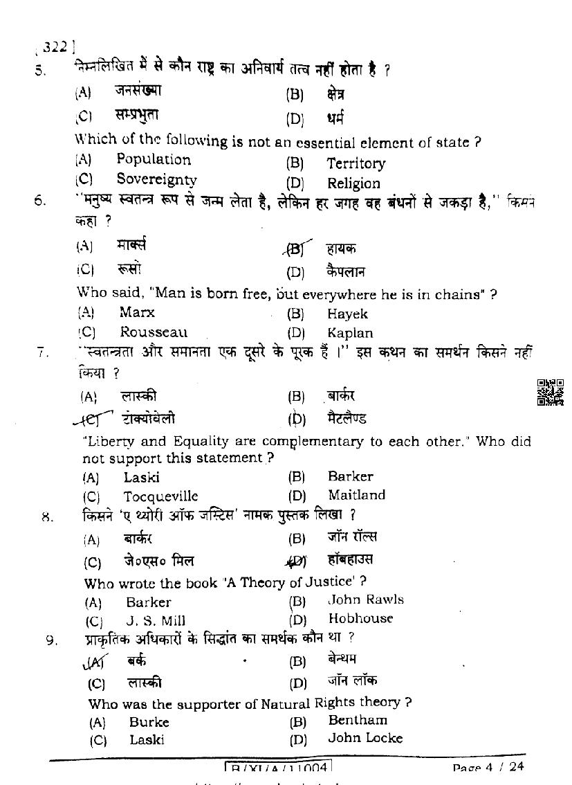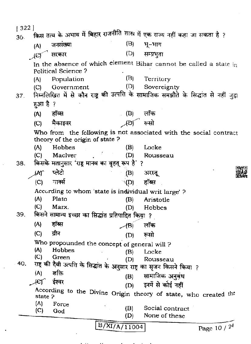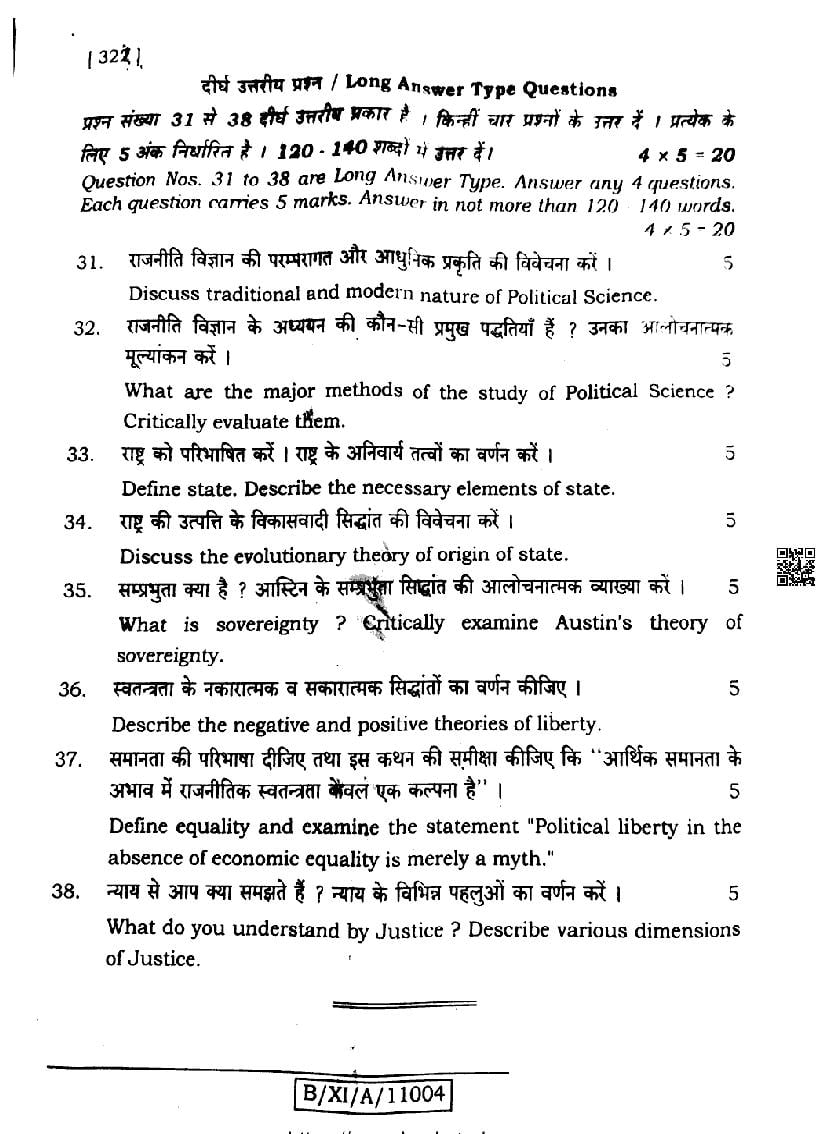 The Bihar Board Question Paper for Class 11 (Class XI) Political Science is as follows.
