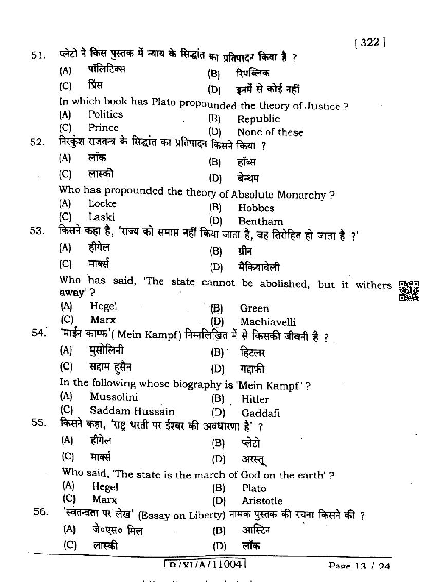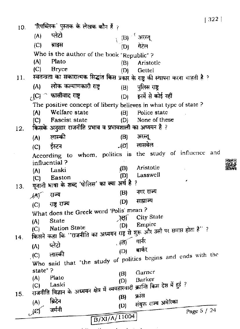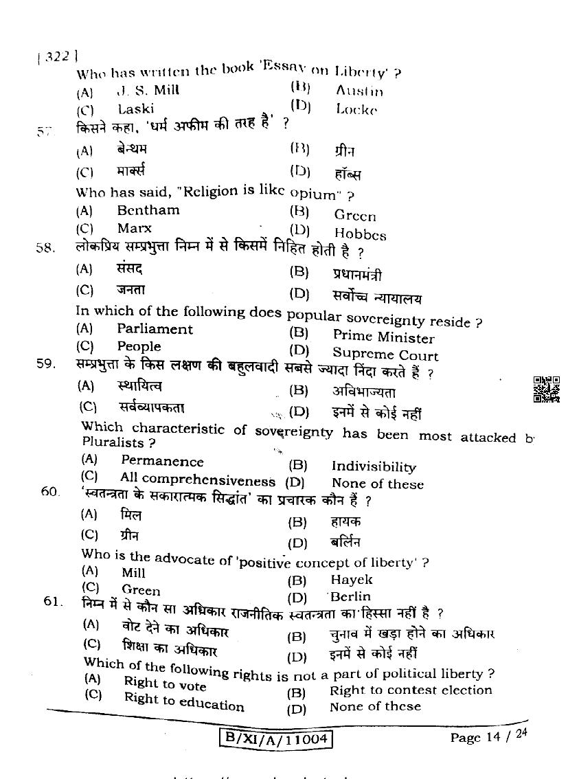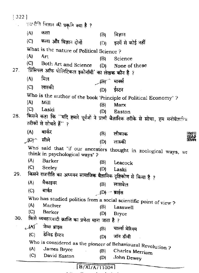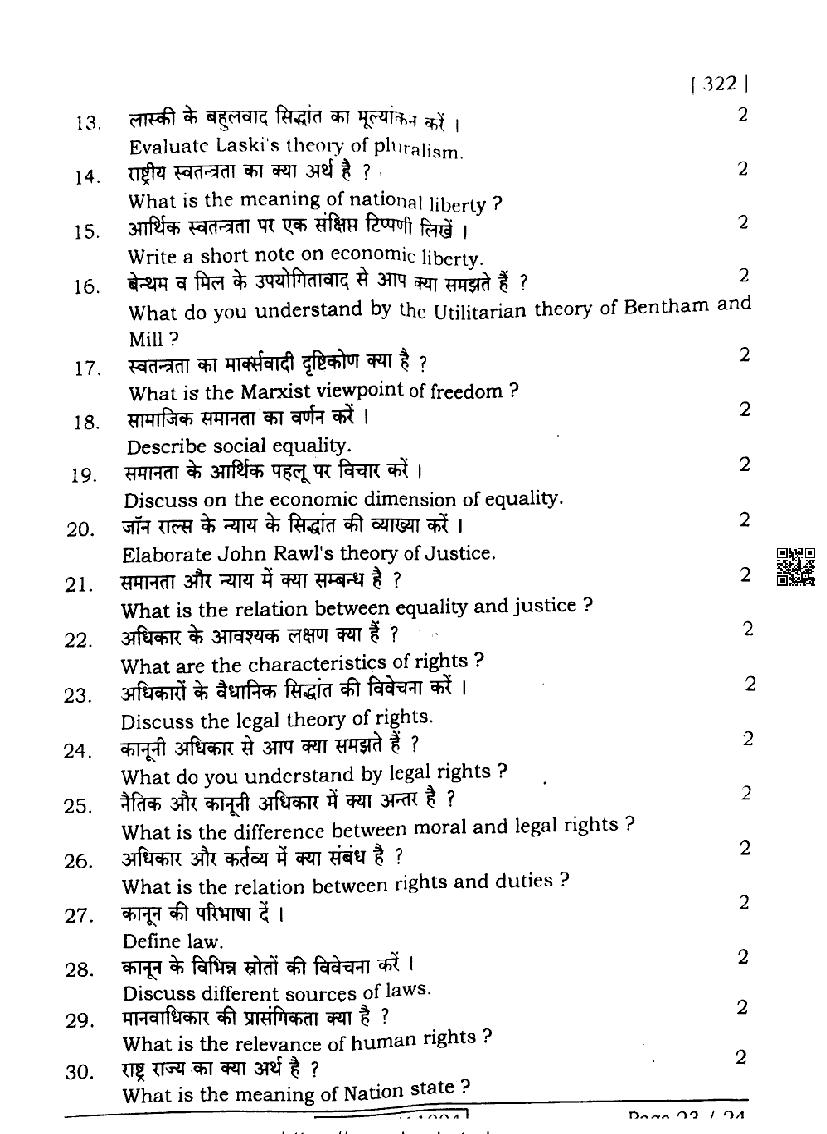 Study Material HereBihar Board Question Paper of Class 11 Political Science