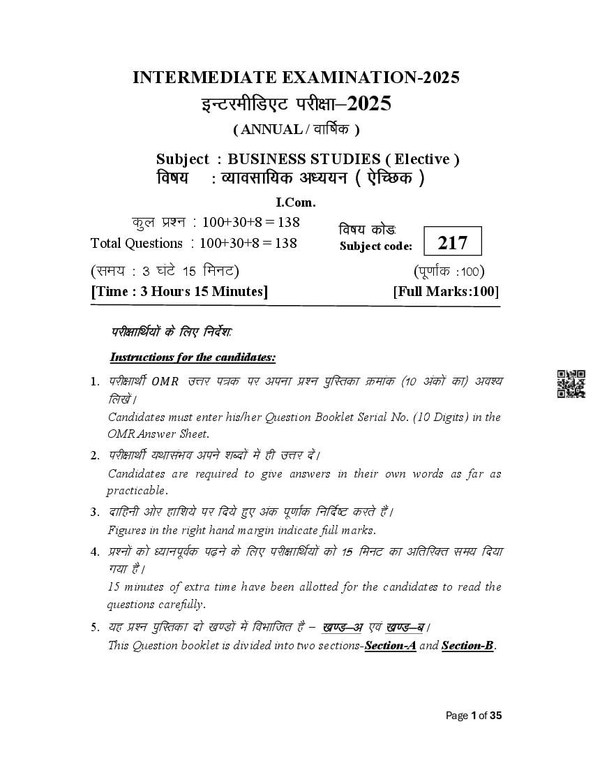 Bihar Board 12th Question Paper 2025 Business Studies View Download