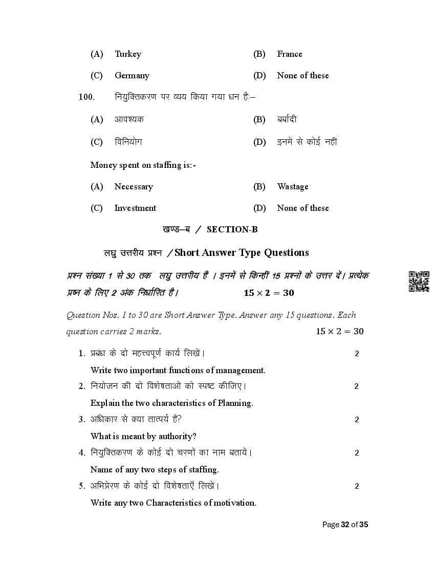 The Bihar Board Question Paper for Class 12 (Inter) Business Studies is as follows.