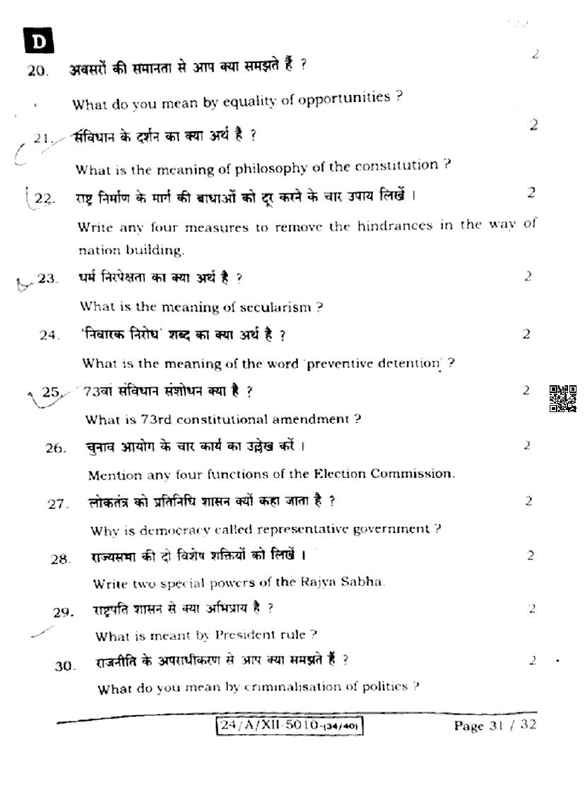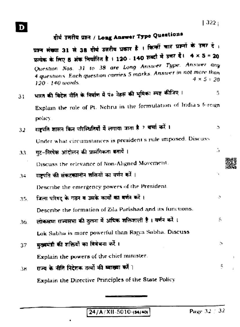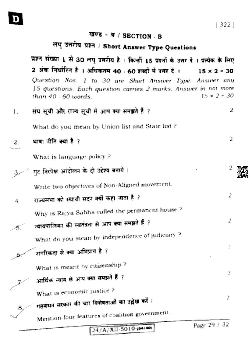 If you have any queries on Bihar Board Class 12 Political Science Question Paper 2024, then please ask in comments below.