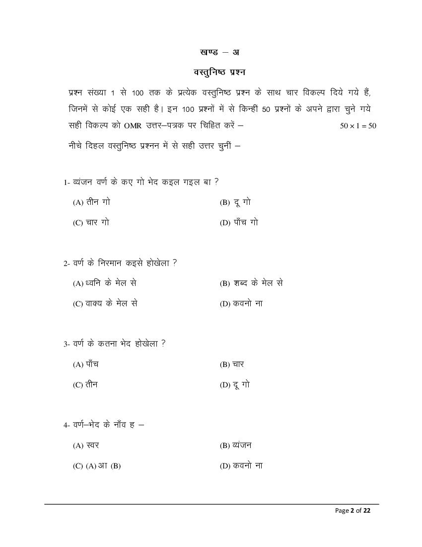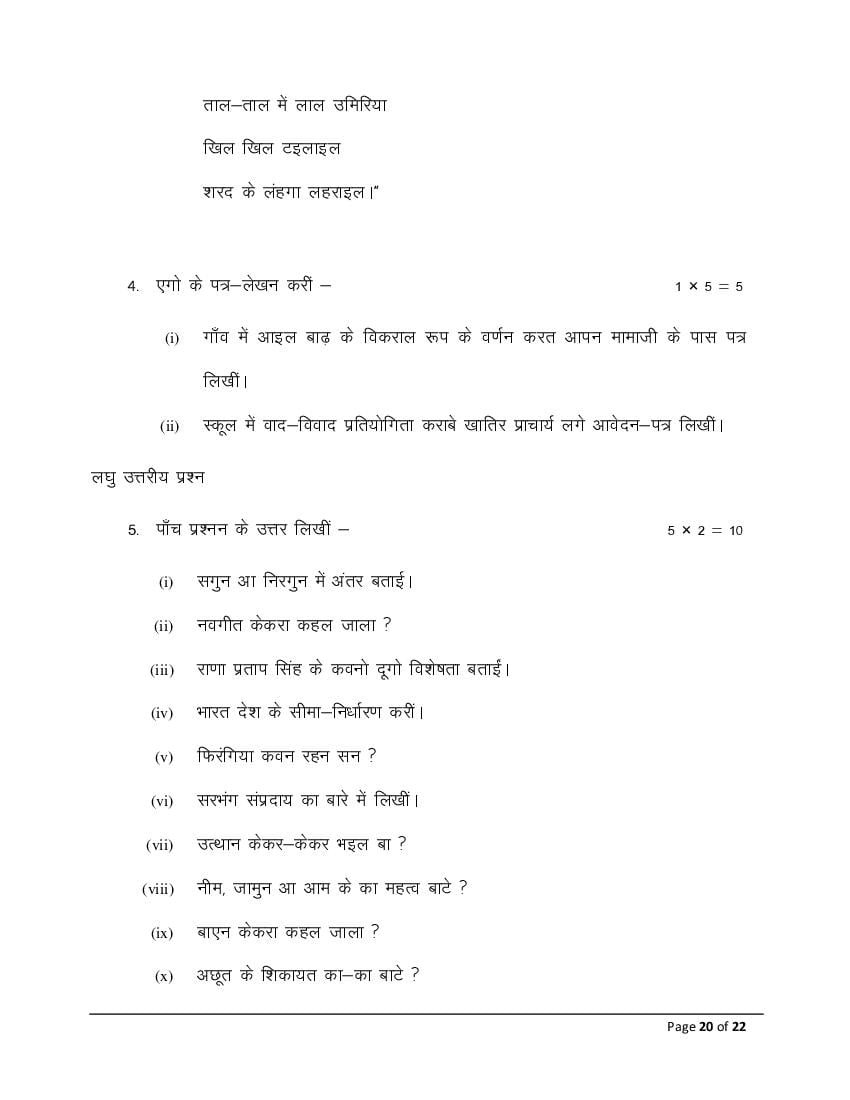 The Bihar Board model paper for class 12 Bhojpuri is as follows.
