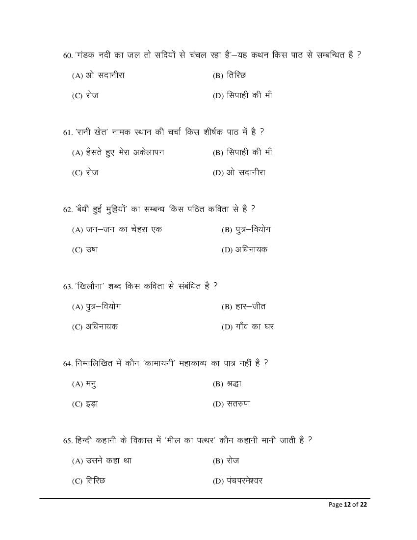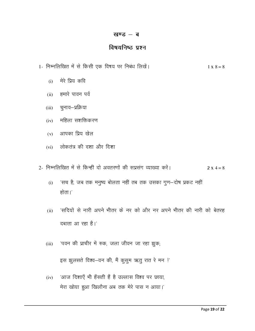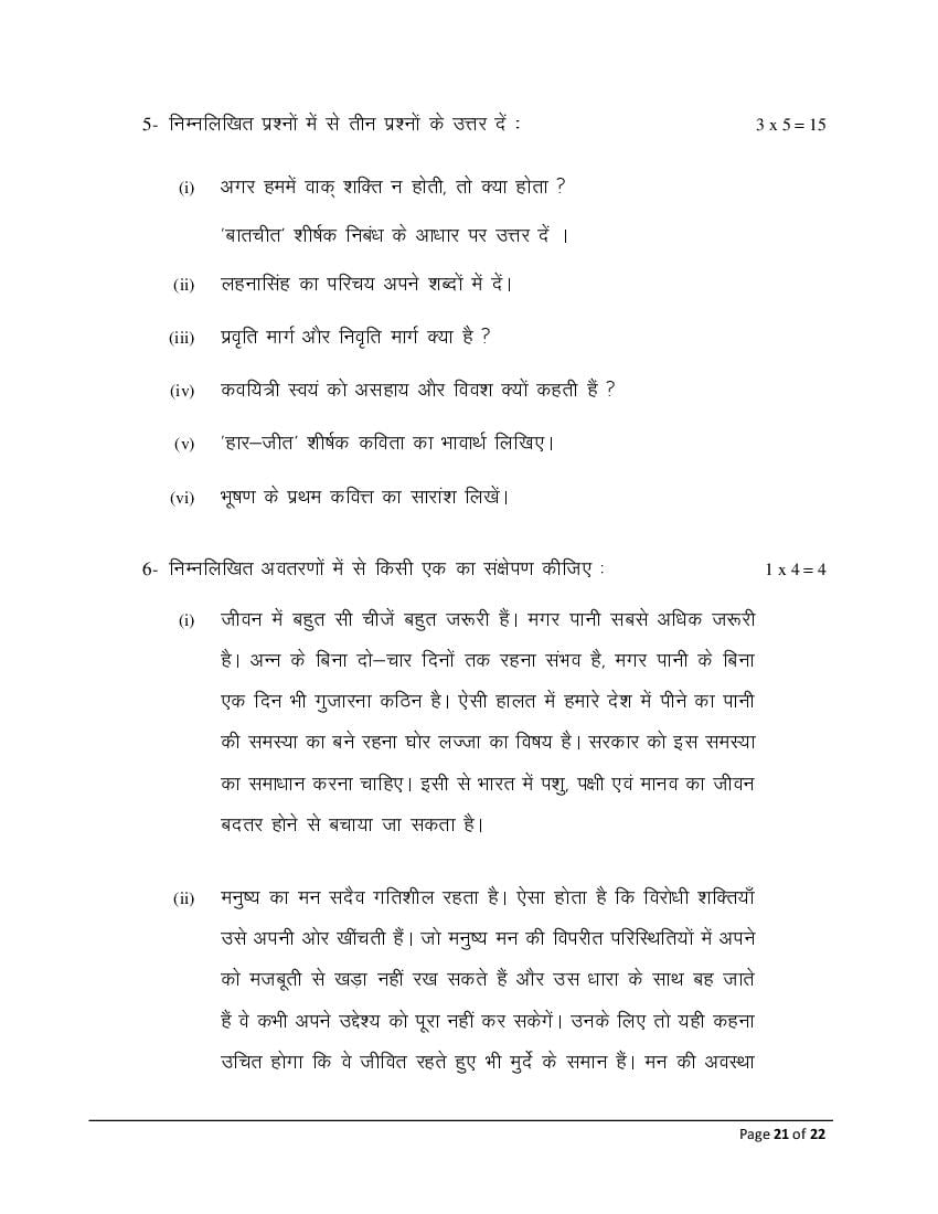 The Bihar Board model paper for class 12 Hindi (Sci, Comm) is as follows.