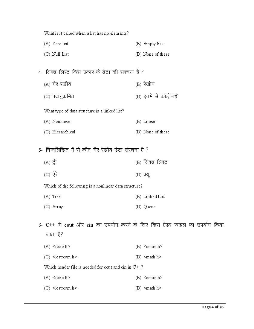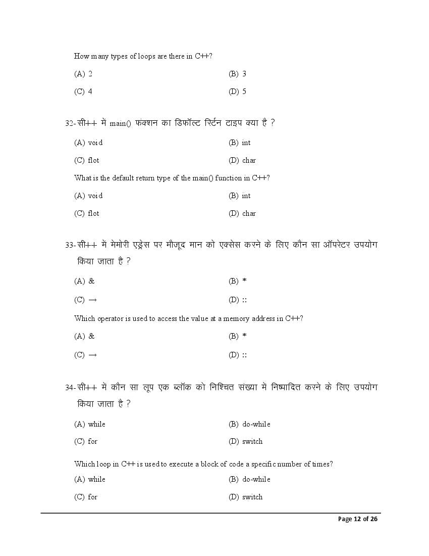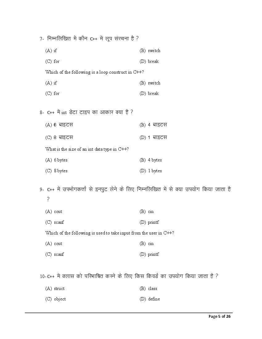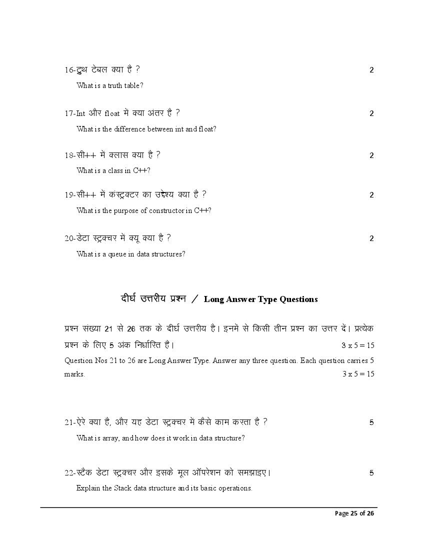 The Bihar Board model paper for class 12 Computer Science is as follows.
