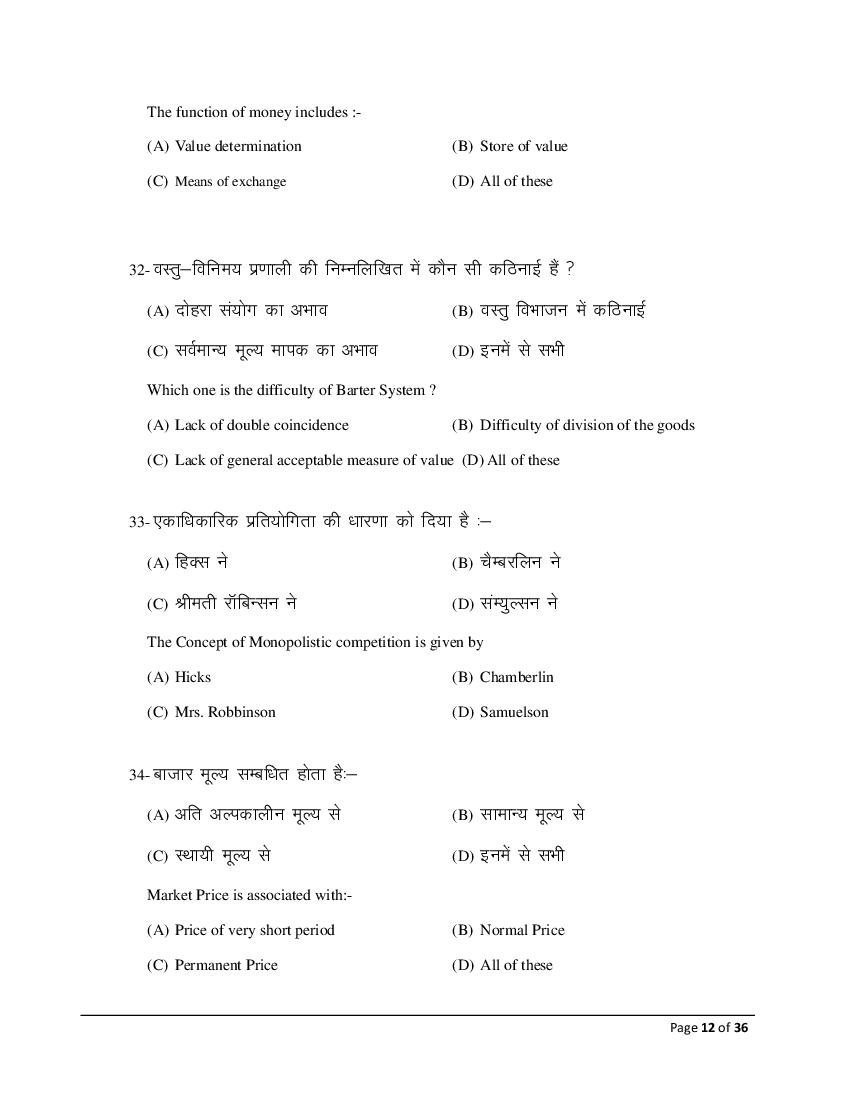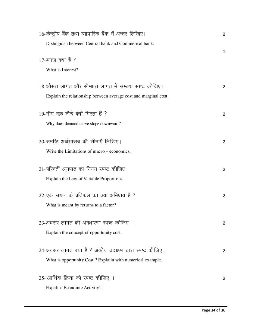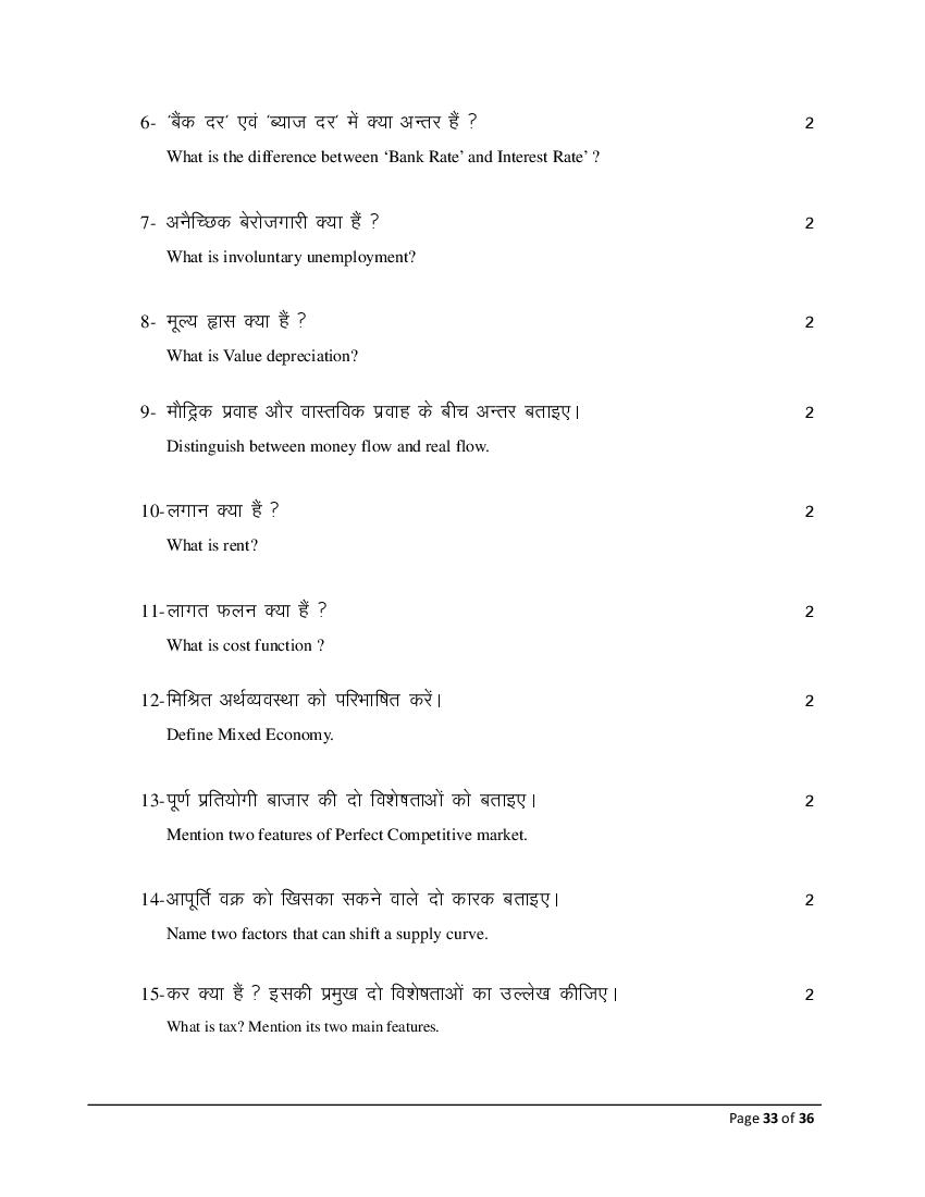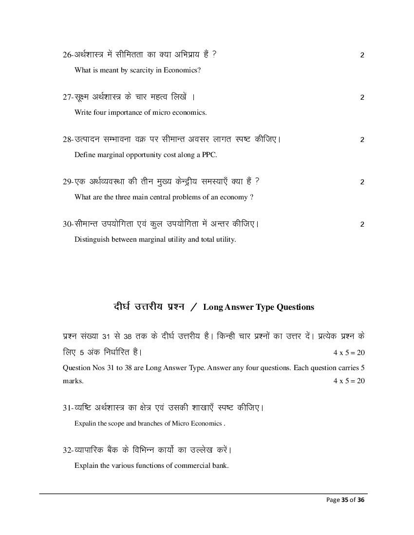 The Bihar Board model paper for class 12 Economics (Comm) is as follows.
