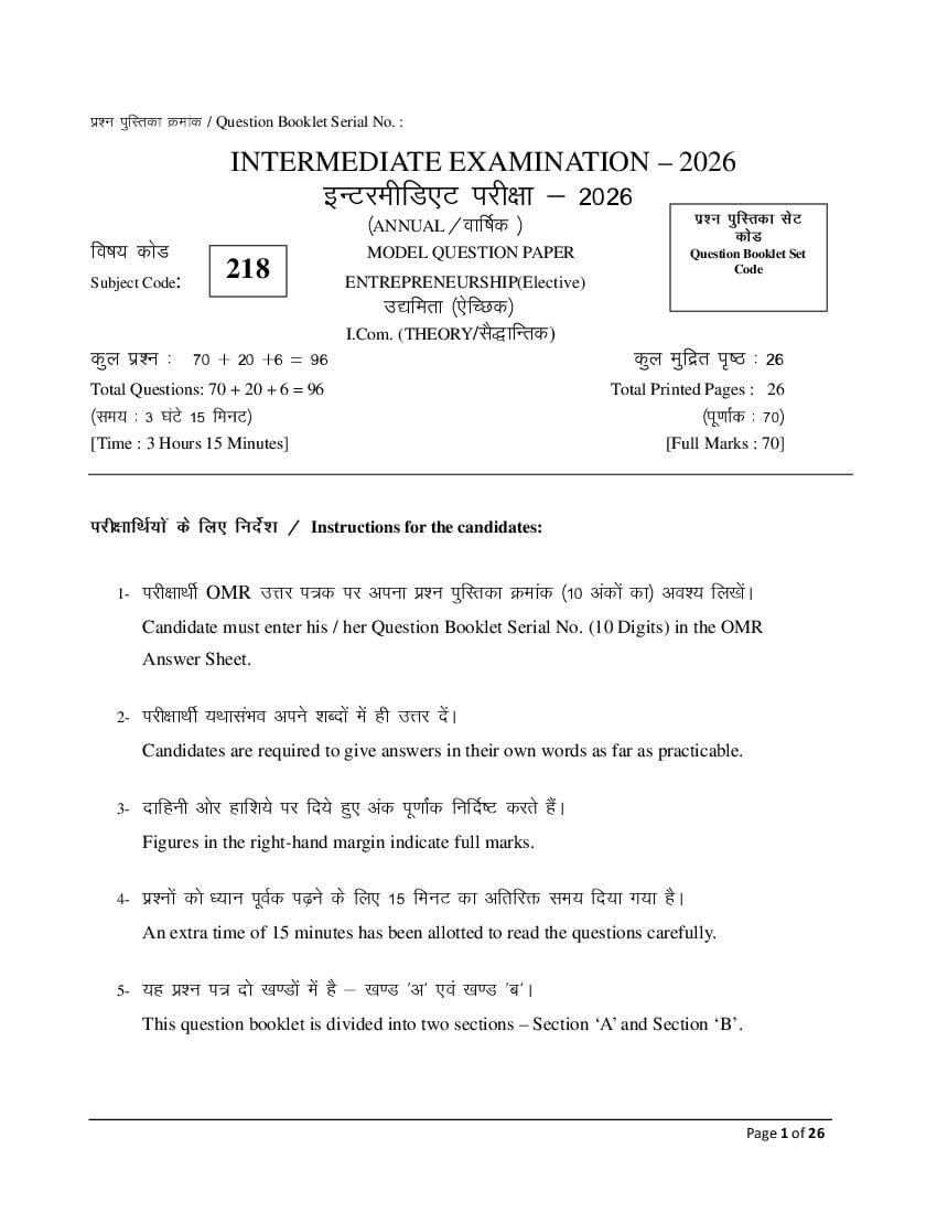 If you have any queries on Bihar Board Class 12th Entrepreneurship Model Paper 2026, then please ask in comments below.