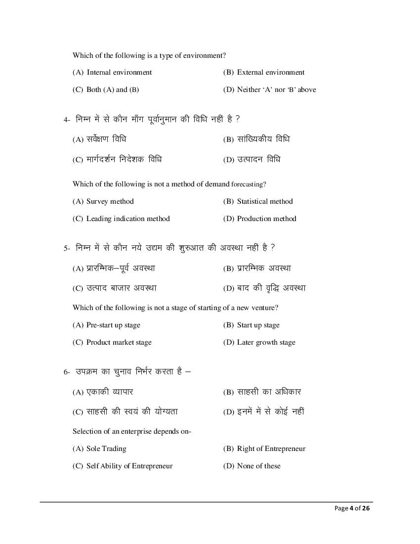 The Bihar Board model paper for class 12 Entrepreneurship is as follows.