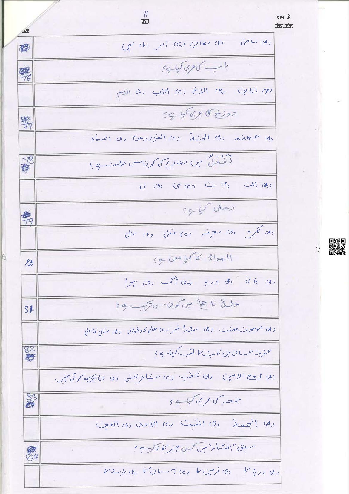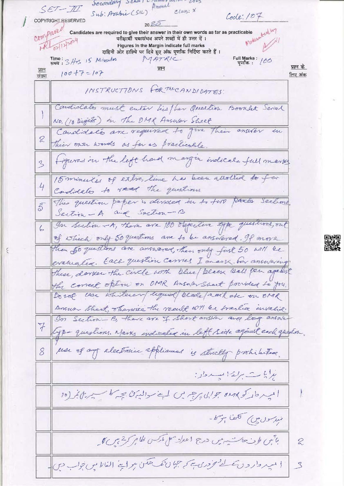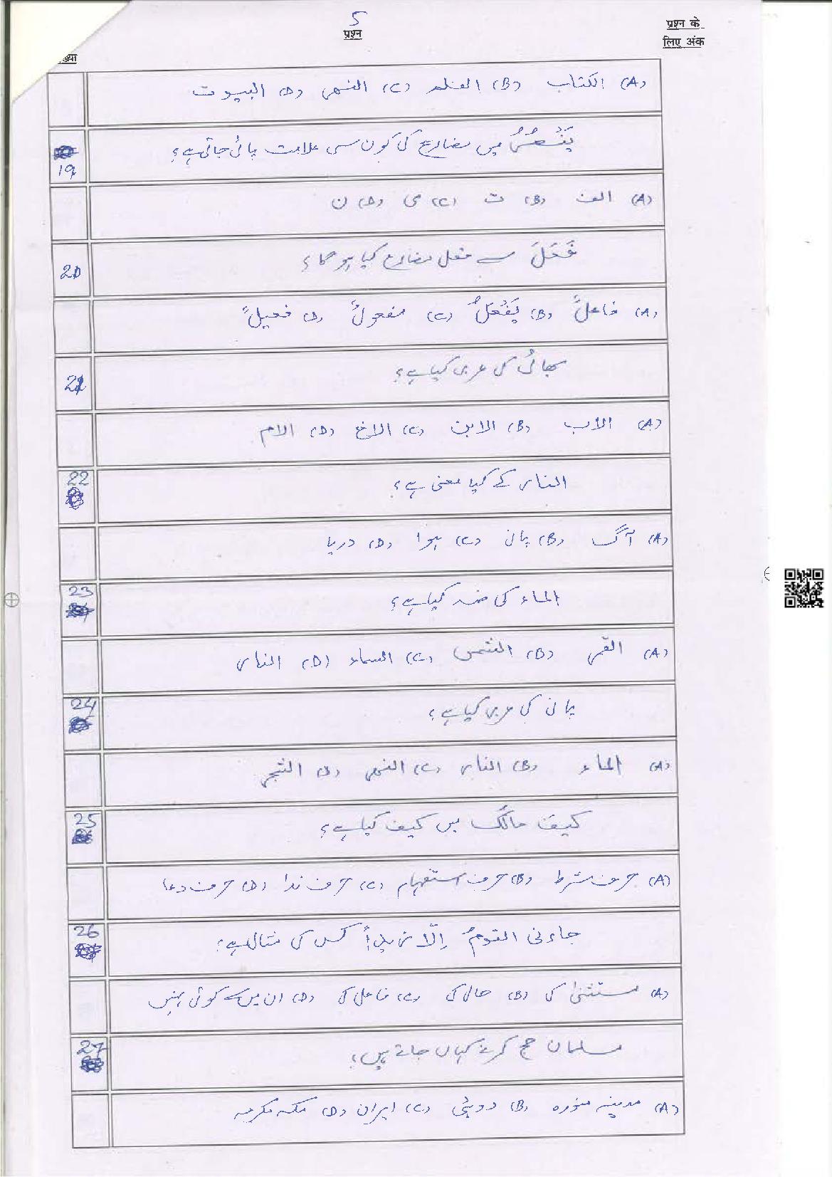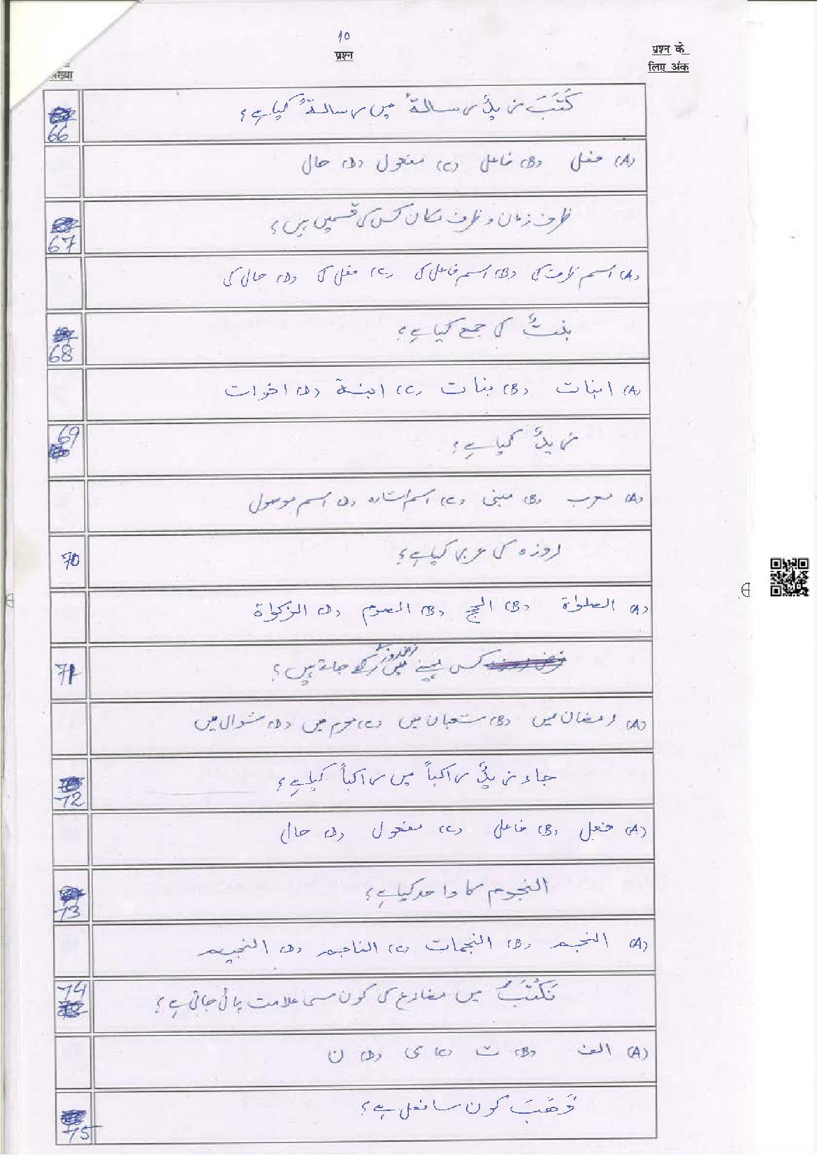 | Study Material Here | Bihar Board Question Paper of Class 10 Arabic SIL |