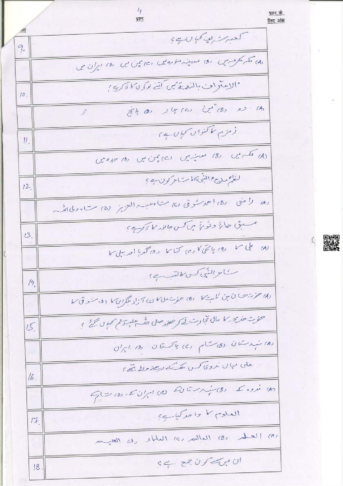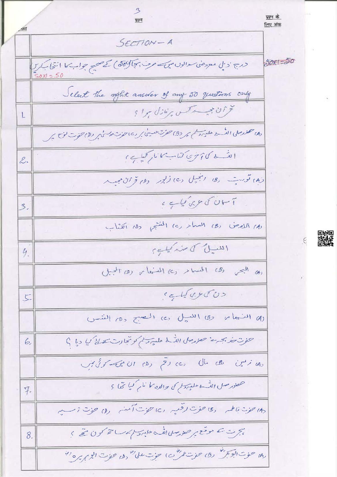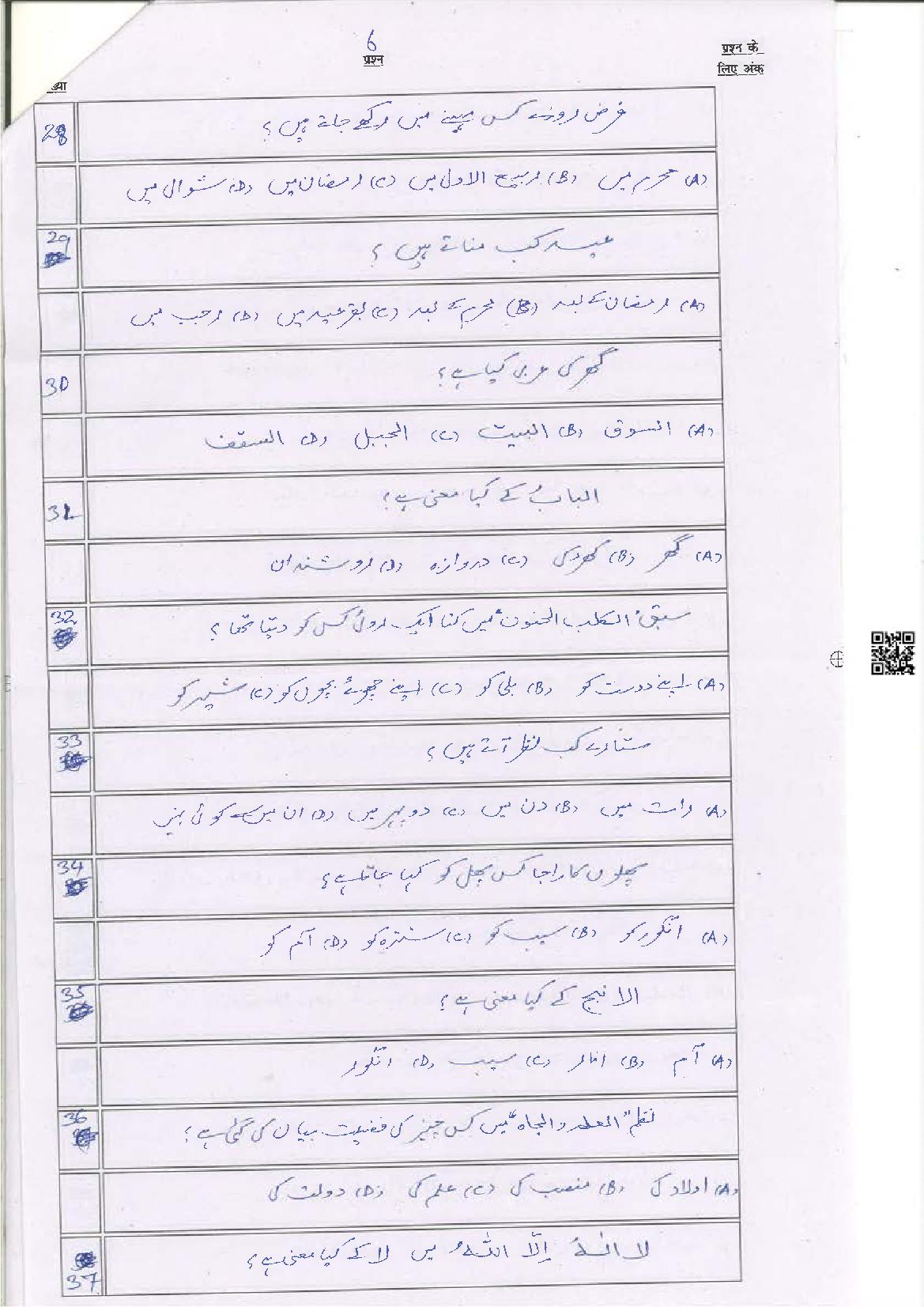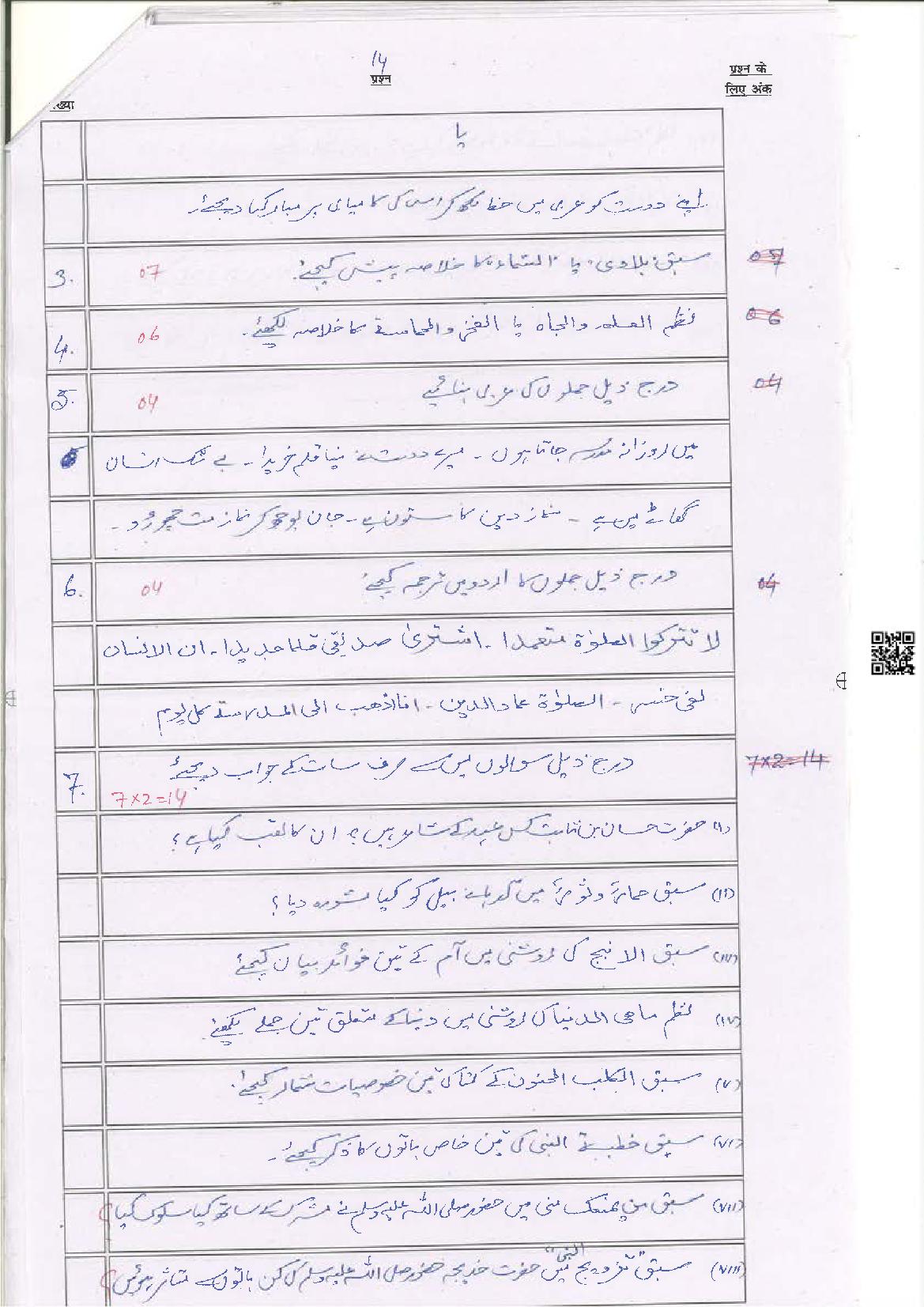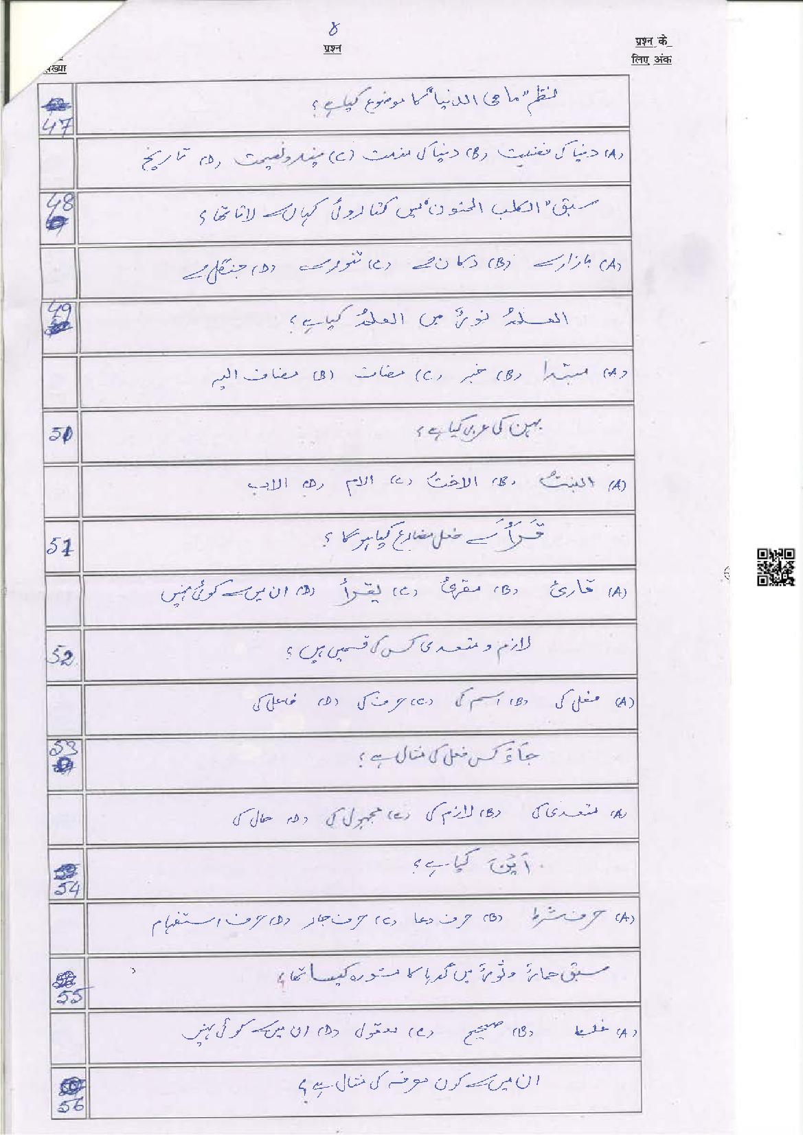 | Study Material Here | Bihar Board Question Paper of Class 10 Arabic SIL |
