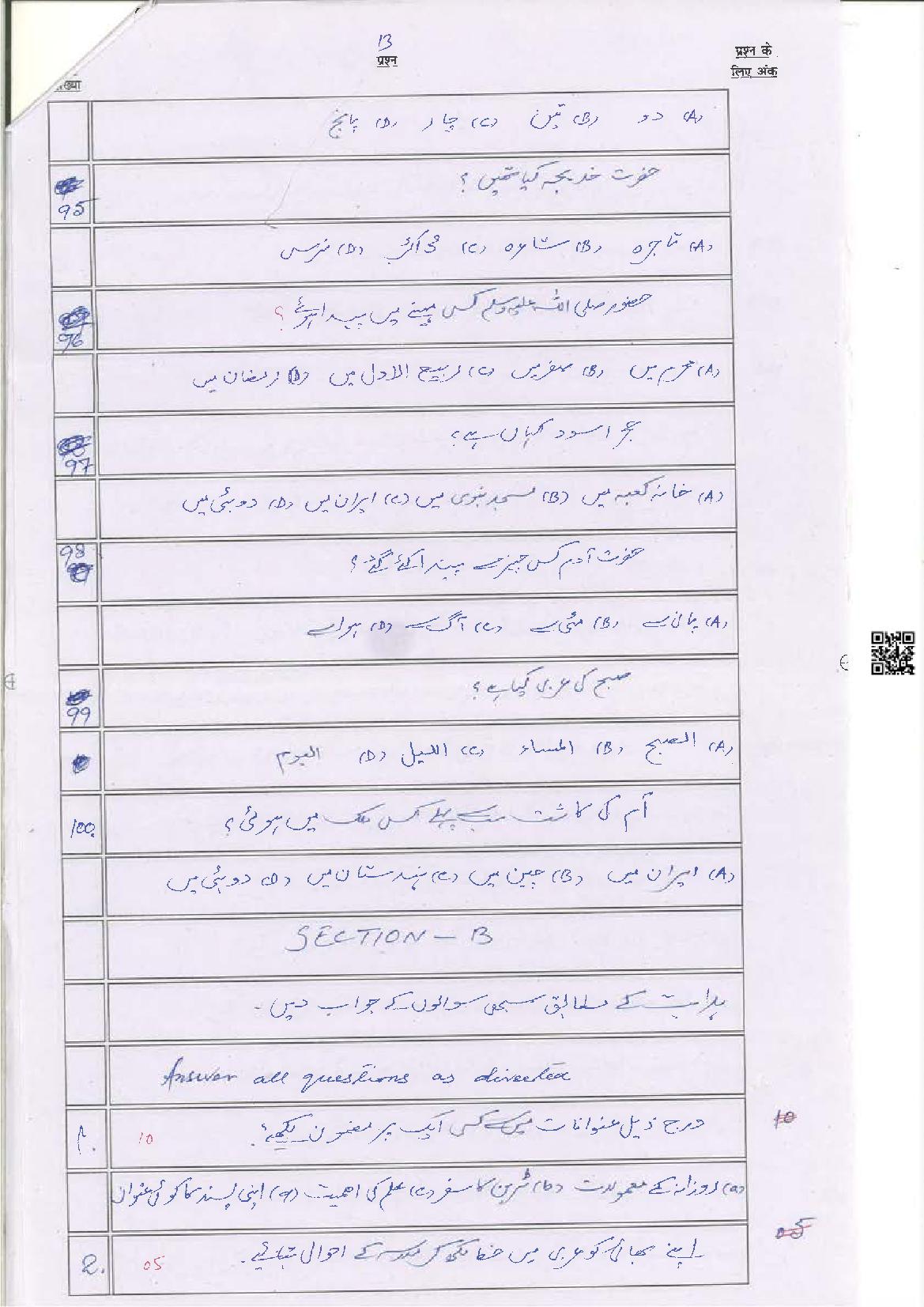 The Bihar Board Question Paper for Class 10 (Matric) Arabic SIL is as follows.