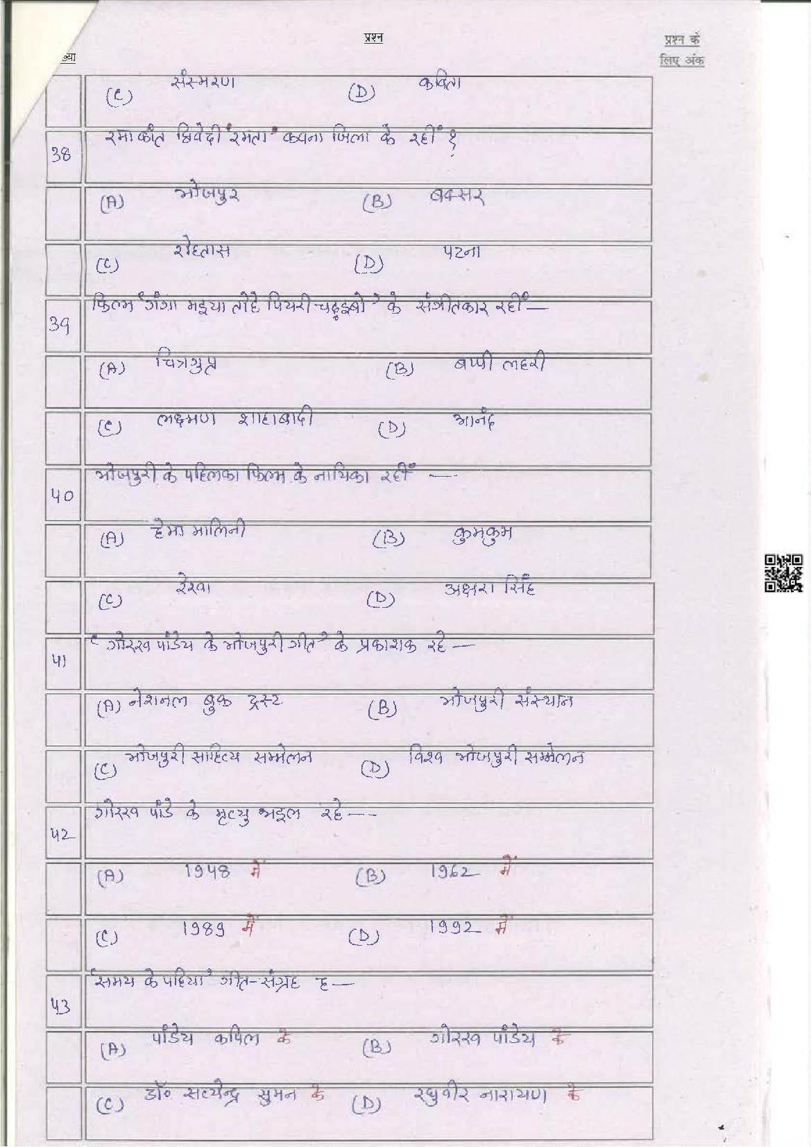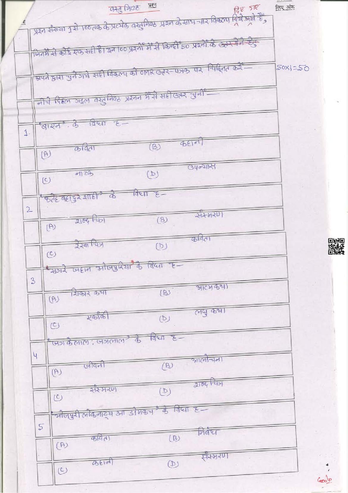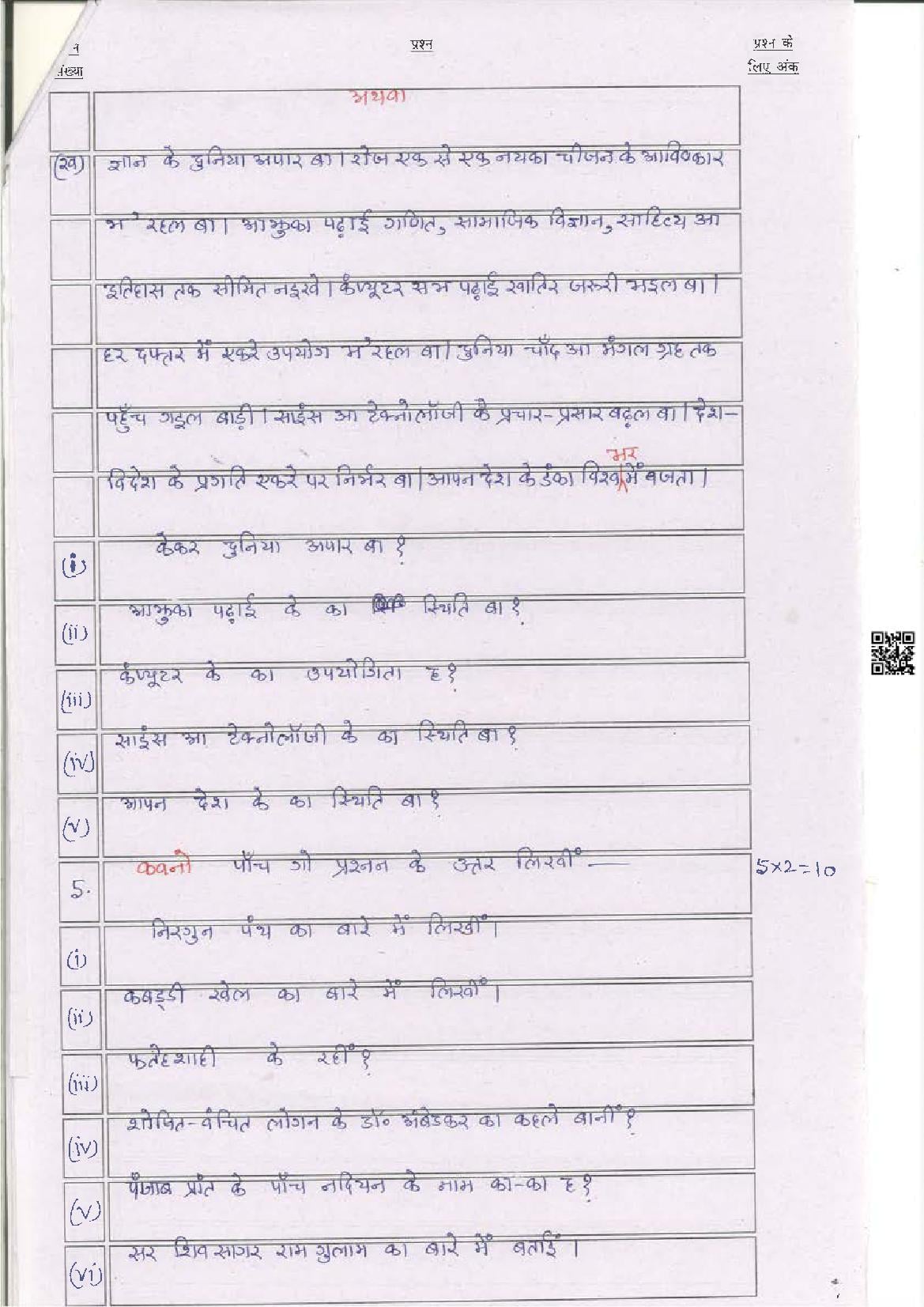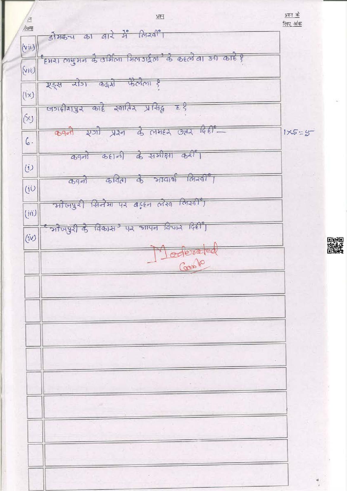| Study Material Here | Bihar Board Question Paper of Class 10 Bhojpuri |