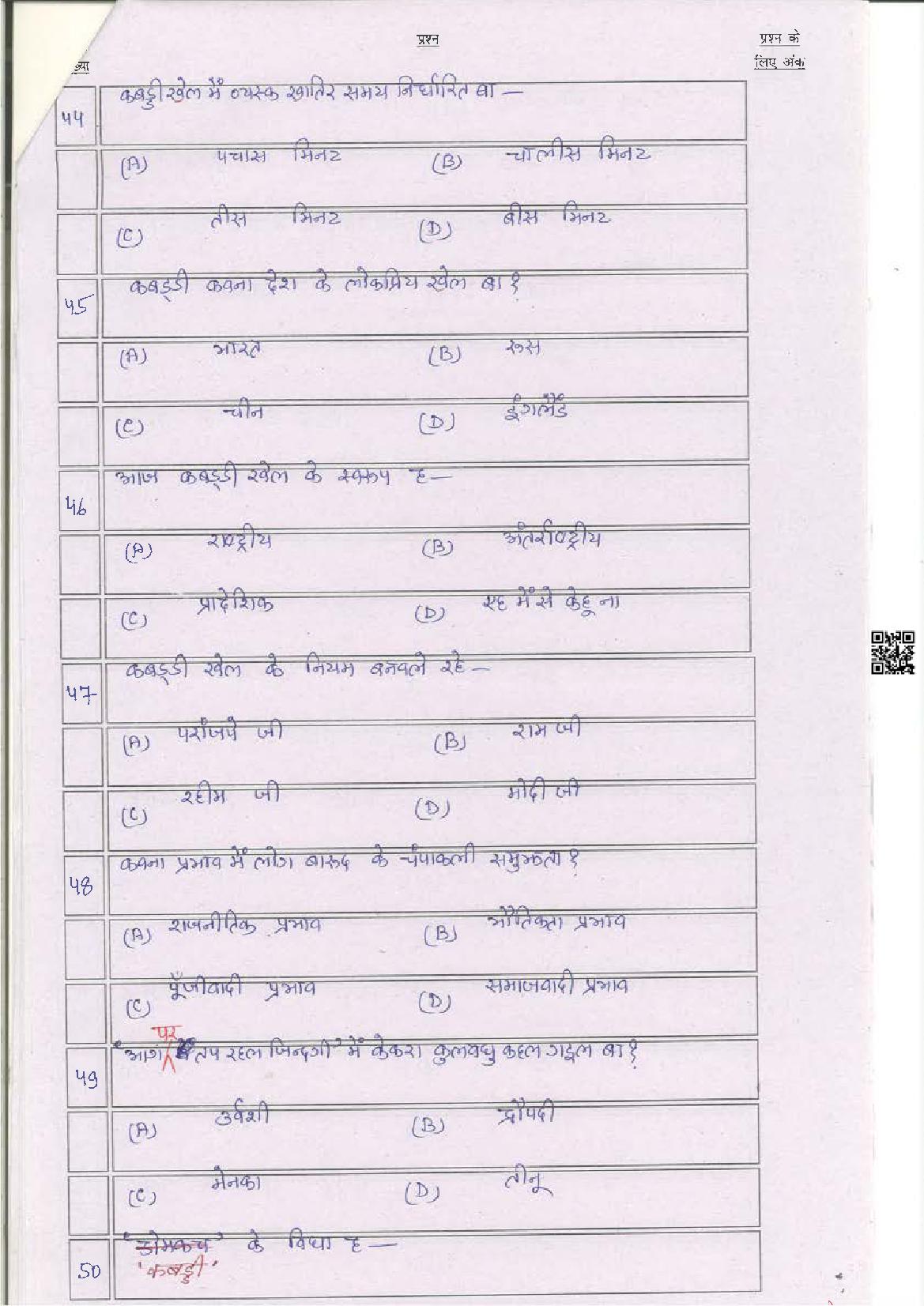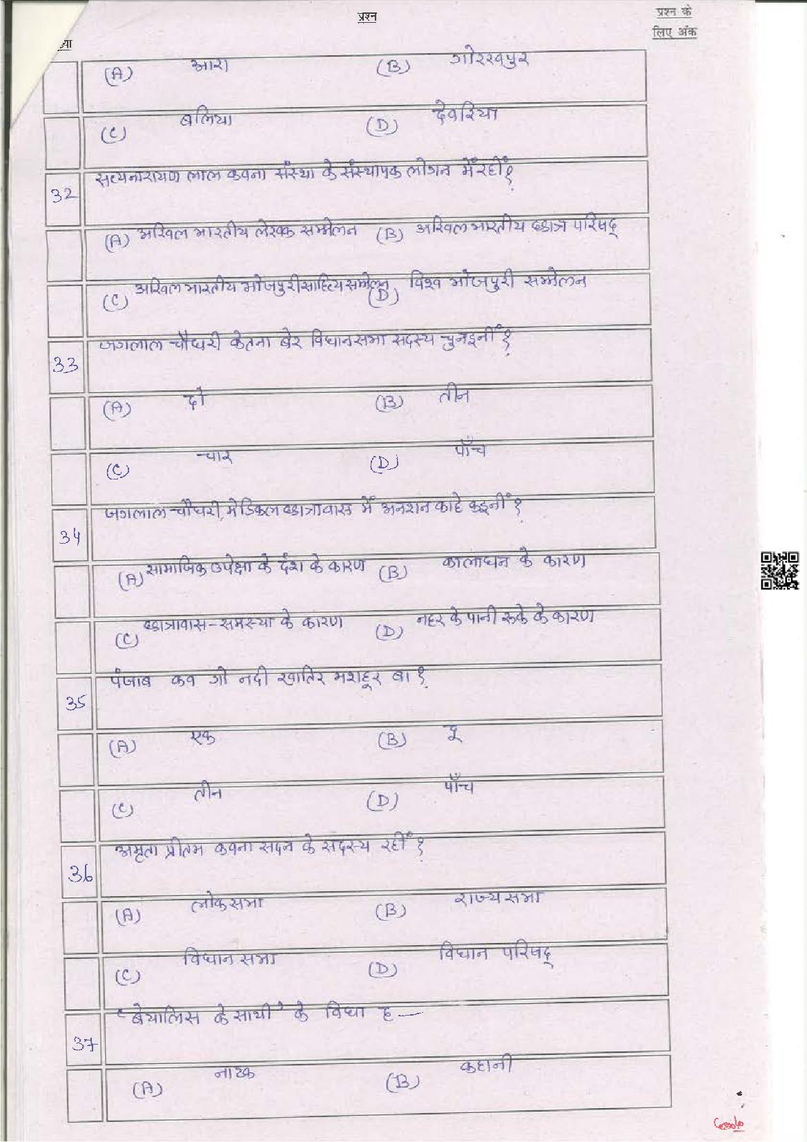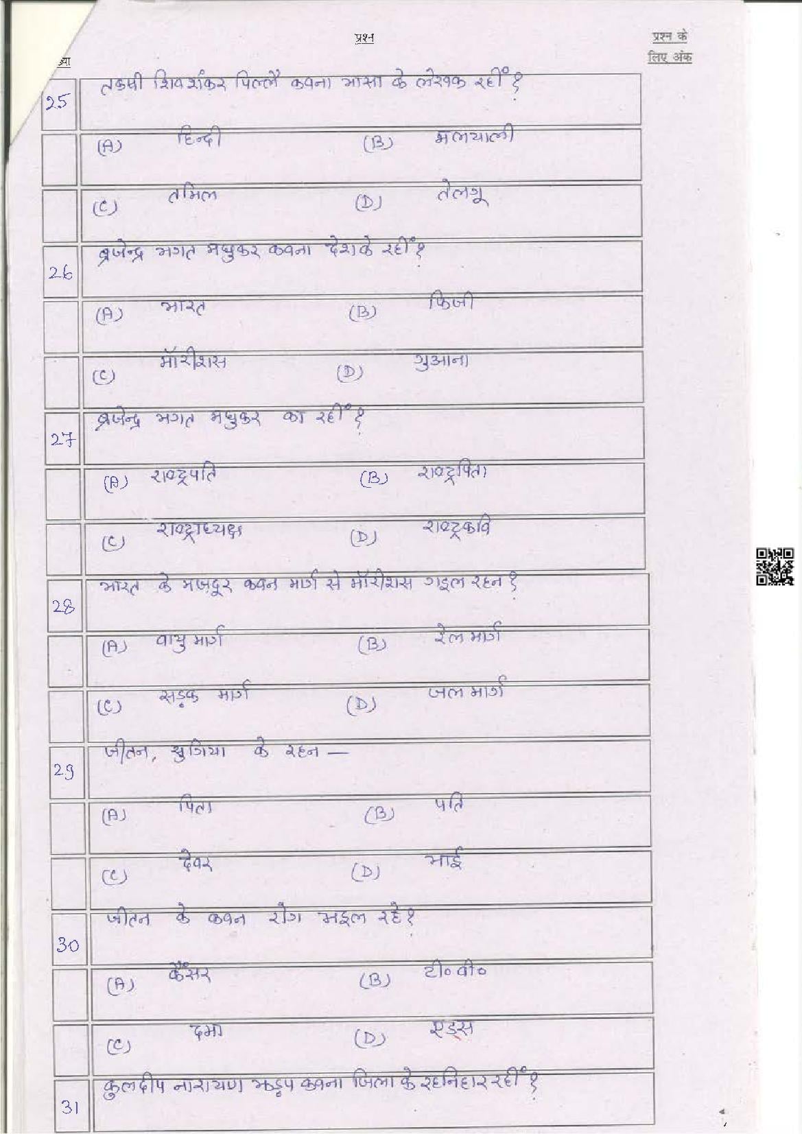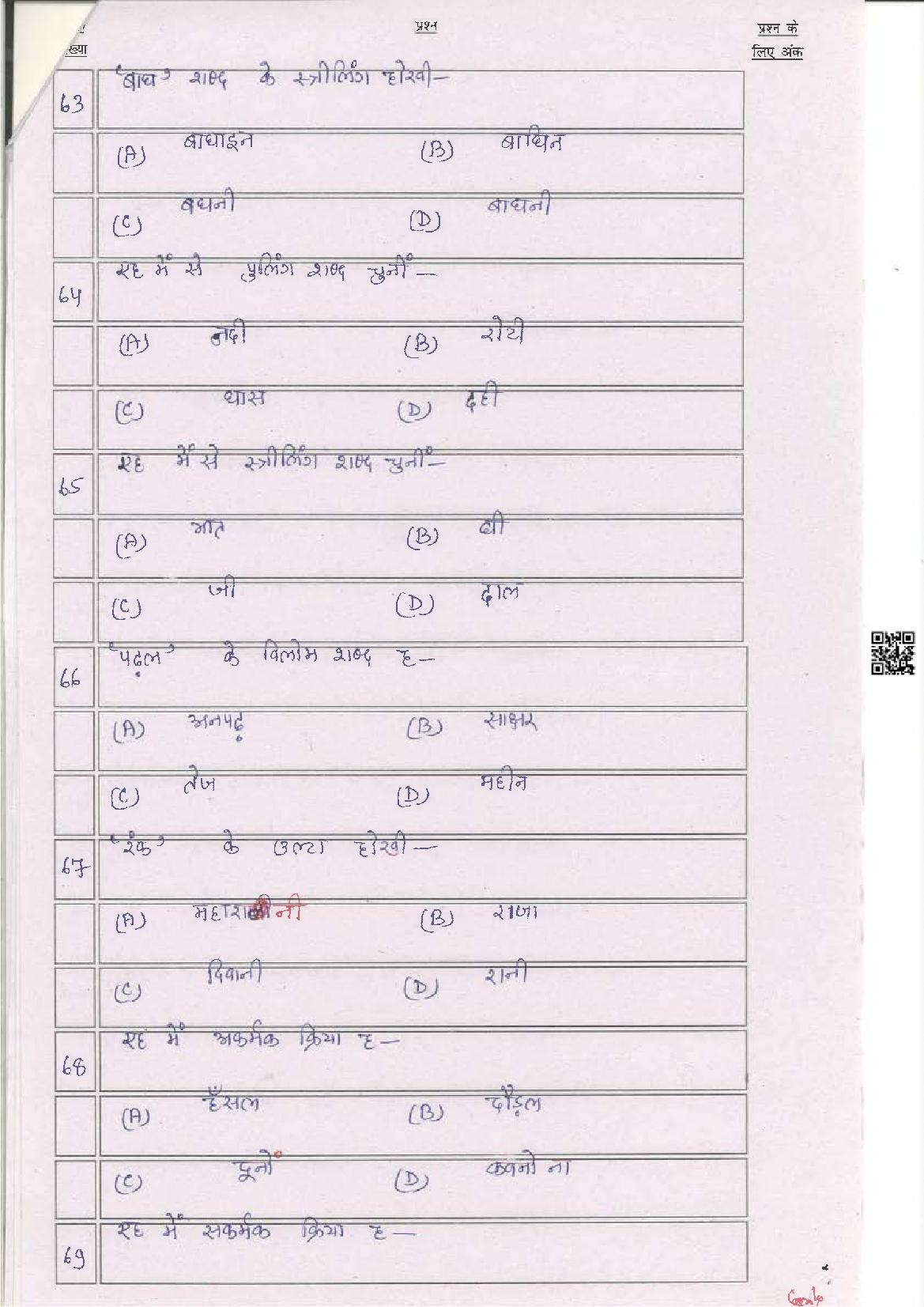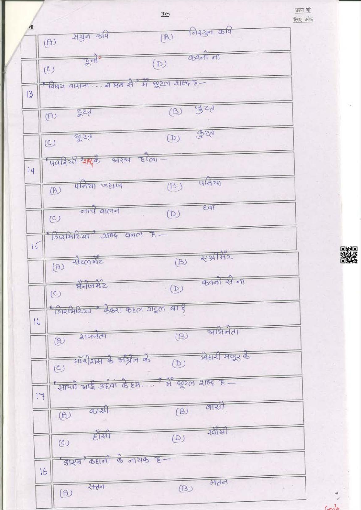 | Study Material Here | Bihar Board Question Paper of Class 10 Bhojpuri |