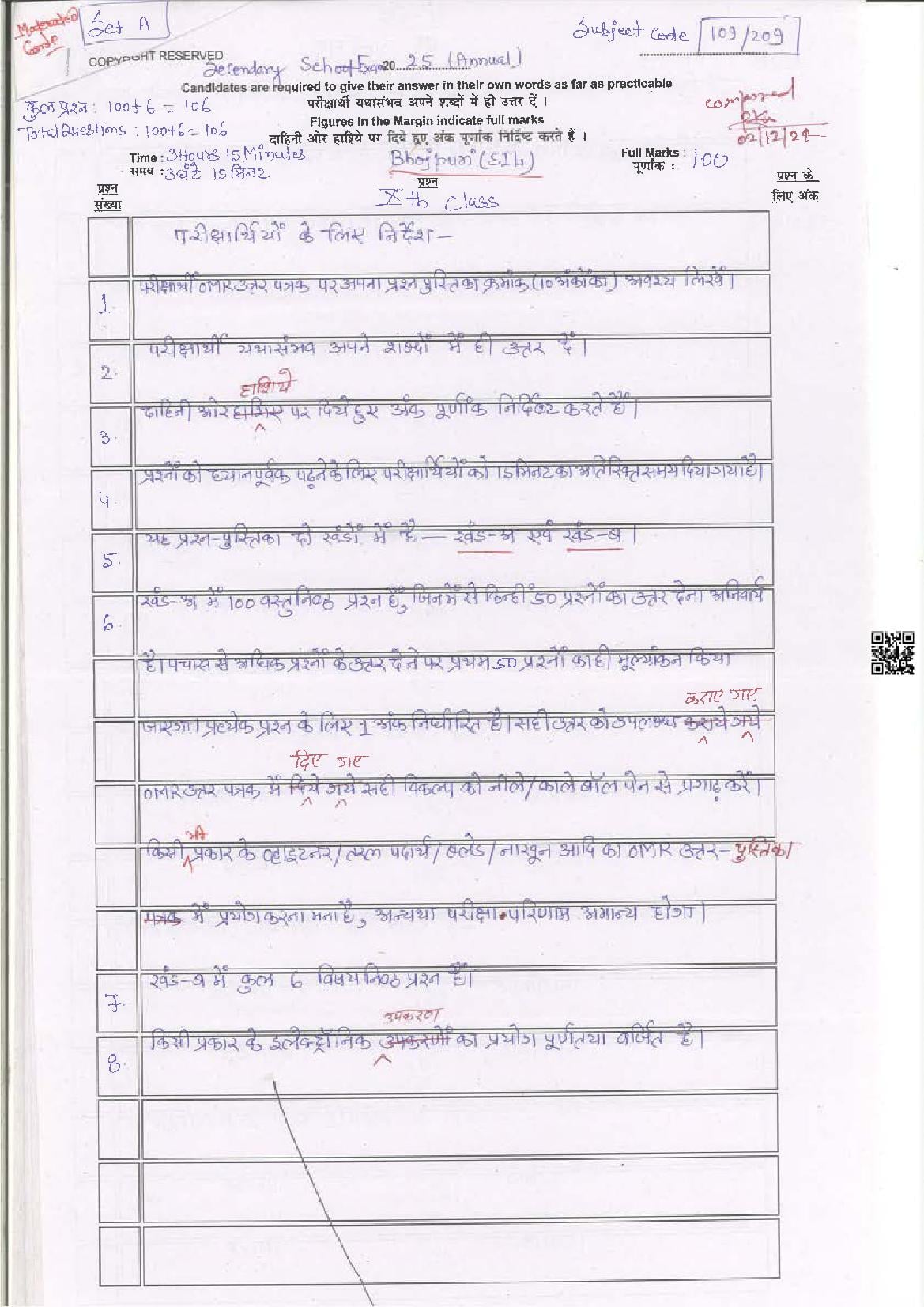 Bihar Board 10th Question Paper 2025 Bhojpuri View Download