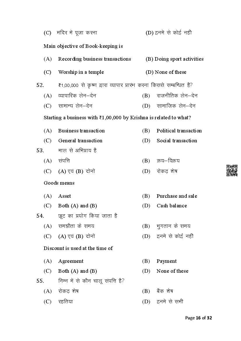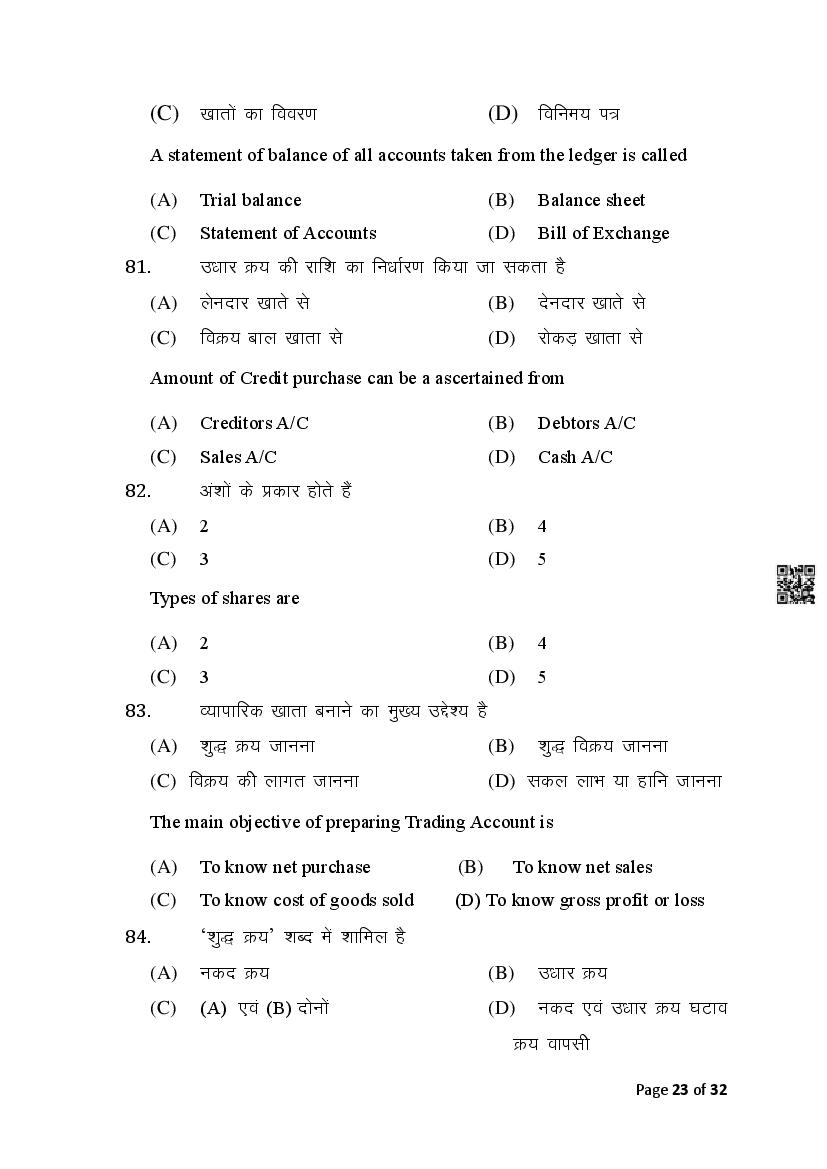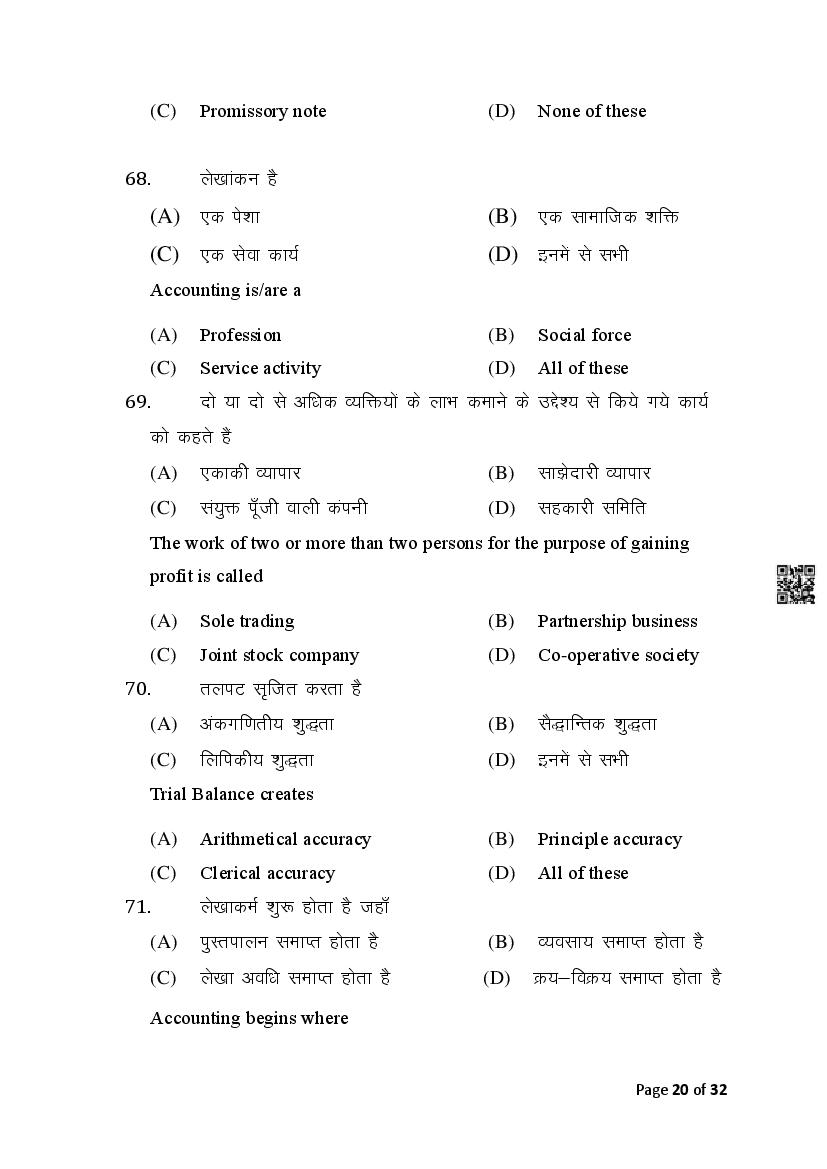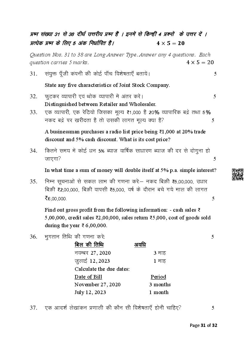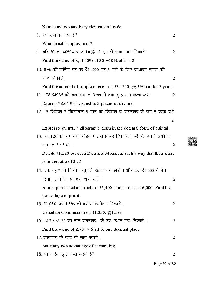 The Bihar Board Question Paper for Class 10 (Matric) Commerce is as follows.