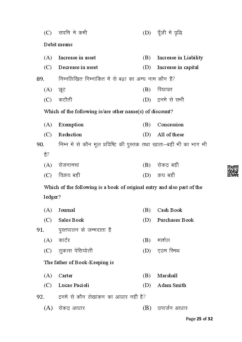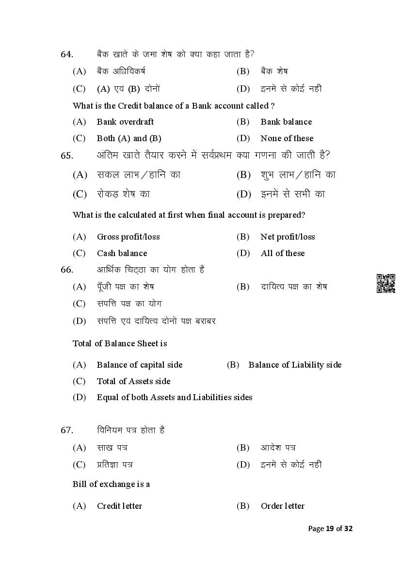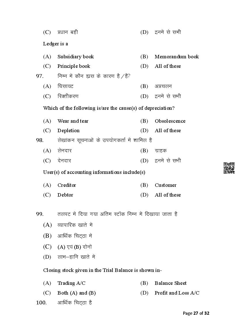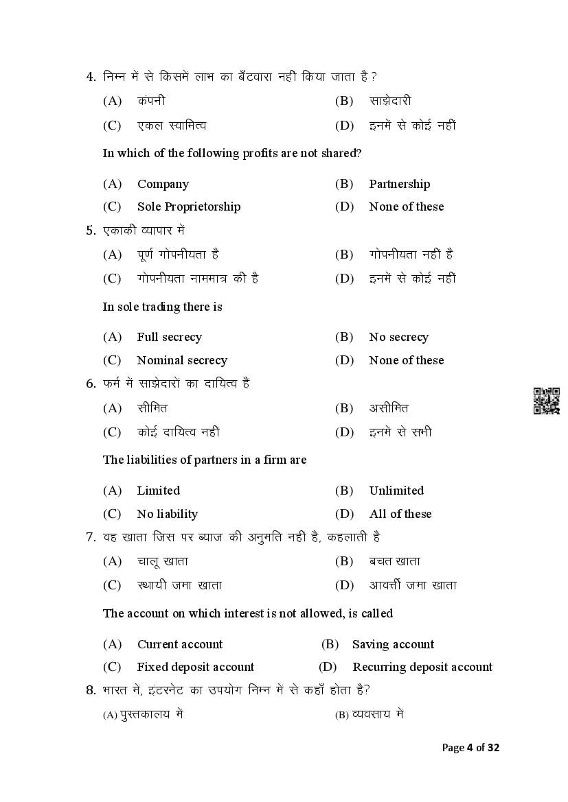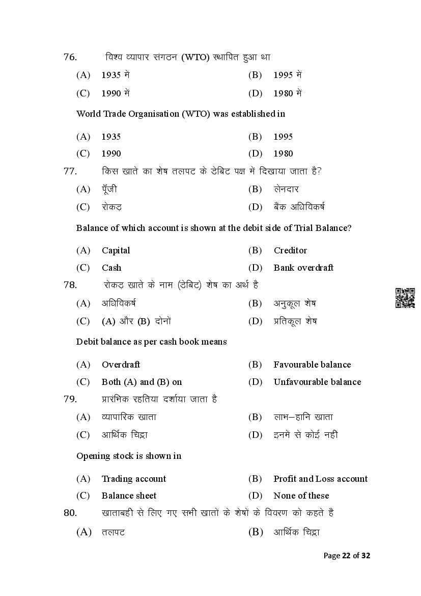 The Bihar Board Question Paper for Class 10 (Matric) Commerce is as follows.
