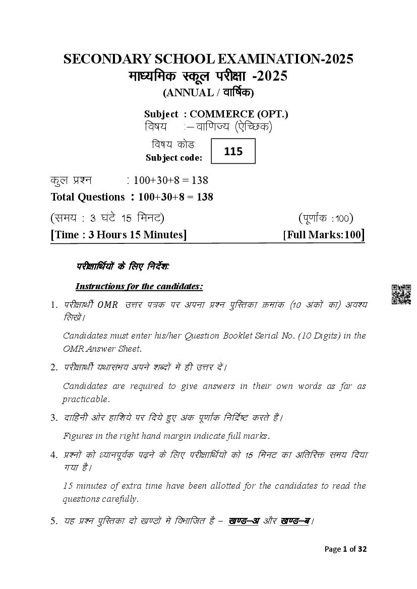Bihar Board Class 10 Commerce Question Paper 2025 PDF Download Link – Click Here to Download Question Paper PDF