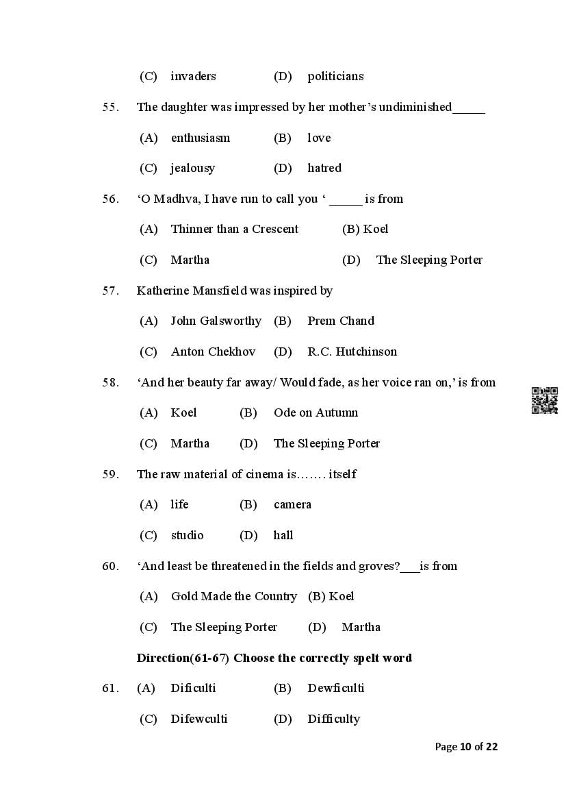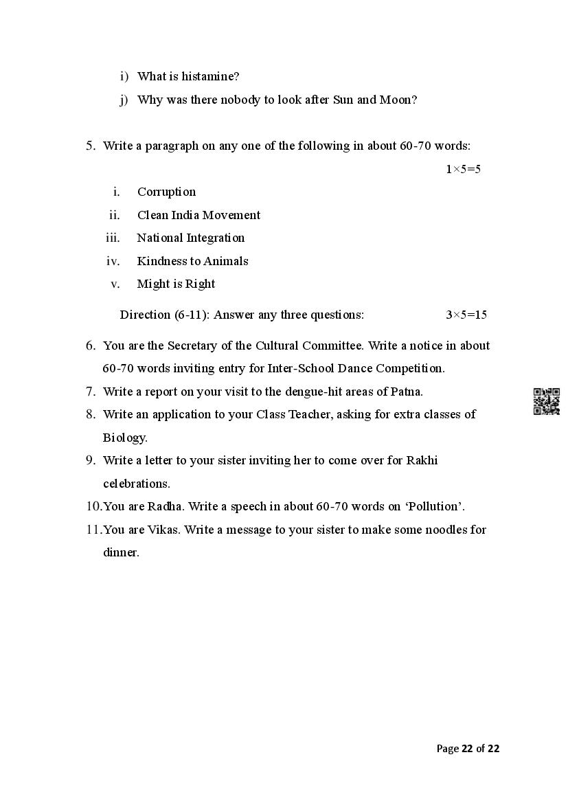 | Study Material Here | Bihar Board Question Paper of Class 10 English |
