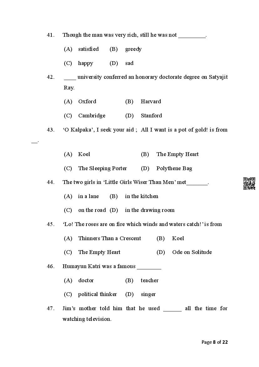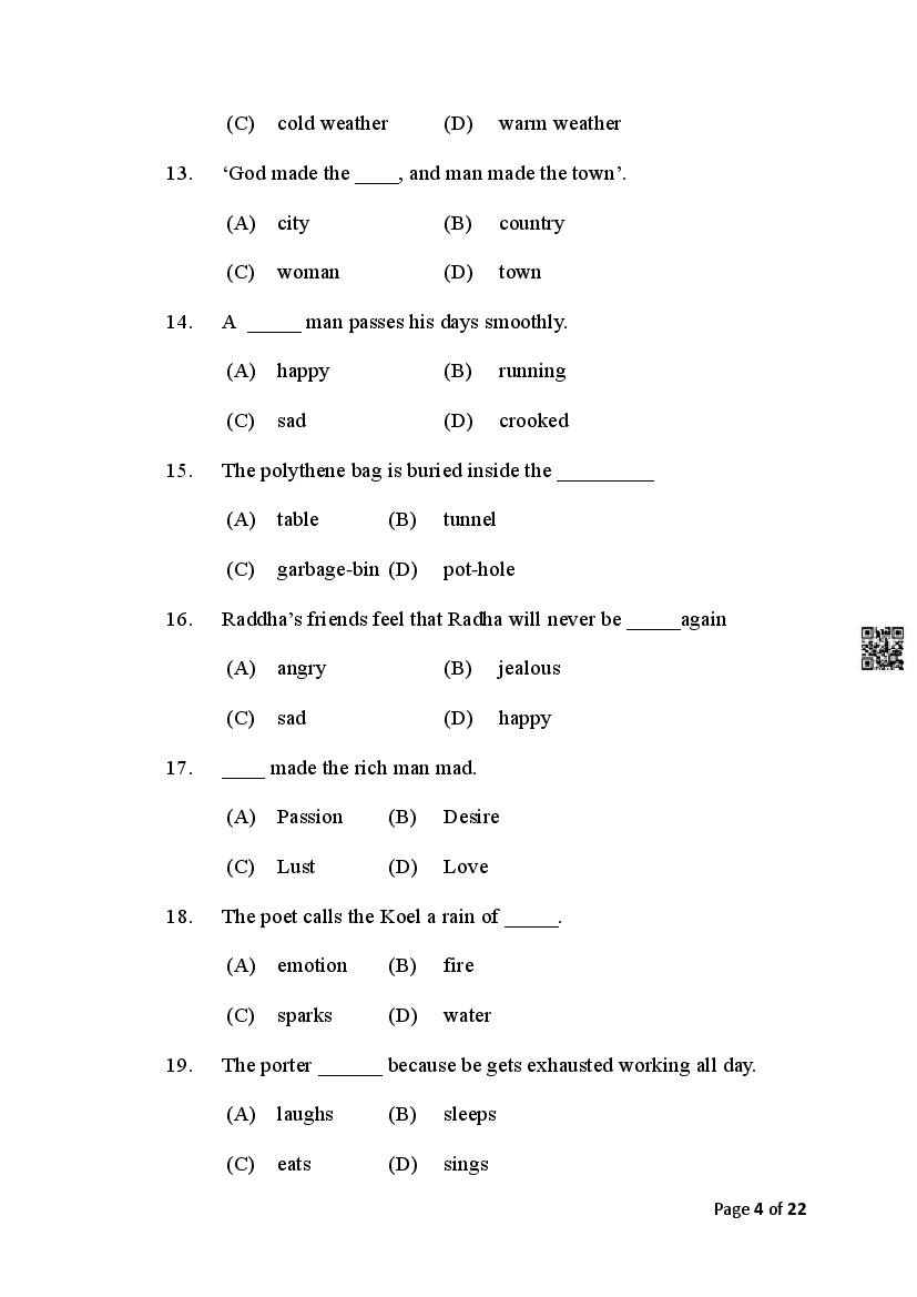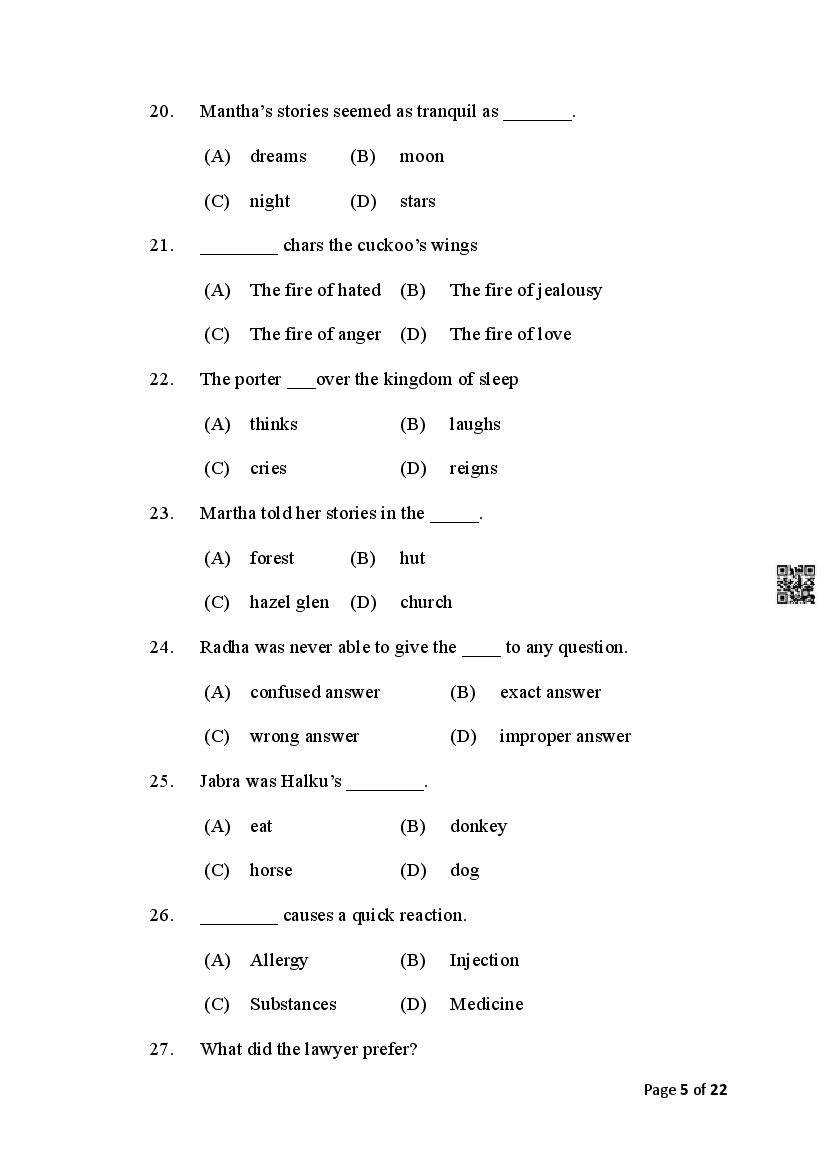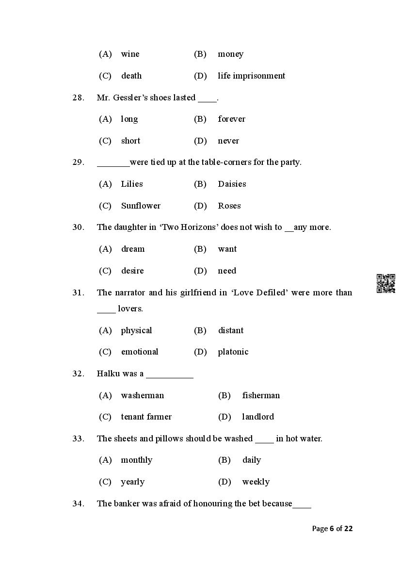 The Bihar Board Question Paper for Class 10 (Matric) English is as follows.