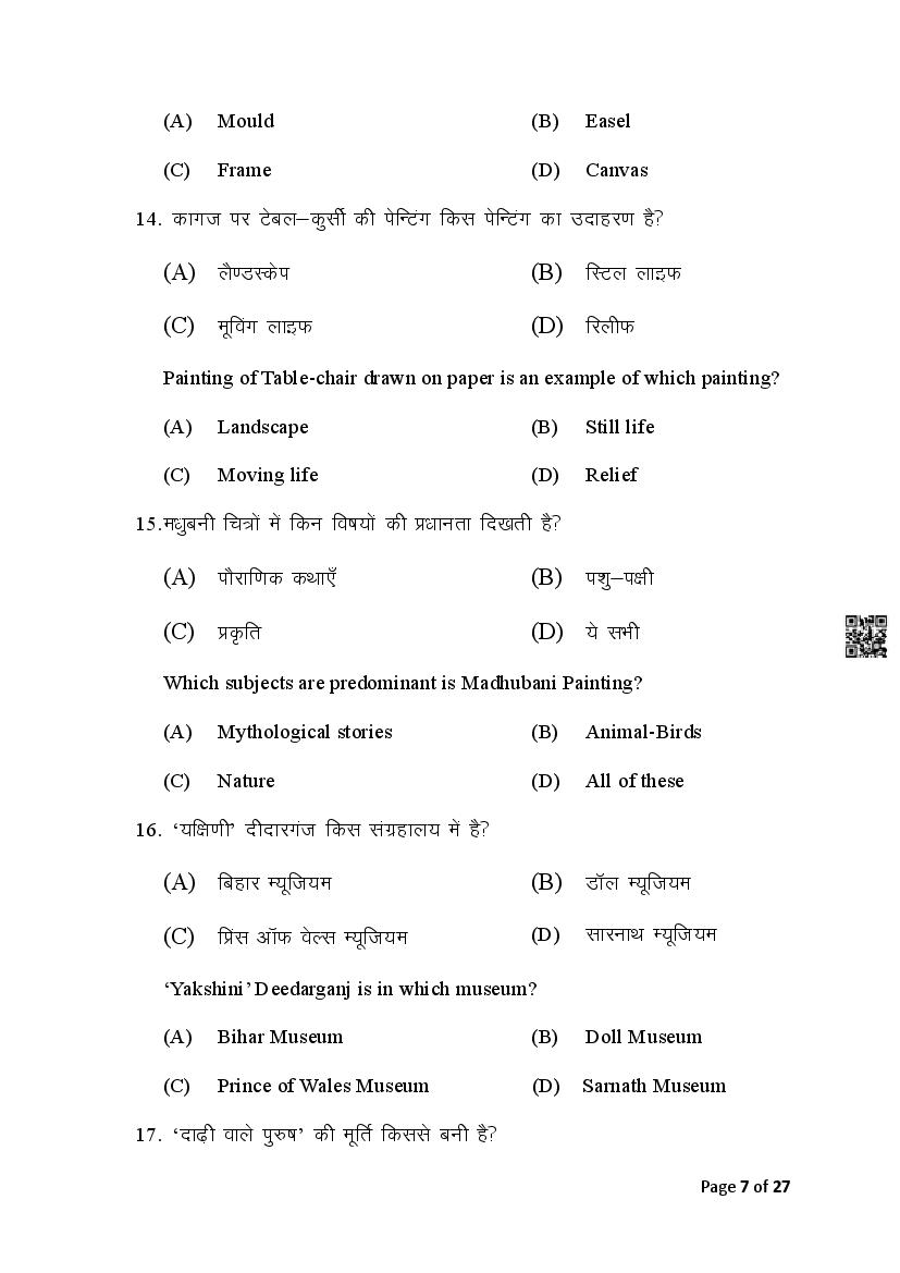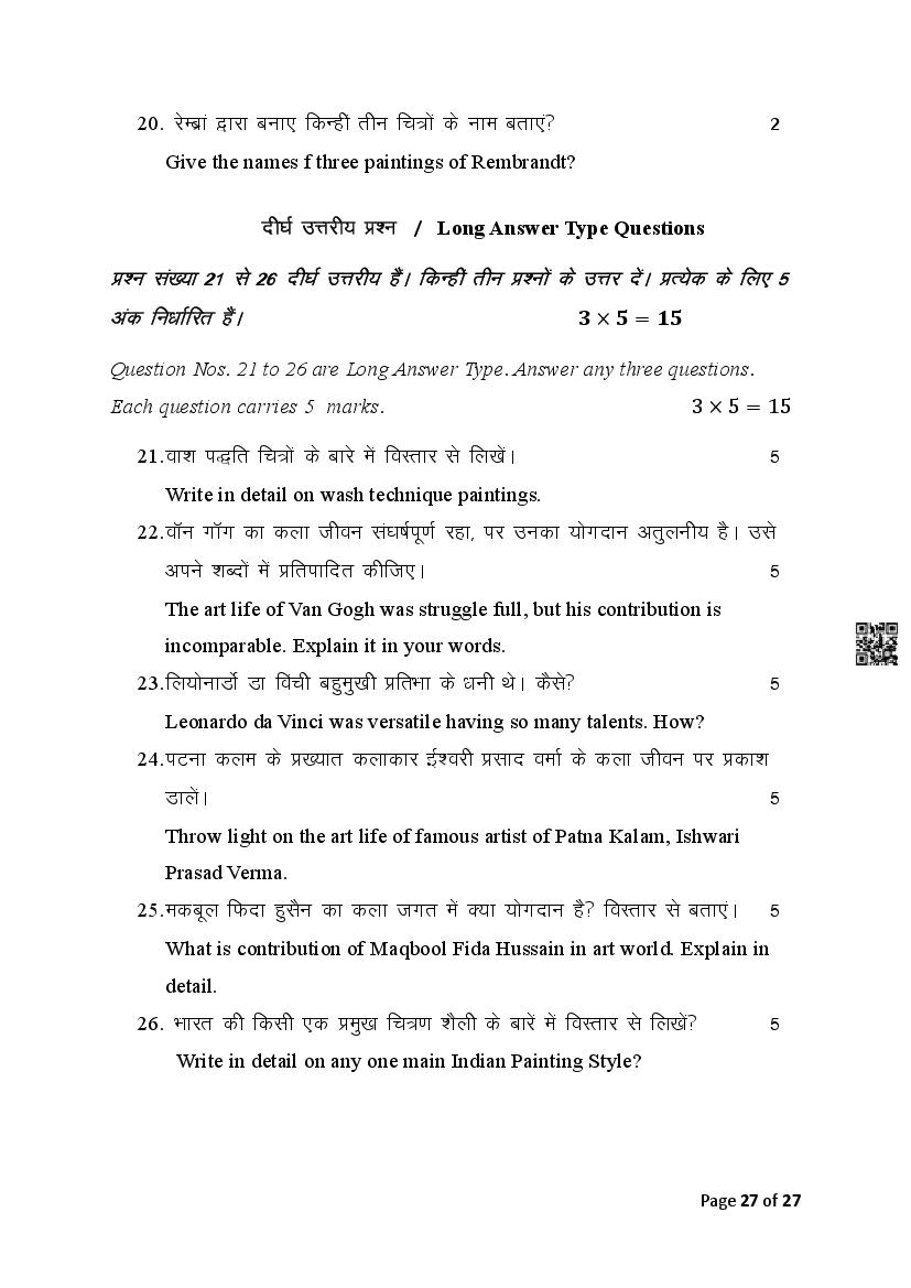 The Bihar Board Question Paper for Class 10 (Matric) Fine Arts is as follows.
