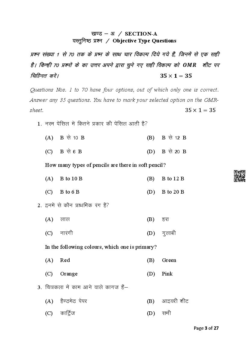 | Study Material Here | Bihar Board Question Paper of Class 10 Fine Arts |