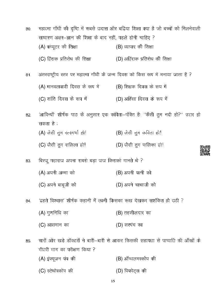 Bihar Board Class 10 Hindi Question Paper 2025 PDF