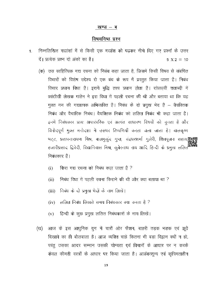 The Bihar Board Question Paper for Class 10 (Matric) Hindi is as follows.