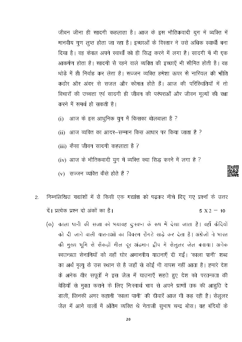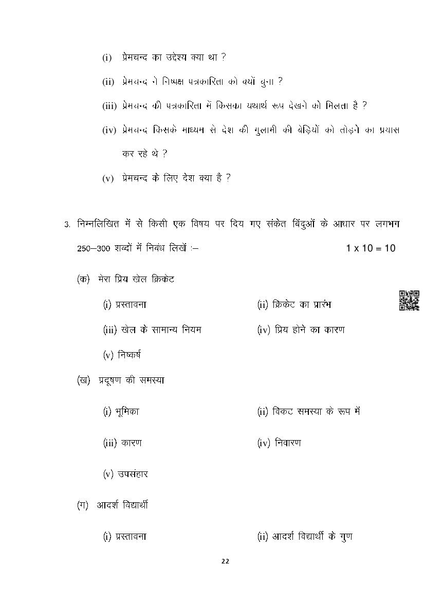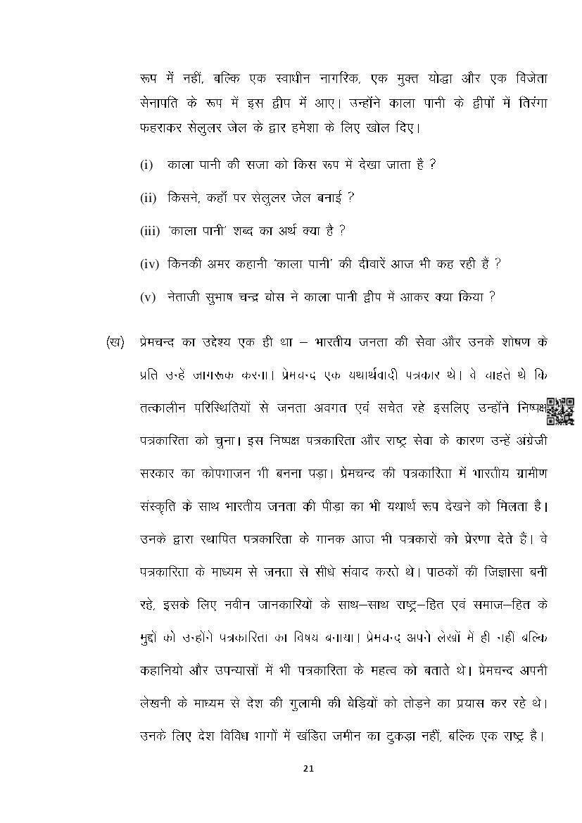 | Study Material Here | Bihar Board Question Paper of Class 10 Hindi |