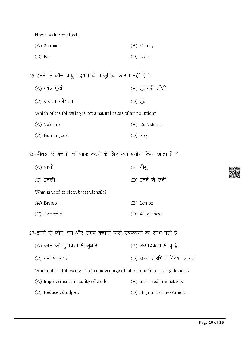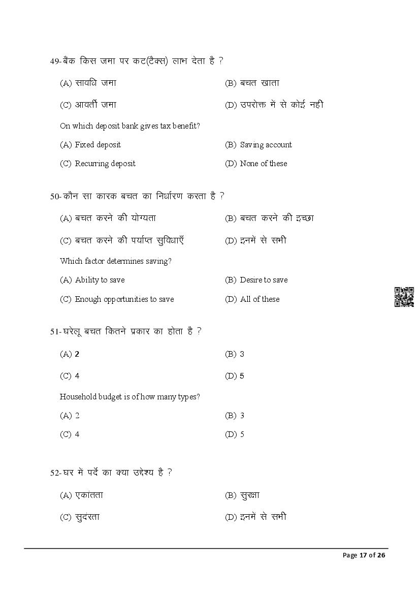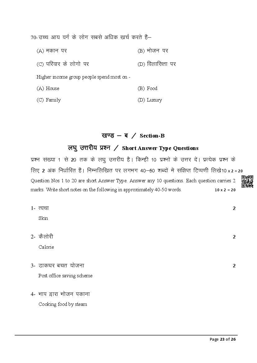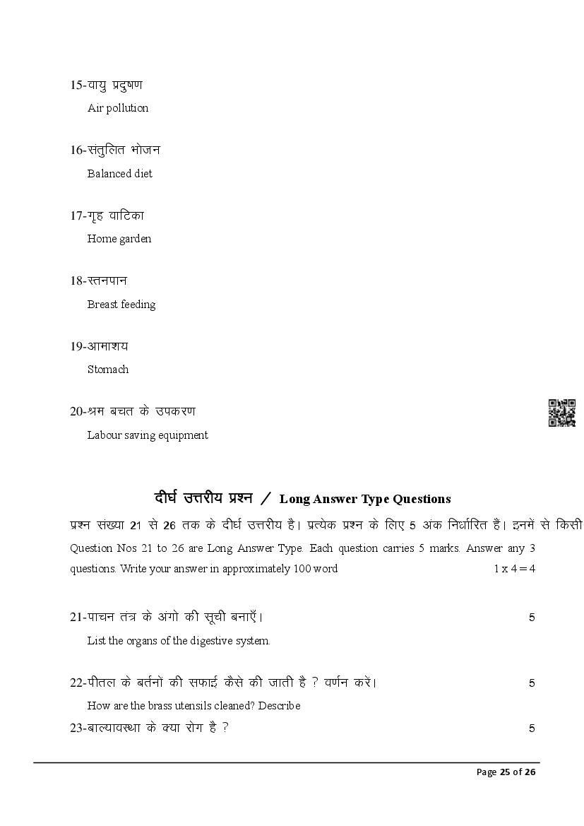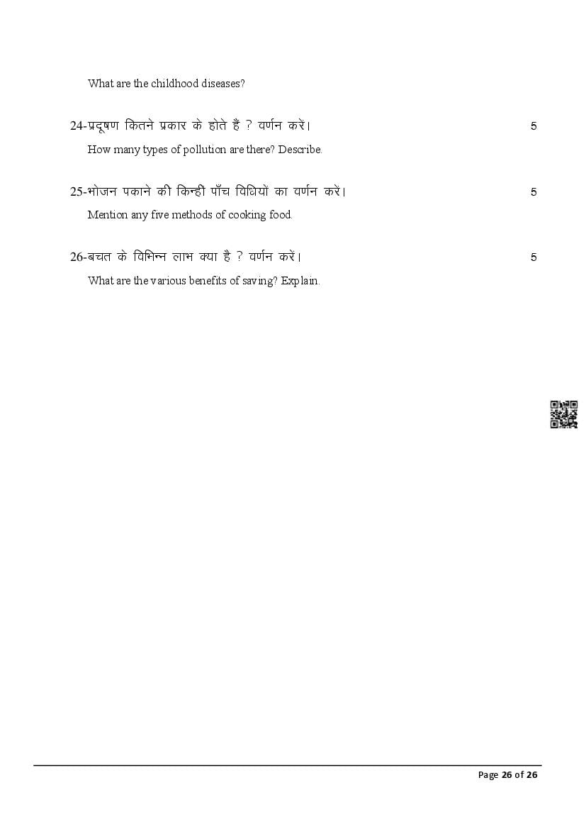 | Study Material Here | Bihar Board Question Paper of Class 10 Home Science |