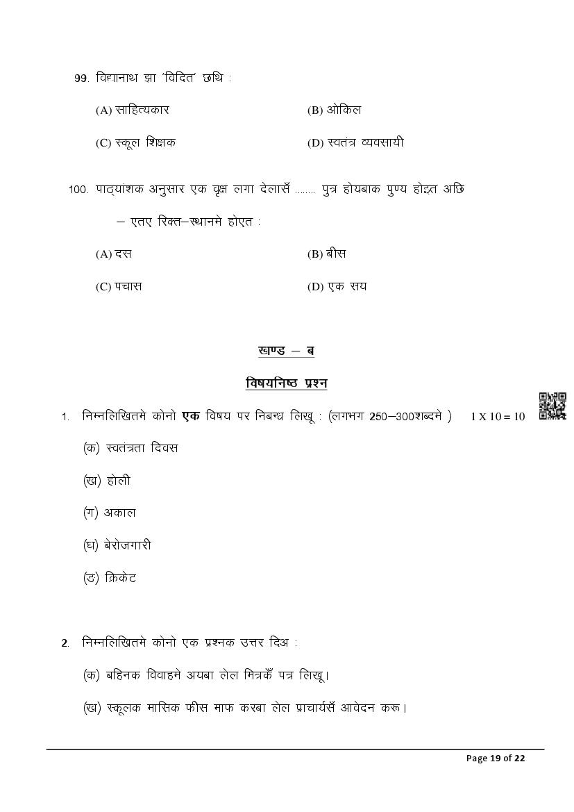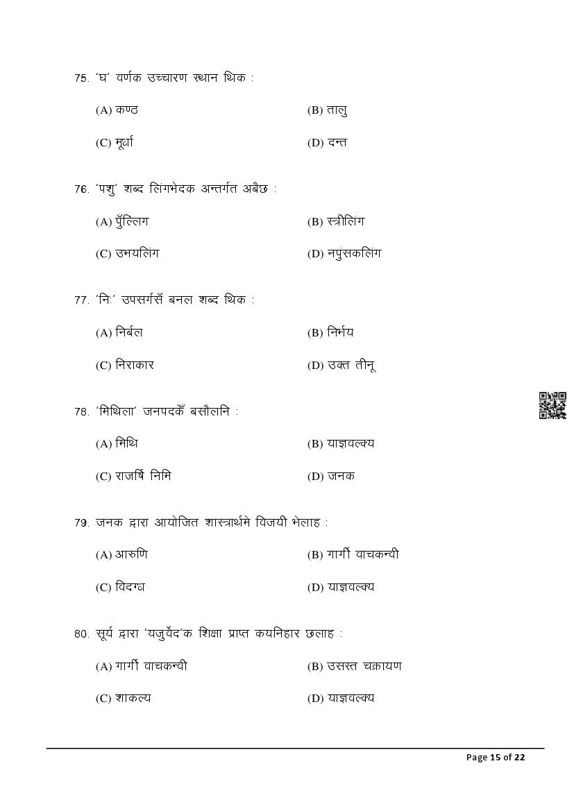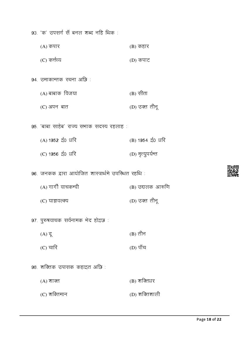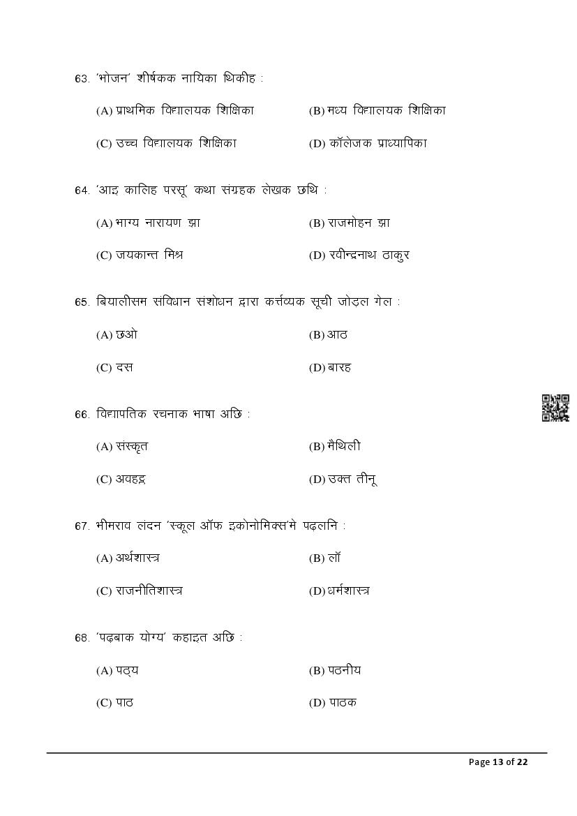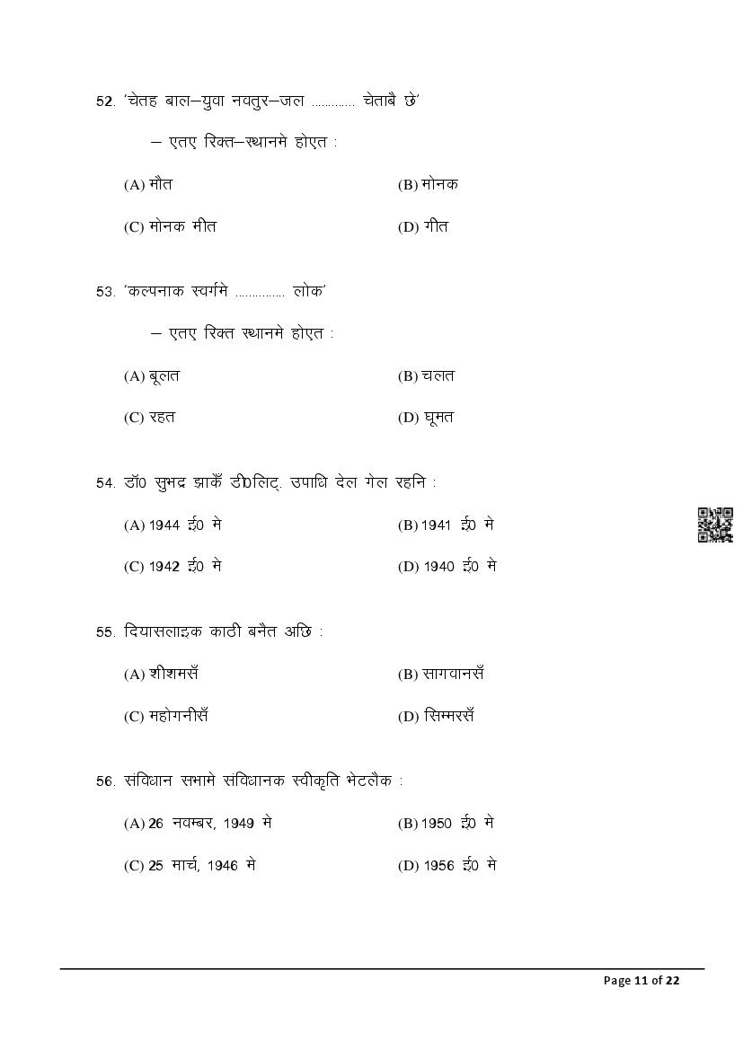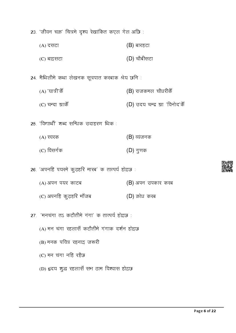 The latest Maithili SIL previous year question paper is as follows.