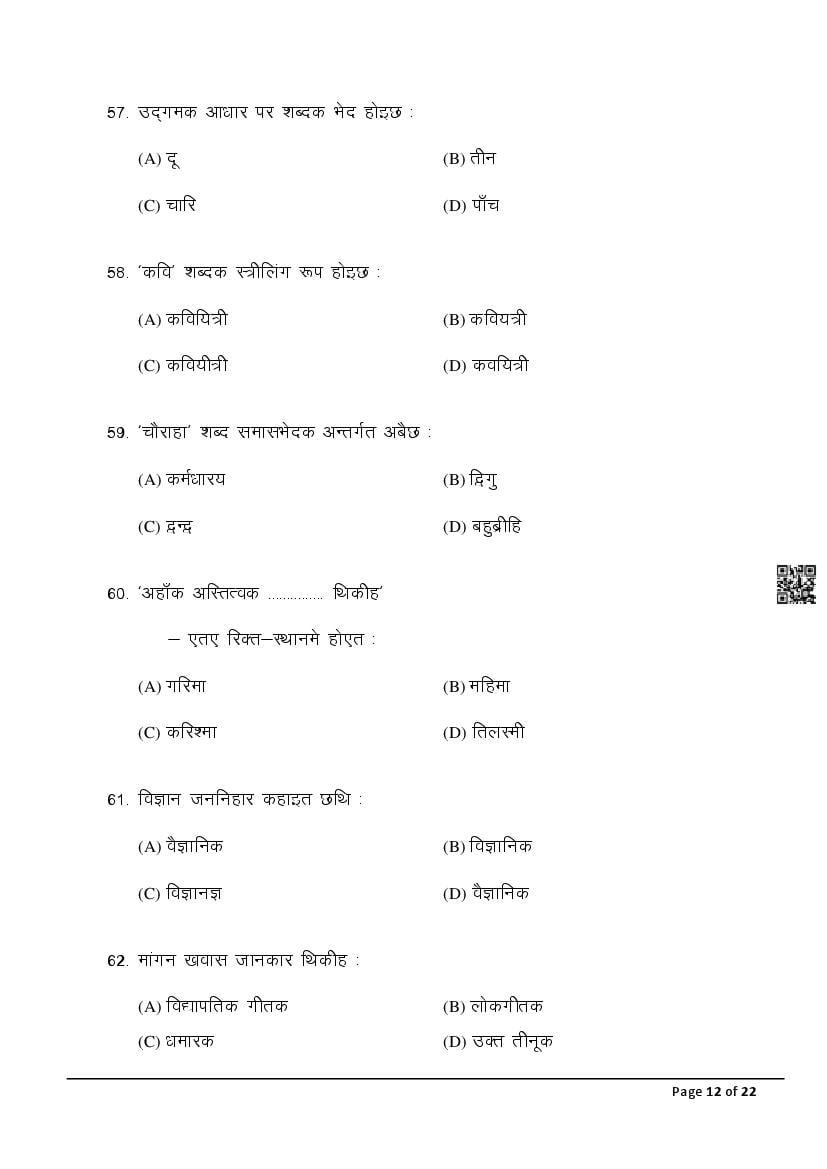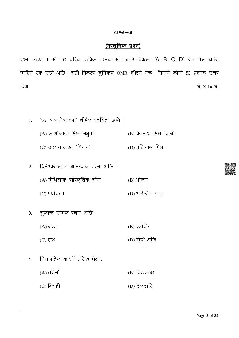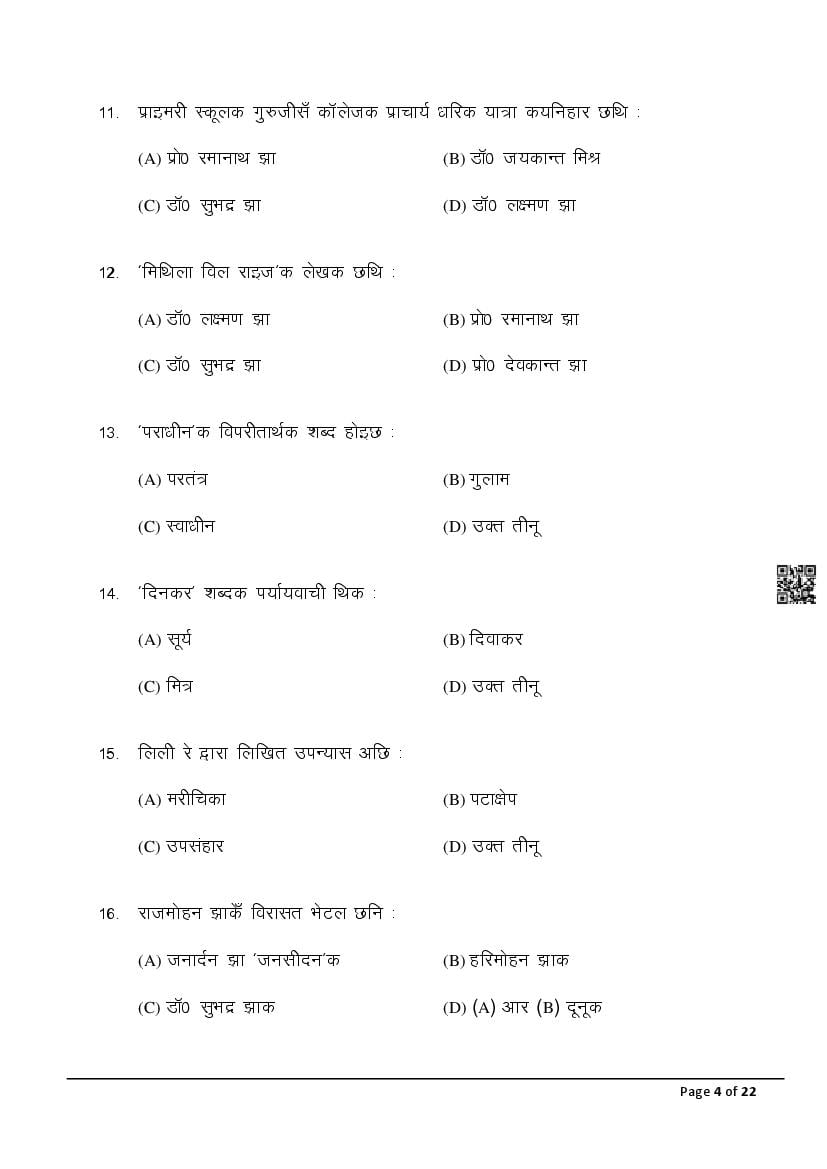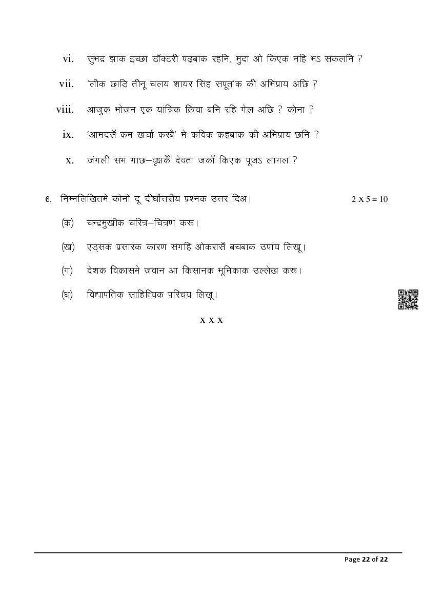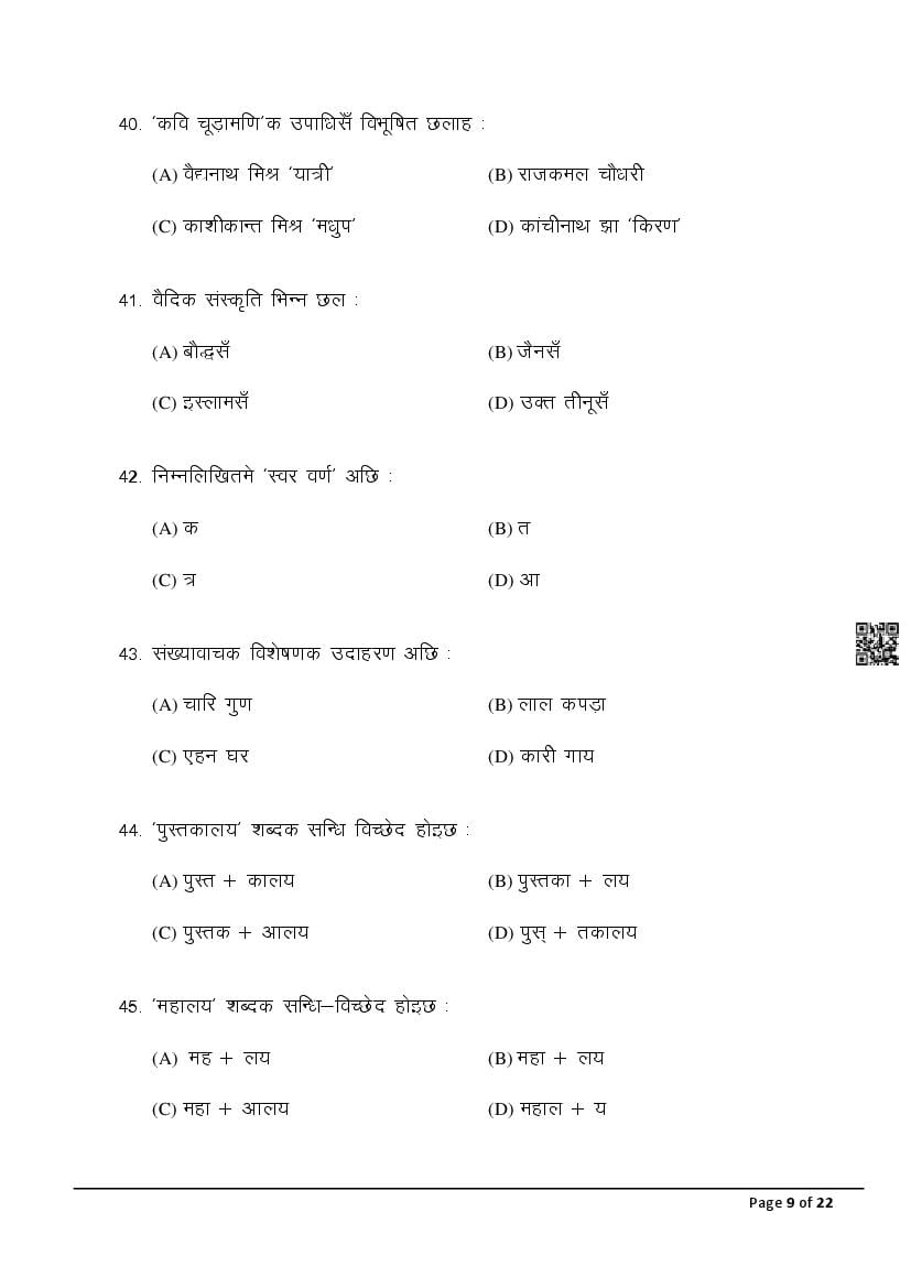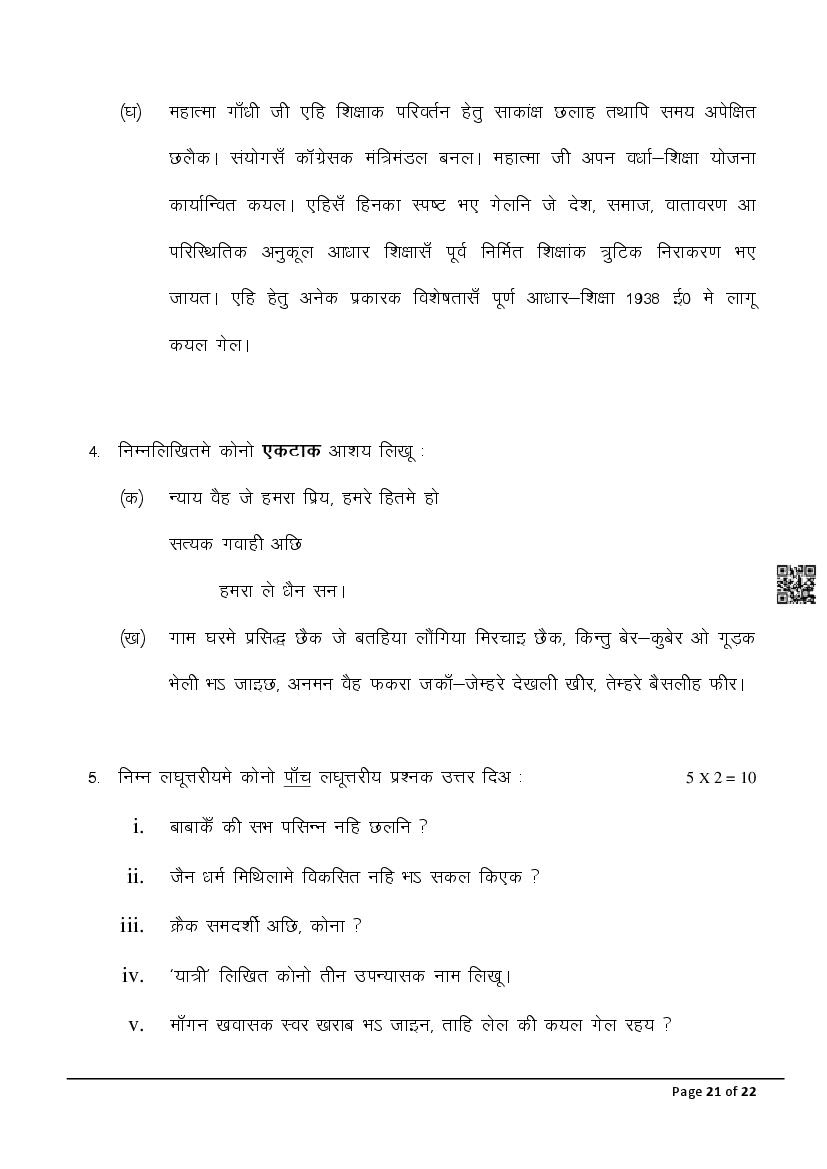 The latest Maithili SIL previous year question paper is as follows.