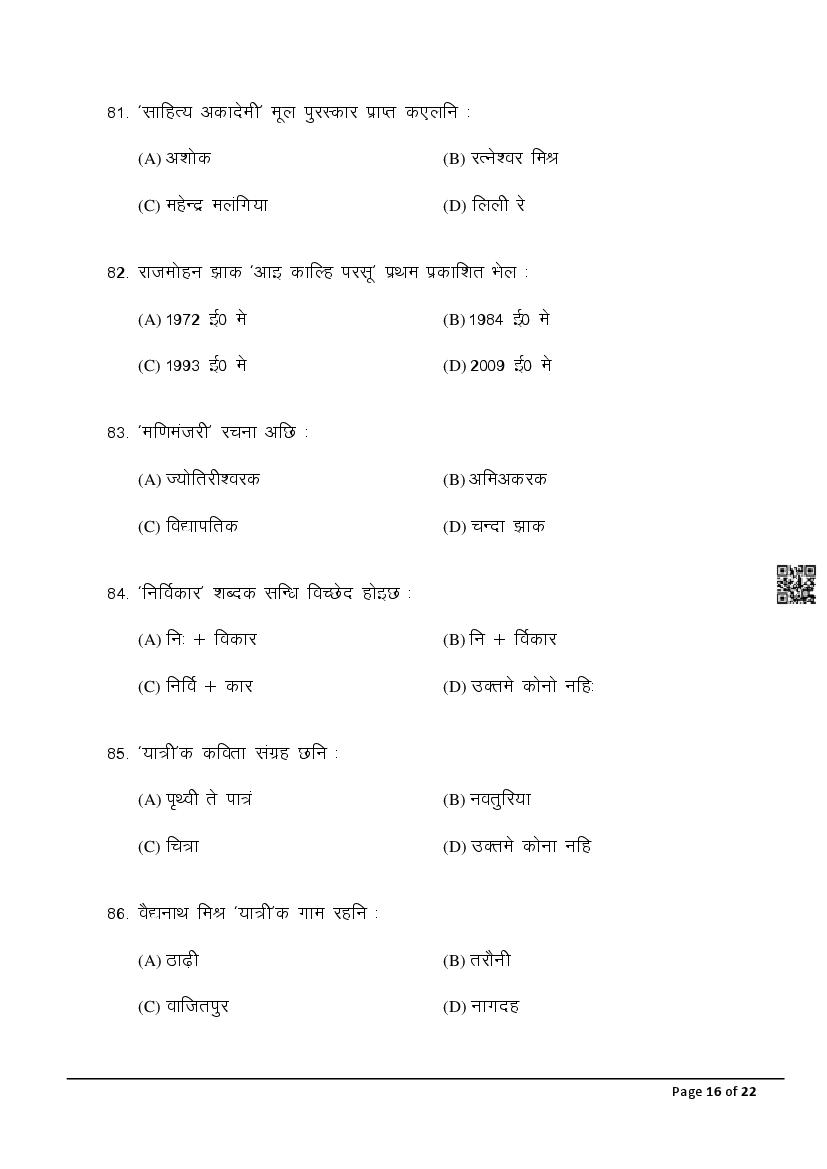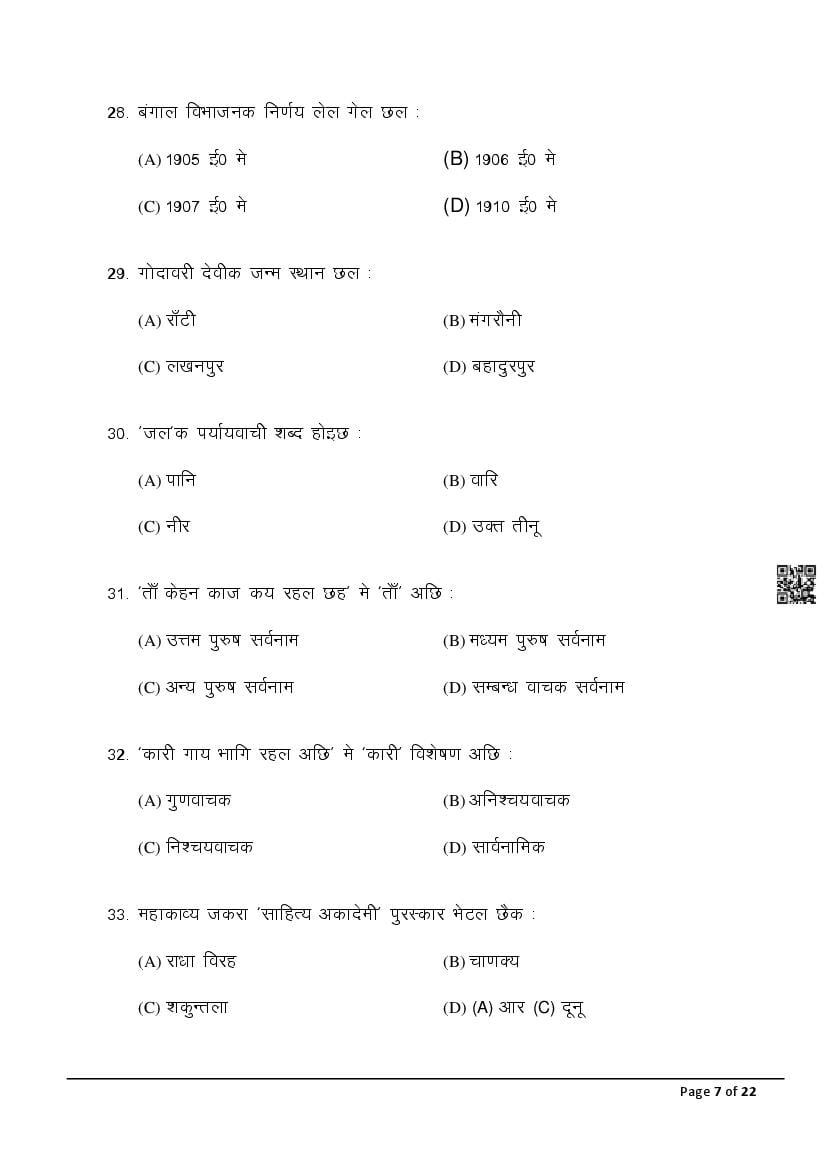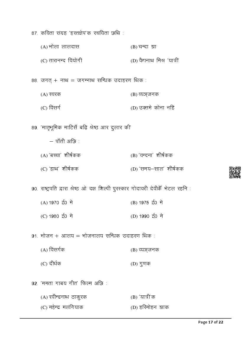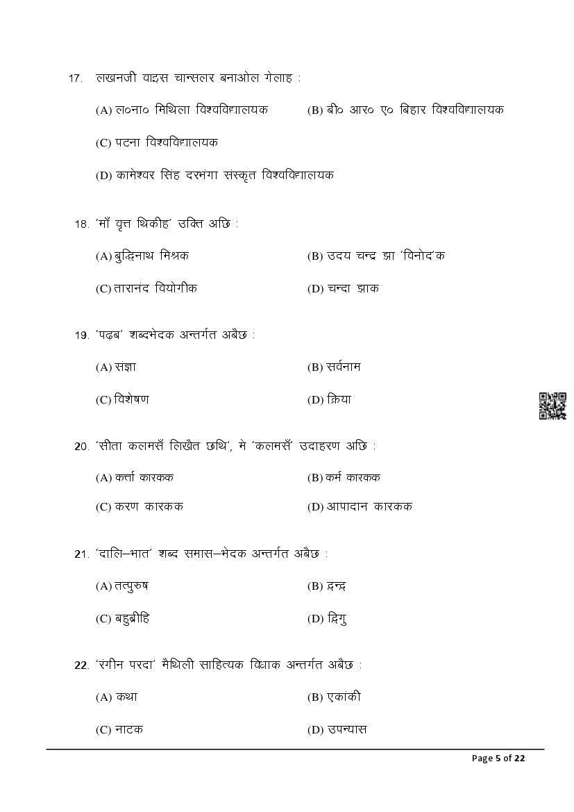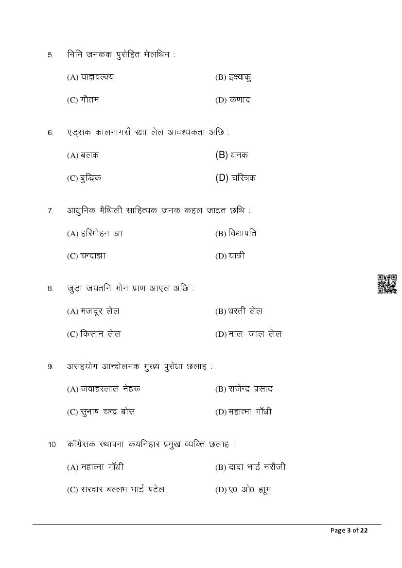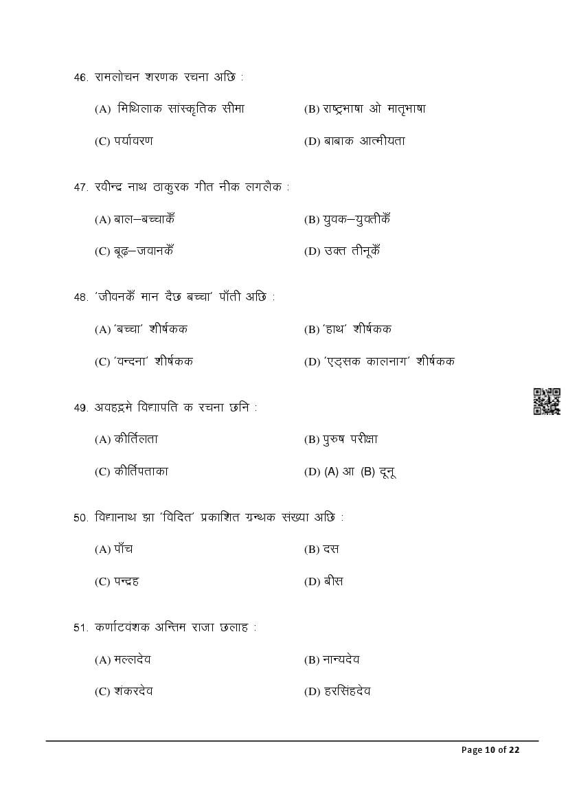 The latest Maithili SIL previous year question paper is as follows.
