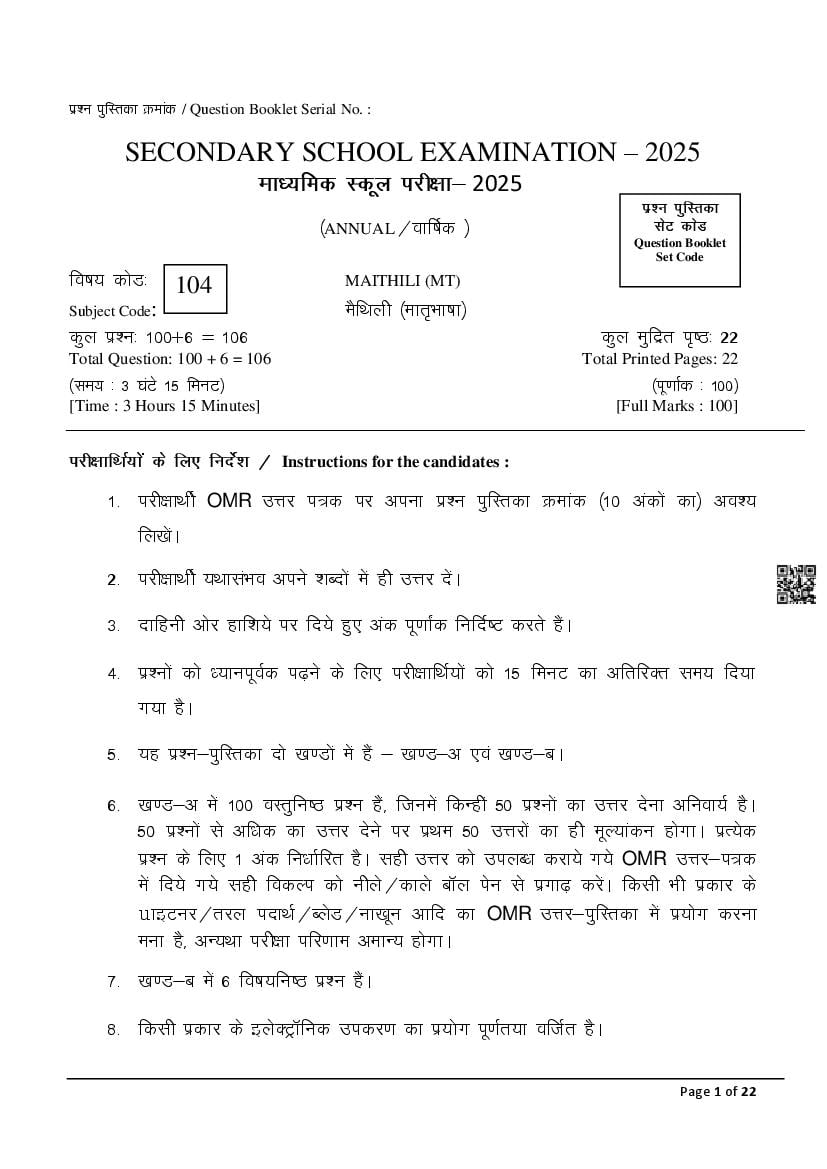 If you have any queries on Bihar Board Class 10 Maithili SIL Question Paper 2025, then please ask in comments below.