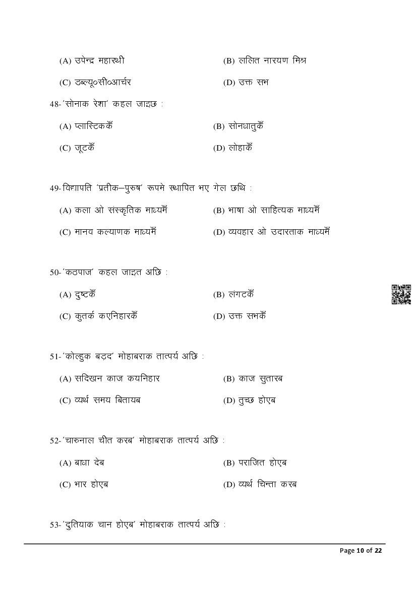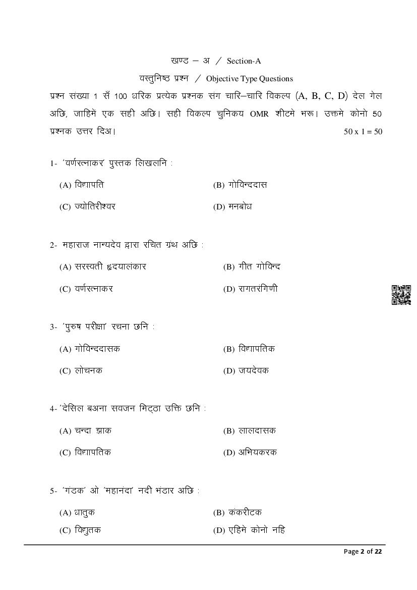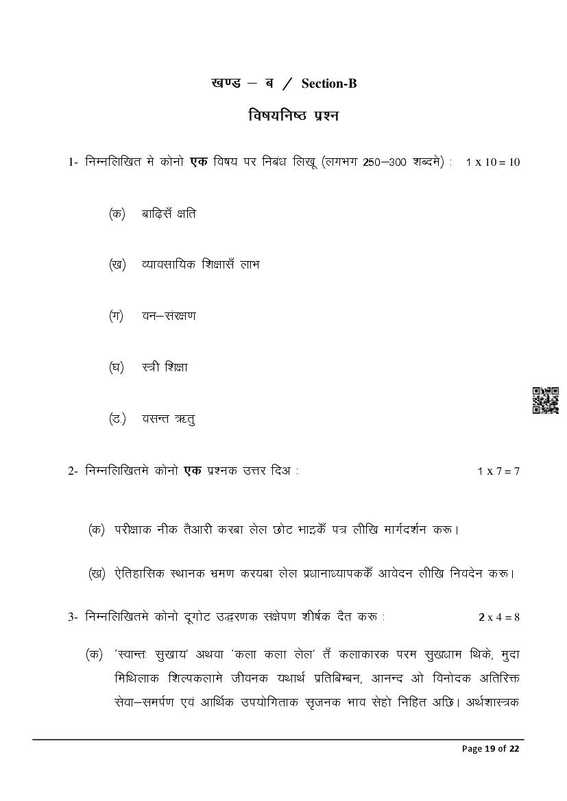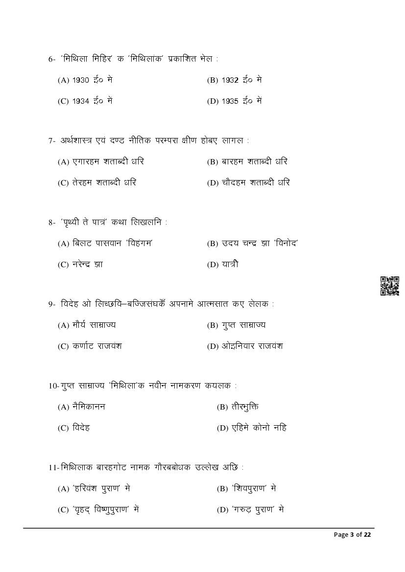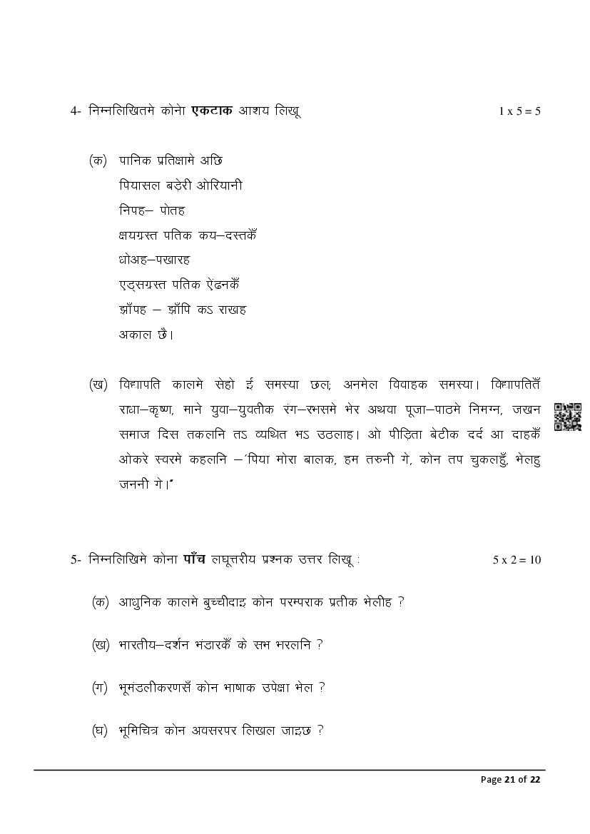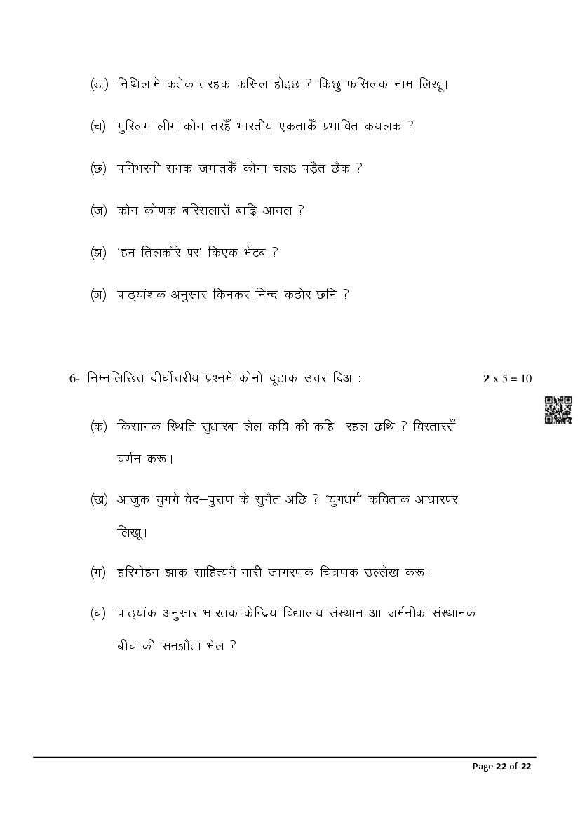 The latest Maithili previous year question paper is as follows.