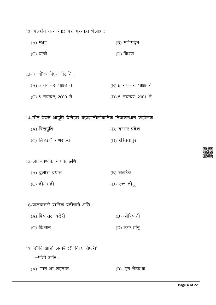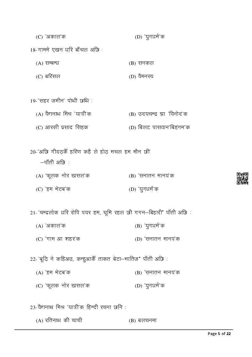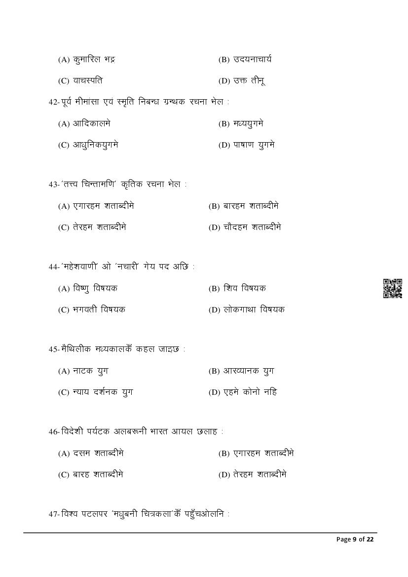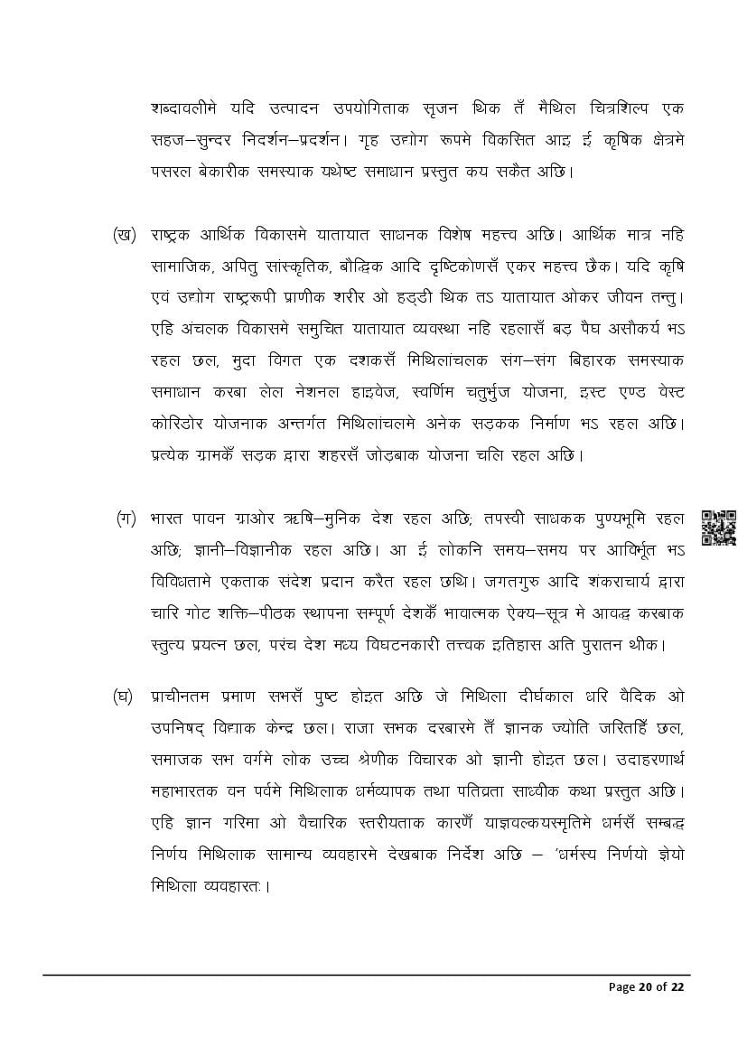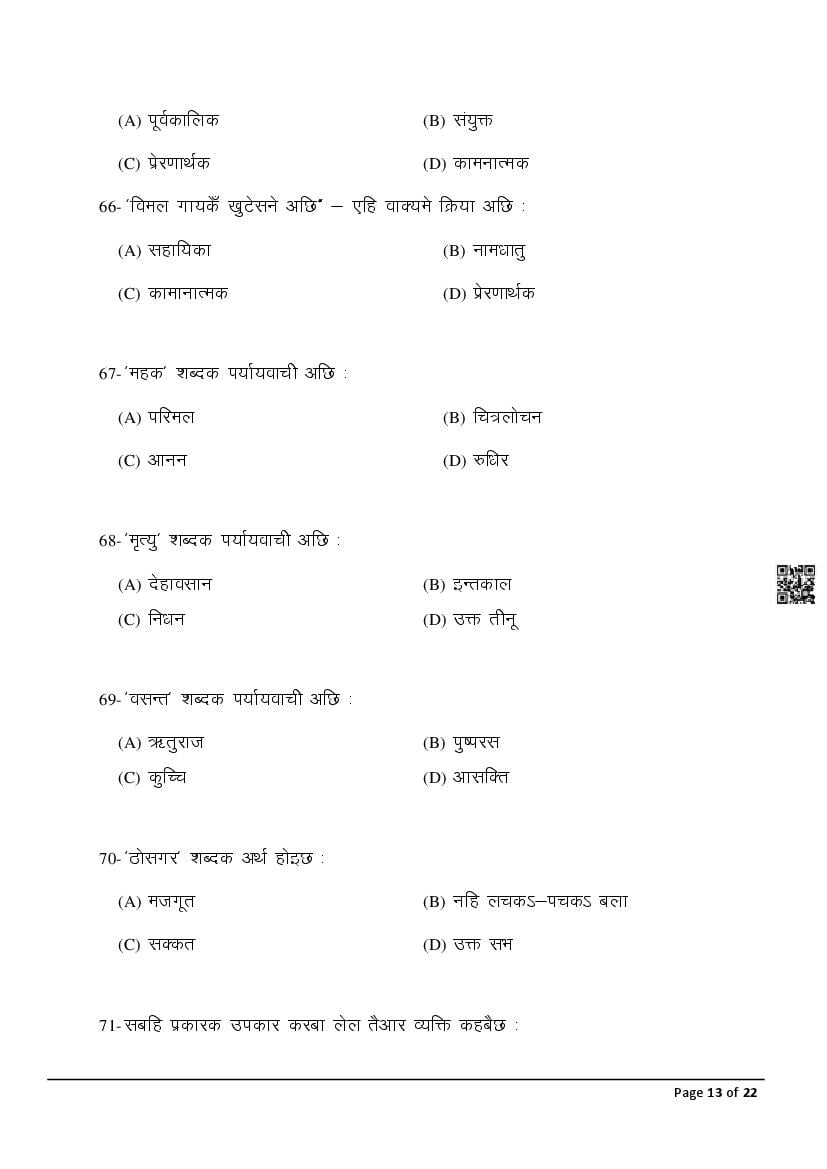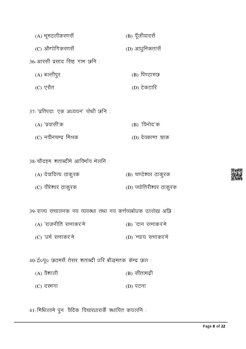 The latest Maithili previous year question paper is as follows.
