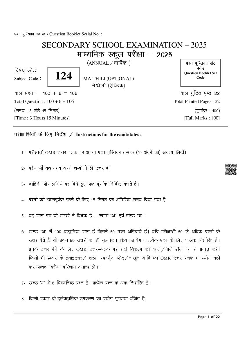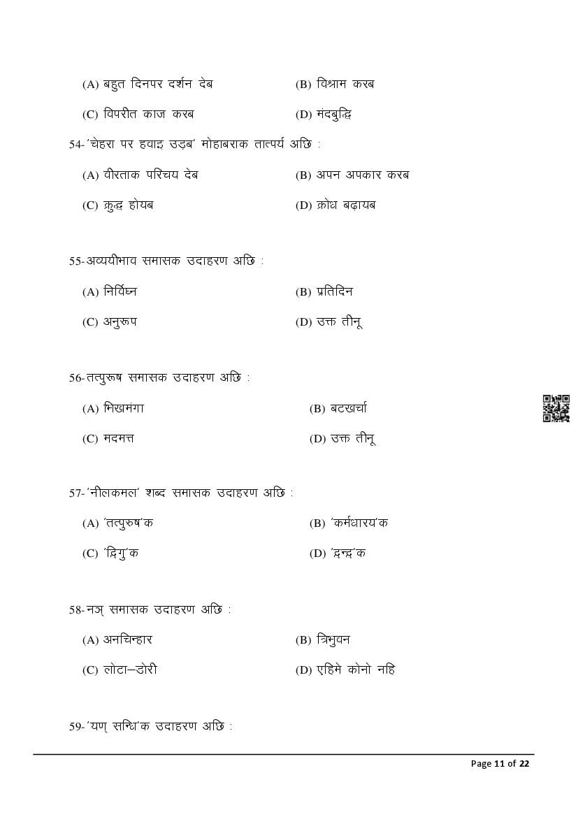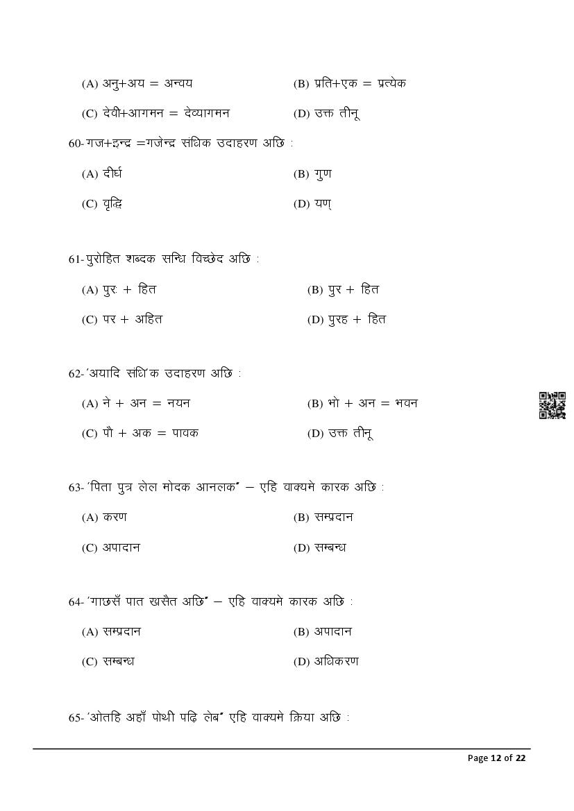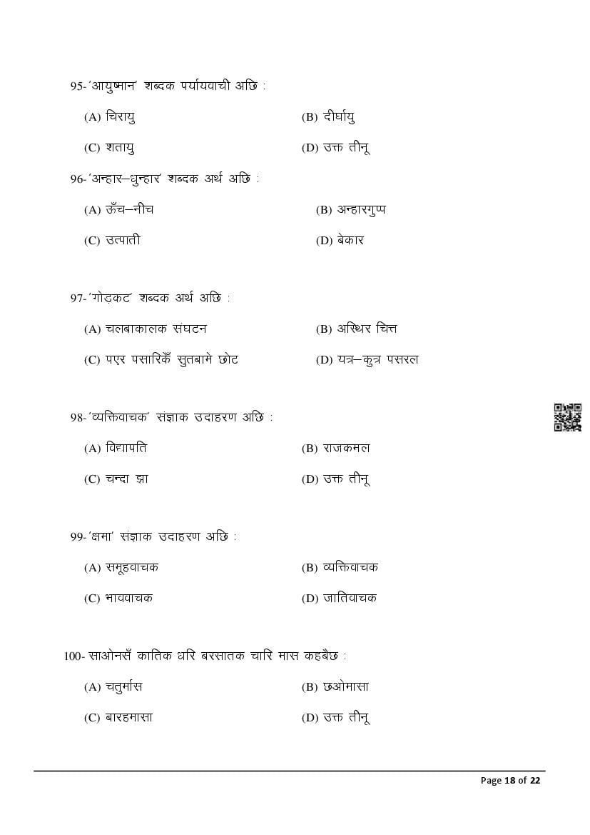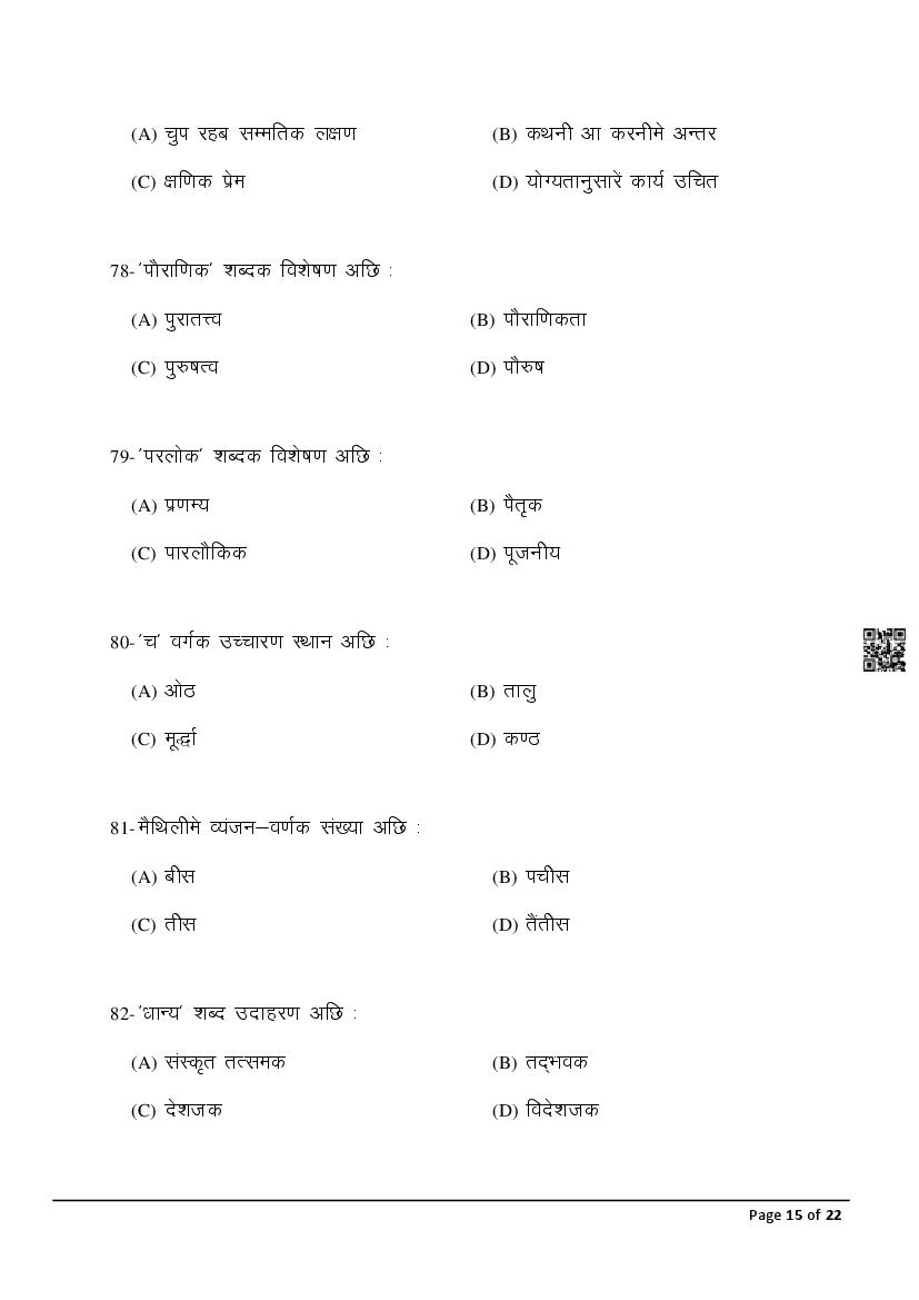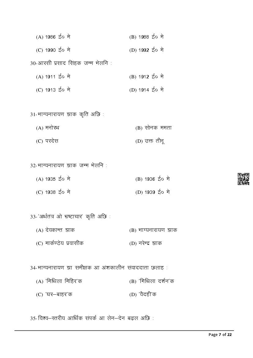 The latest Maithili previous year question paper is as follows.
