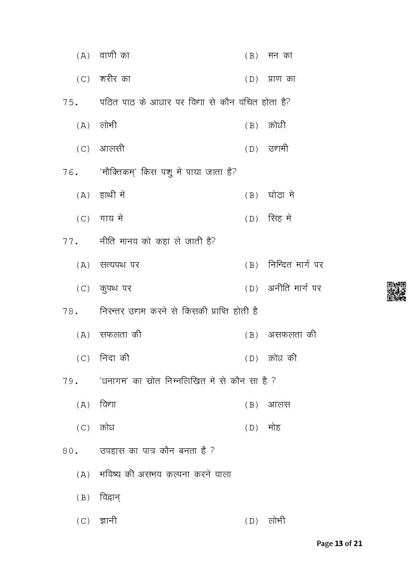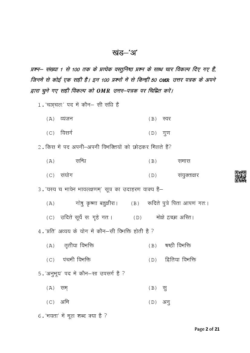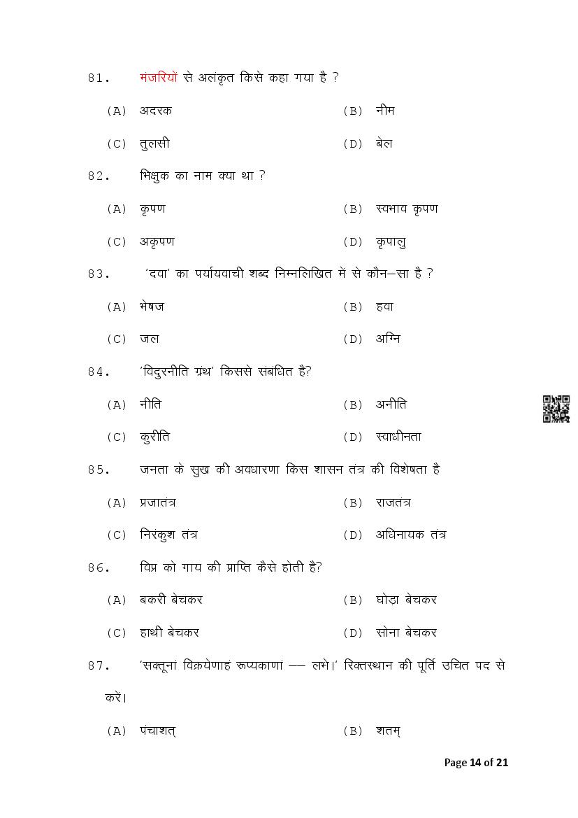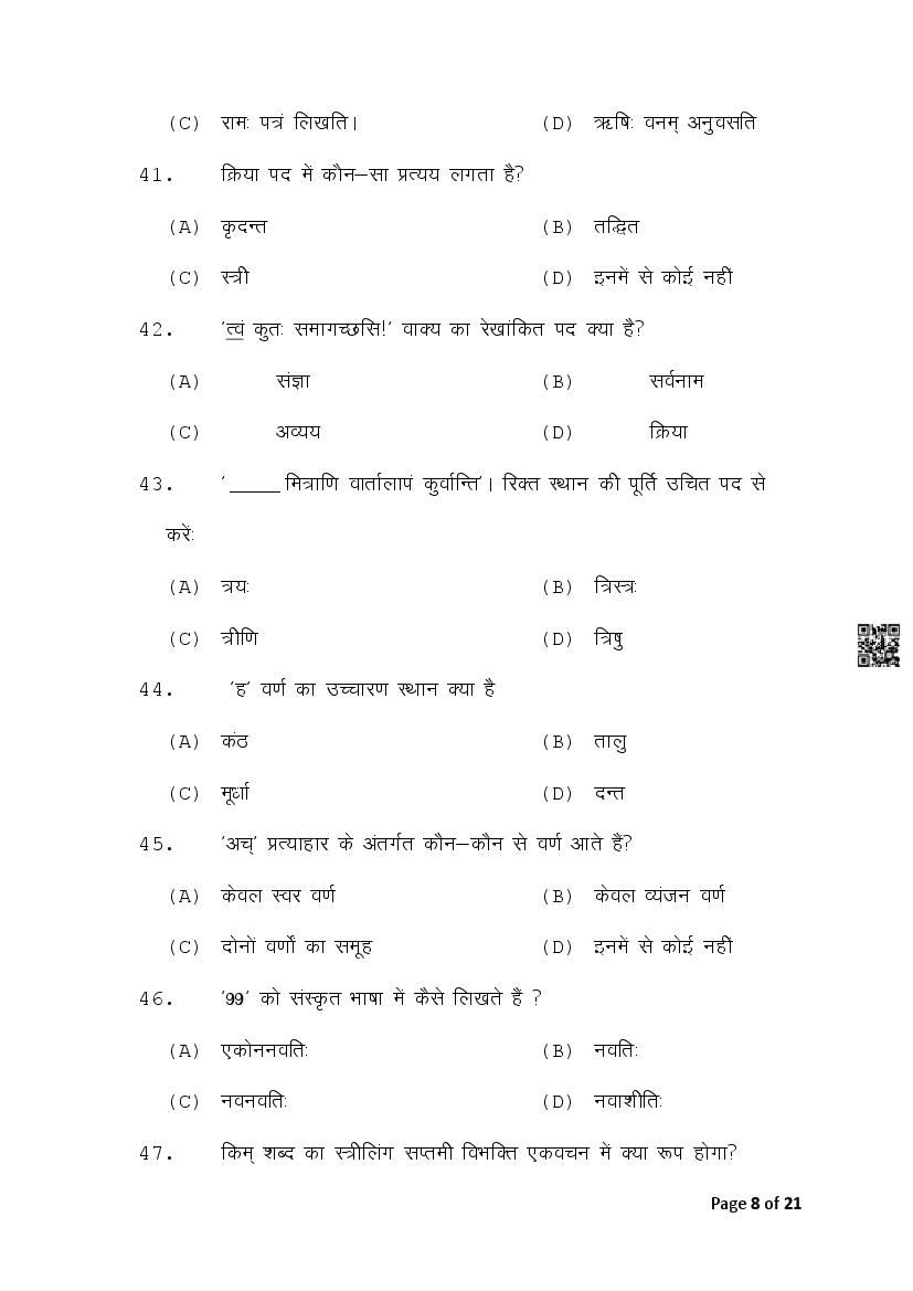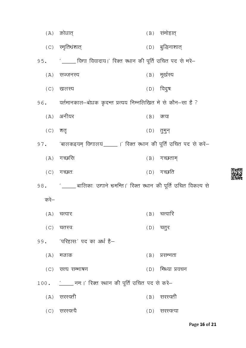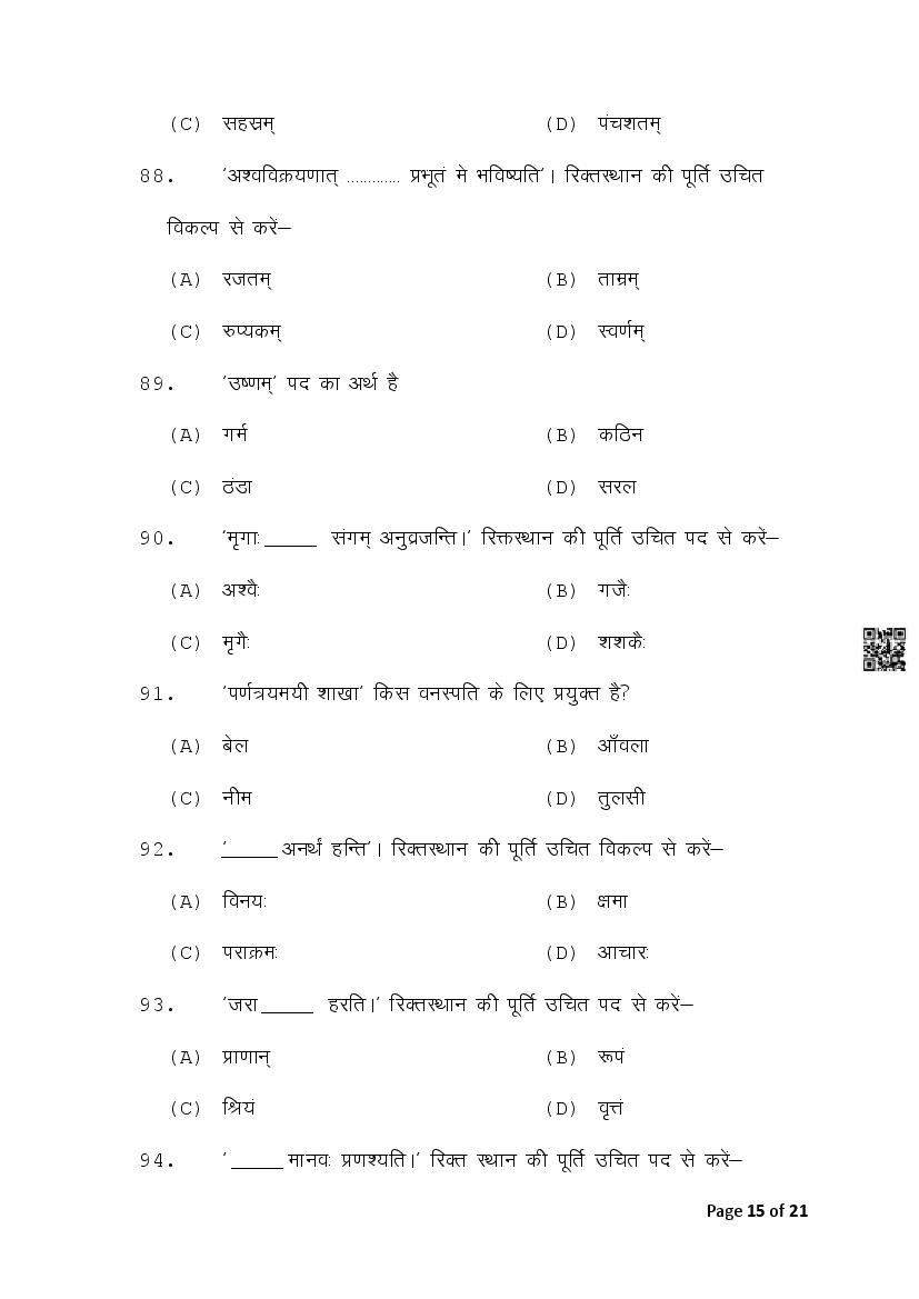 The Bihar Board Question Paper for Class 10 (Matric) Sanskrit is as follows.