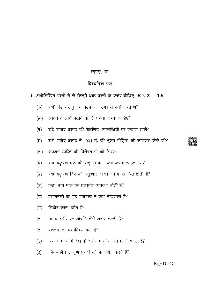 | More Question Papers of This Class | Bihar Board Question Paper of Class 10 |