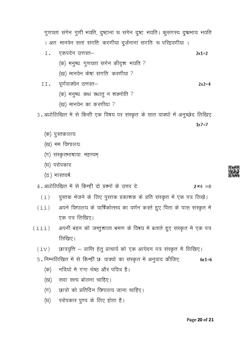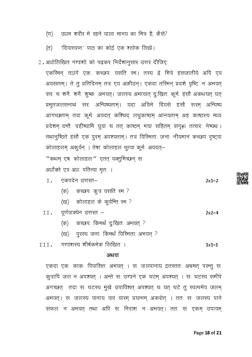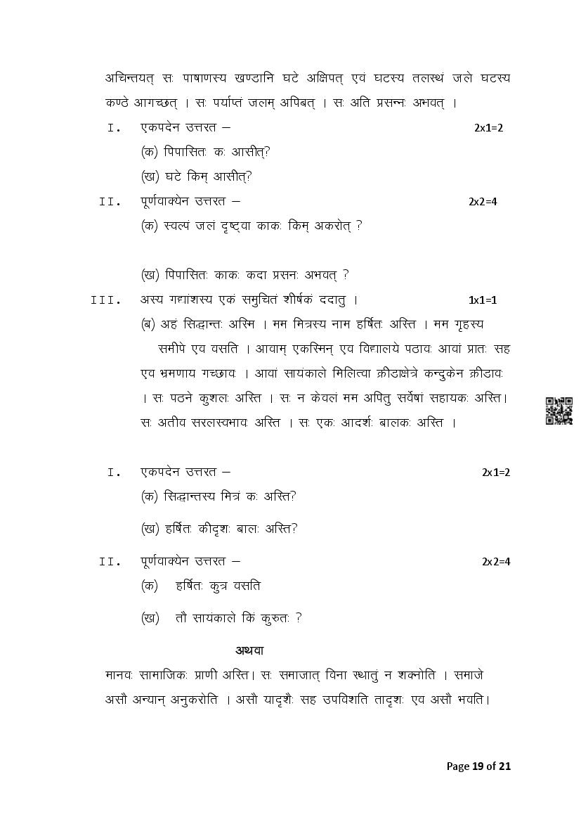 | Study Material Here | Bihar Board Question Paper of Class 10 Sanskrit |
