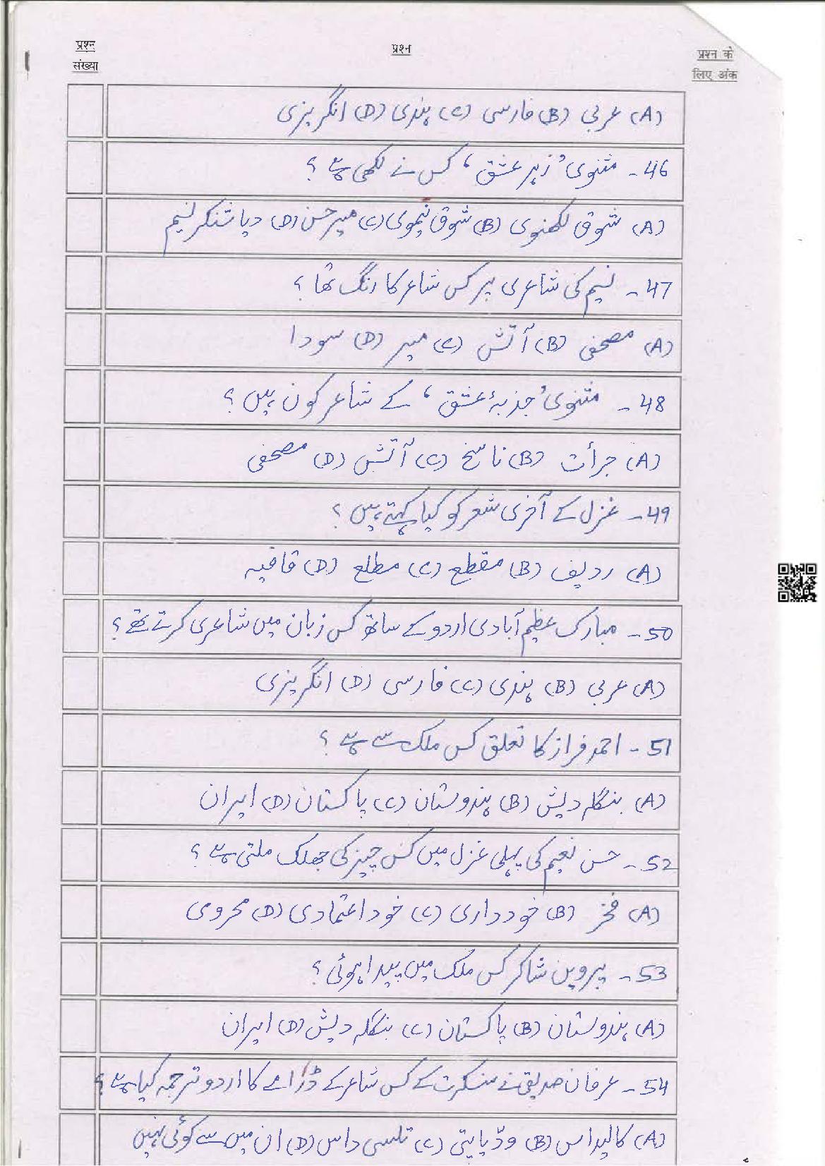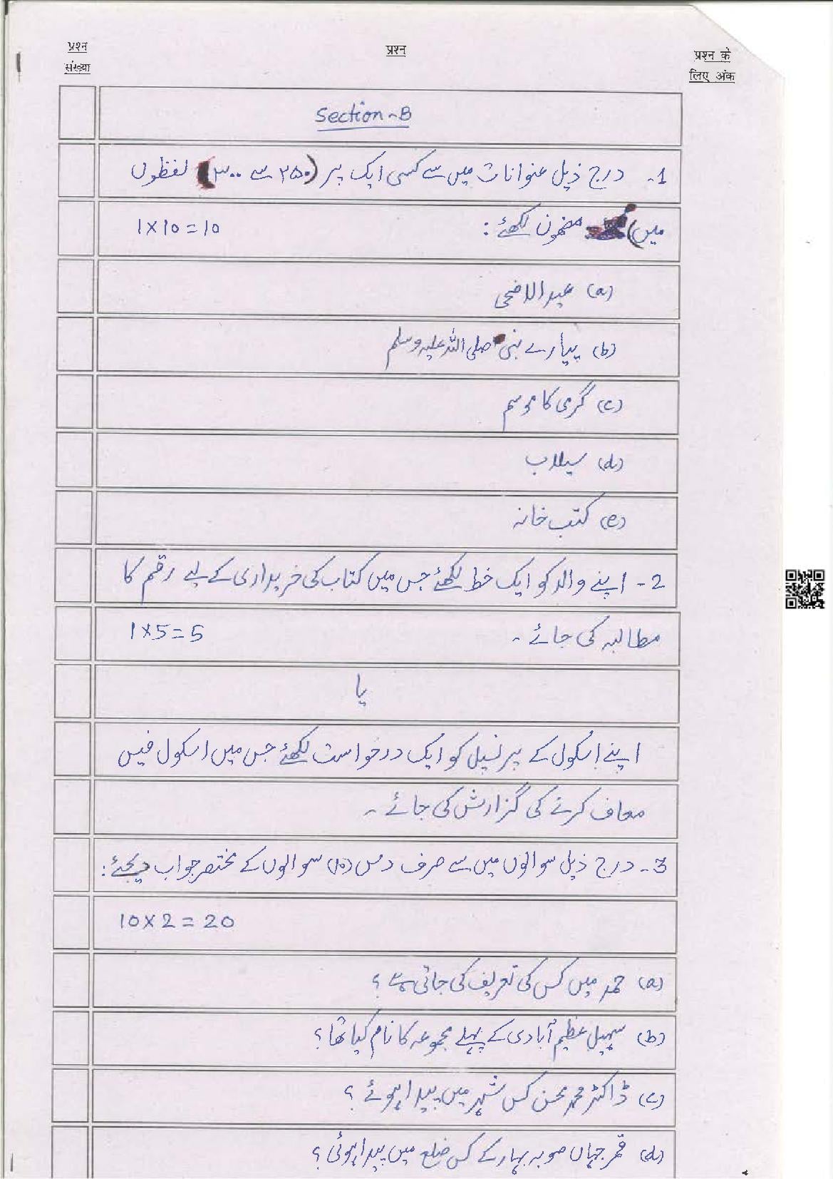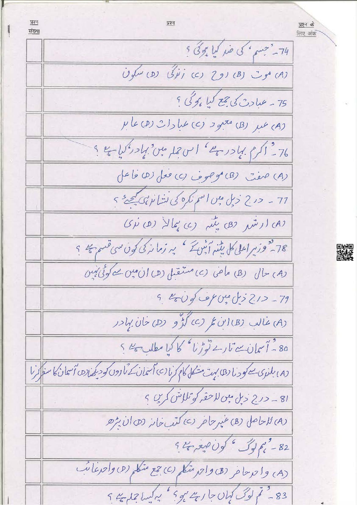 The latest Urdu previous year question paper is as follows.